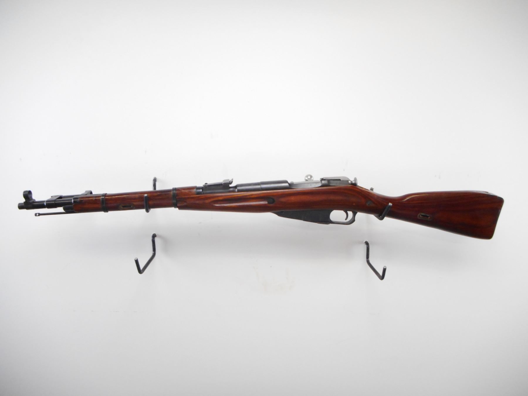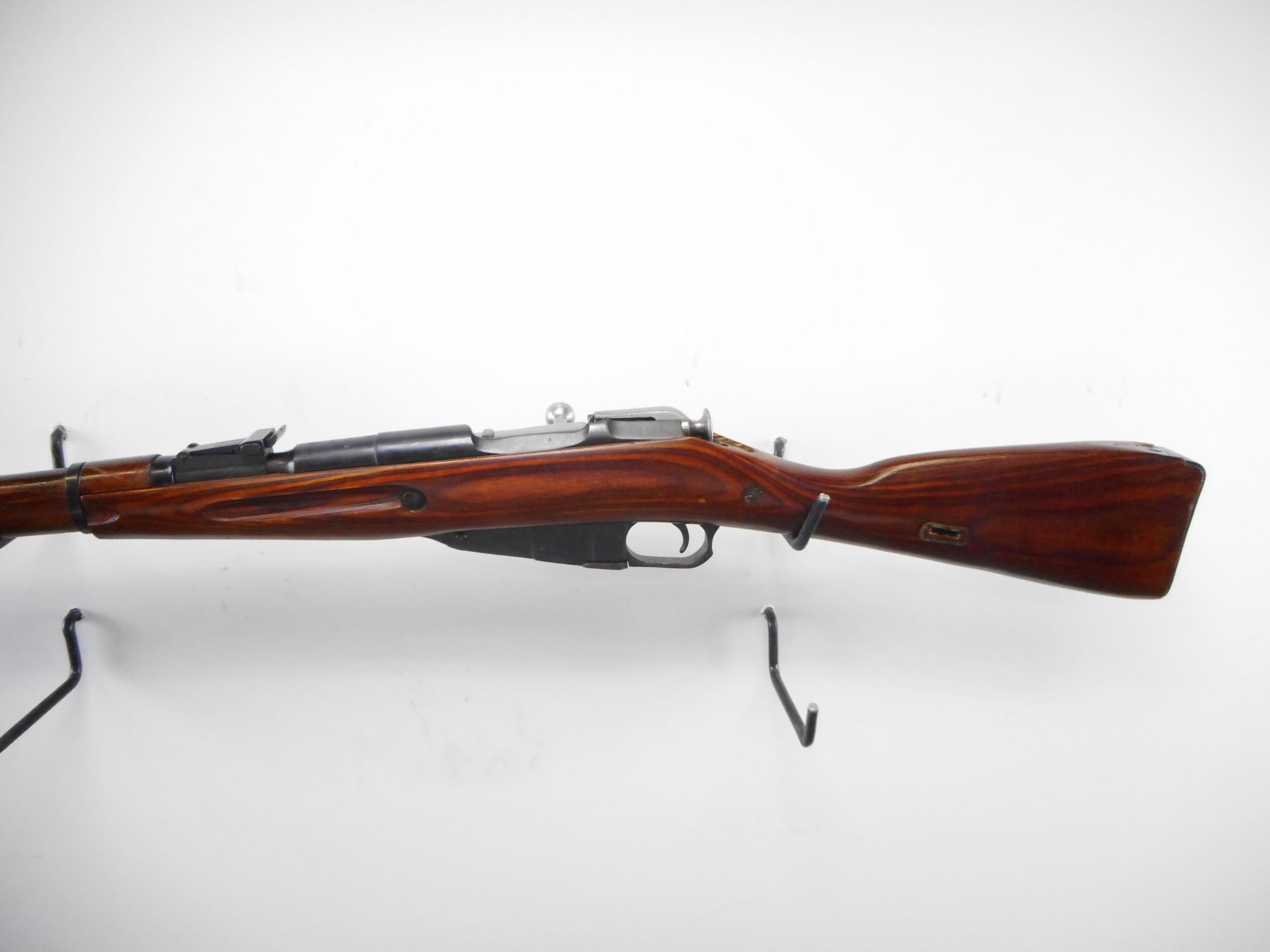 MOSIN NAGANT , MODEL: M44 CARBINE , CALIBER: 7.62 X 54R , BORE IS VERY GOOD. MFG'D IZHEVSK 1947. ARSENAL REBUILD. POST FRONT SIGHT WITH HOOD. ADJUSTABLE U NOTCH REAR SIGHT. ROUND RECEIVER. TWO PIECE LAMINATE STOCKS. SMOOTH STEEL BUTT PLATE. CLEANING ROD. FOLDING BAYONET ON RIGHT SIDE. METAL SHOWS SLIGHT HANDLING MARKS. STOCKS SHOWS HANDLING MARKS AND WEAR , ACTION: BOLT ACTION RIFLE , BARREL LENGTH: 20" , SERIAL # EP584 , CONDITION: 7/10 , CLASS: CANADIAN NON RESTRICTED CLASS