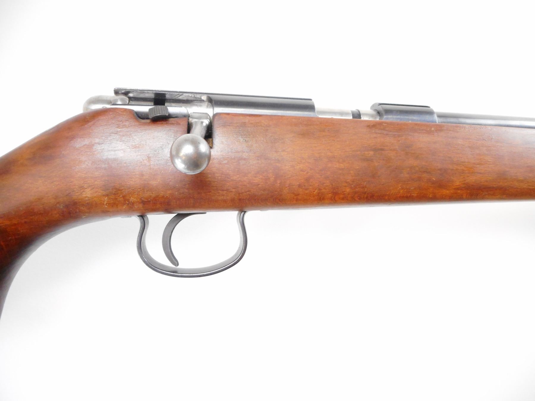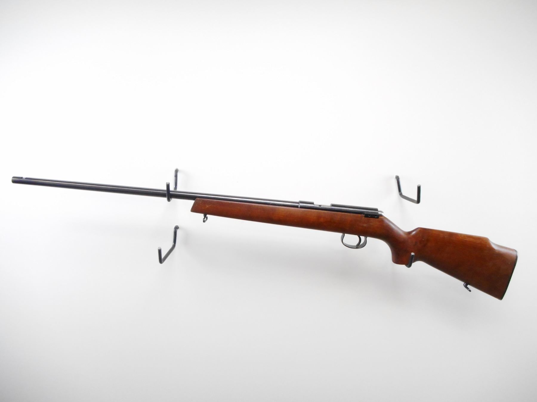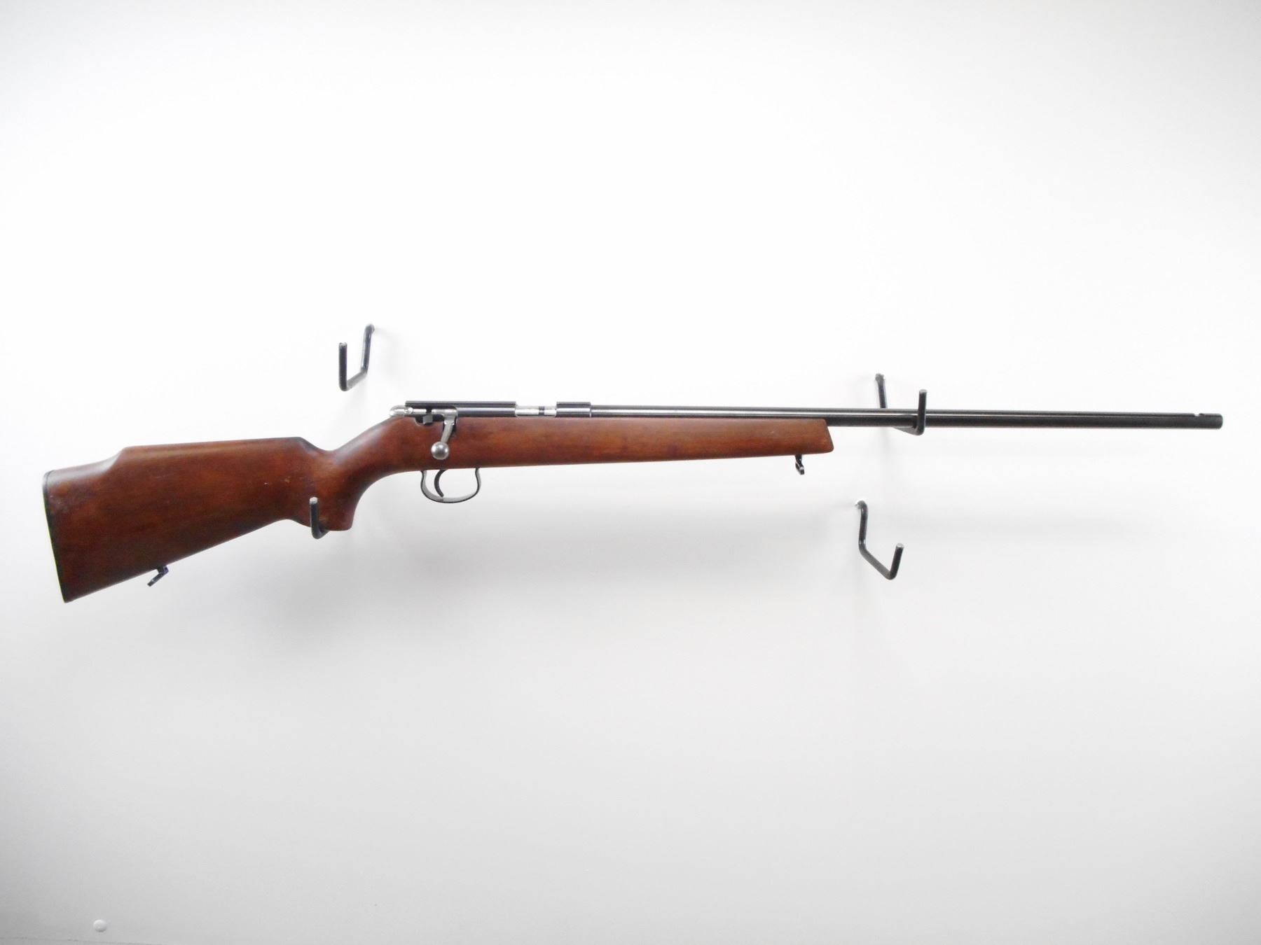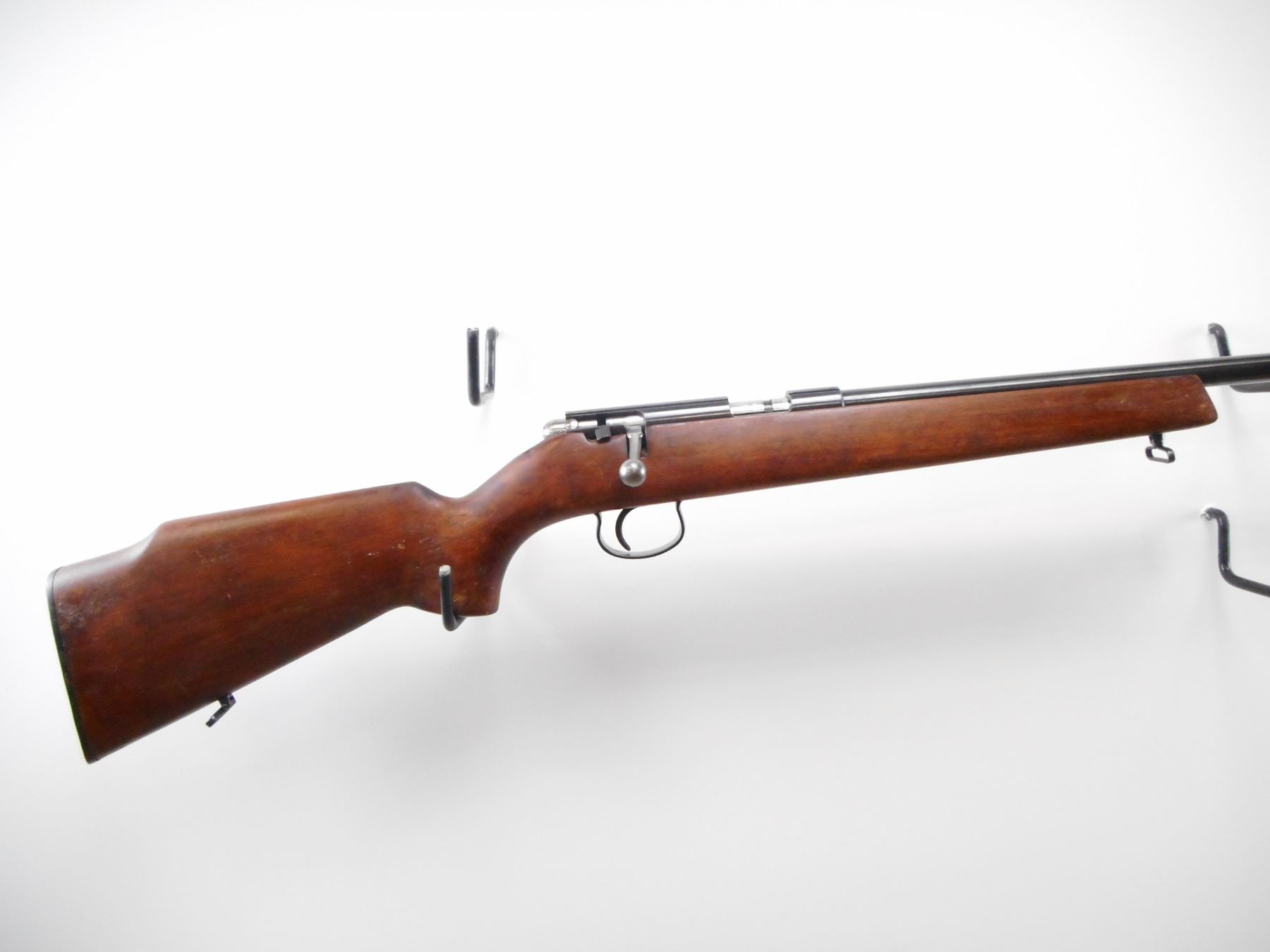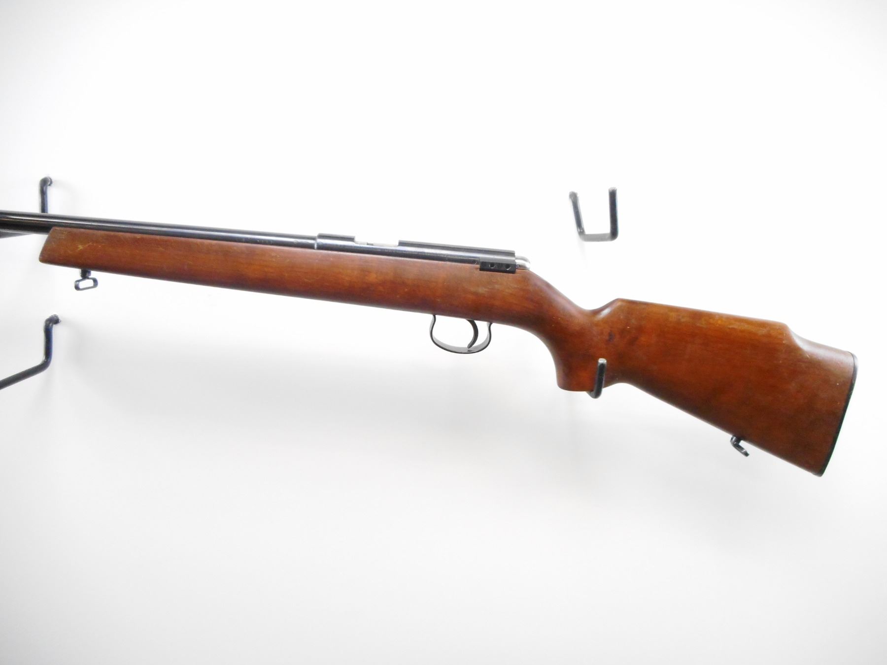 CIL ANSCHUTZ , MODEL: 180 , CALIBER: 22 LR , BORE IS VERY GOOD. FRONT AND REAR SIGHT REMOVED. RECEIVER GROOVED FOR SCOPE MOUNT. SMOOTH ONE PIECE WOOD STOCK. GROOVED BLACK POLYMER BUTT PLATE. STEEL TRIGGER GUARD. SLING SWIVELS. BLUED FINISH SHOWS SOME WEAR. STOCK SHOWS SOME WEAR, DINGS AND HANDLING MARKS. , ACTION: BOLT ACTION RIFLE , BARREL LENGTH: 24" , SERIAL # 600522 , CONDITION: 7/10 , CLASS: CANADIAN NON RESTRICTED CLASS