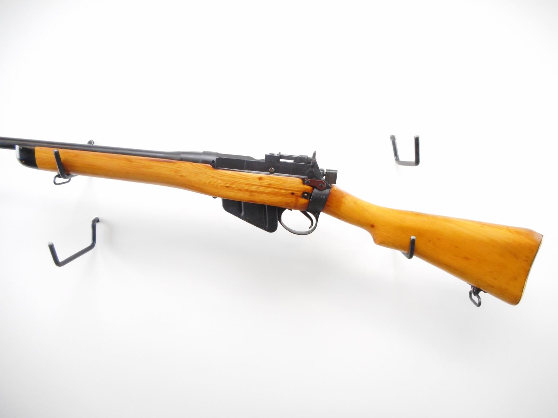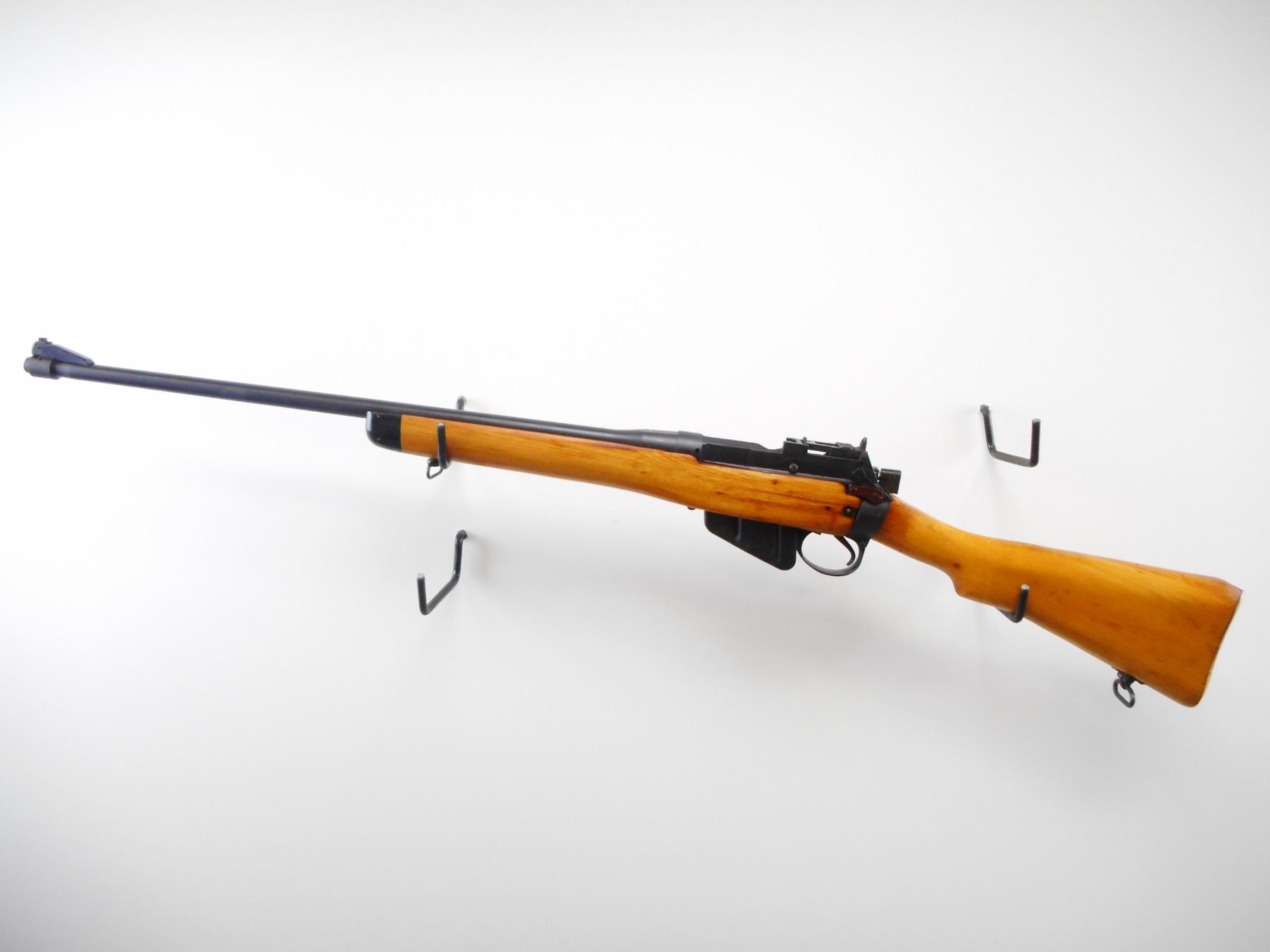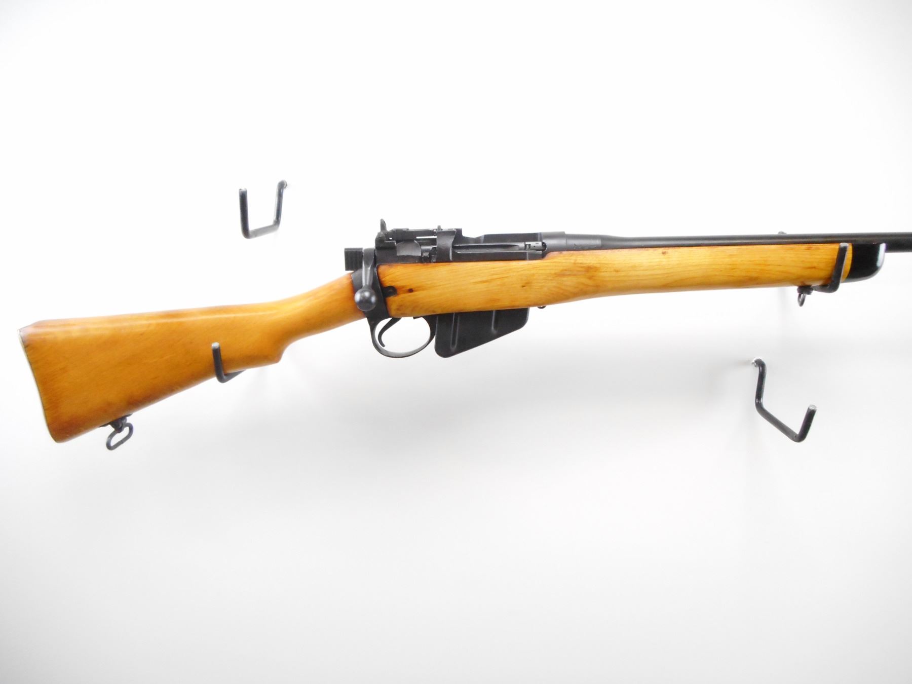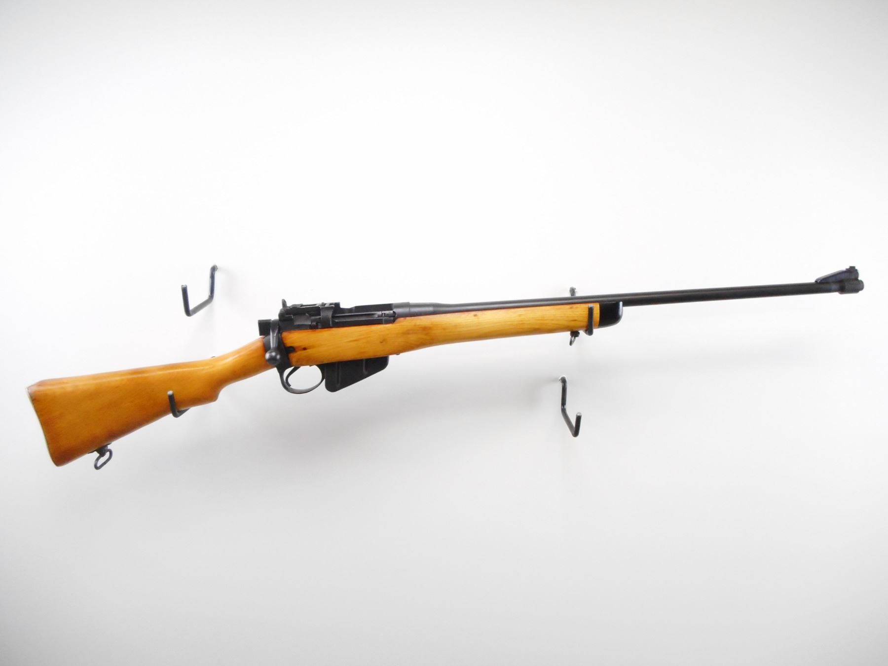 LEE ENFIELD , MODEL: NO4 MK1 SPORTER , CALIBER: 303 BR , COMES WITH MAGAZINE. BORE IS GOOD, WORN. MISMATCHED NUMBERS. DATED 1942. BLADE FRONT SIGHT WITH RAMP. MILLED ADJUSTABLE PEEP SIGHT. TWO PIECE SMOOTH WOOD STOCKS. BRASS BUTT PLATE. SLING SWIVELS. METAL SHOWS SOME WEAR. STOCK SHOWS SOME WEAR, HANDLING MARKS. , ACTION: BOLT ACTION RIFLE , BARREL LENGTH: 23 1/2" , SERIAL # 8574 , CONDITION: 7/10 , CLASS: CANADIAN NON RESTRICTED CLASS