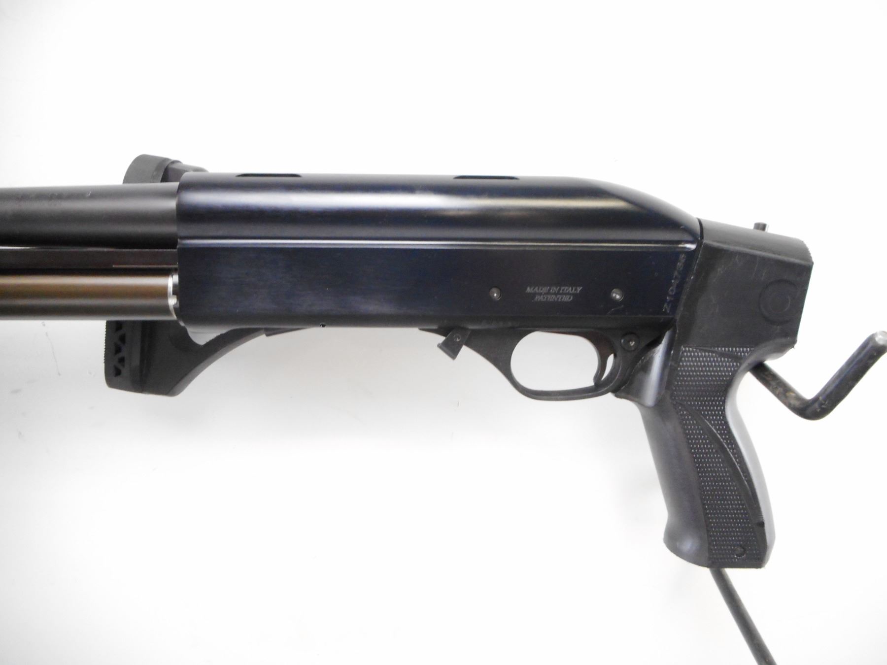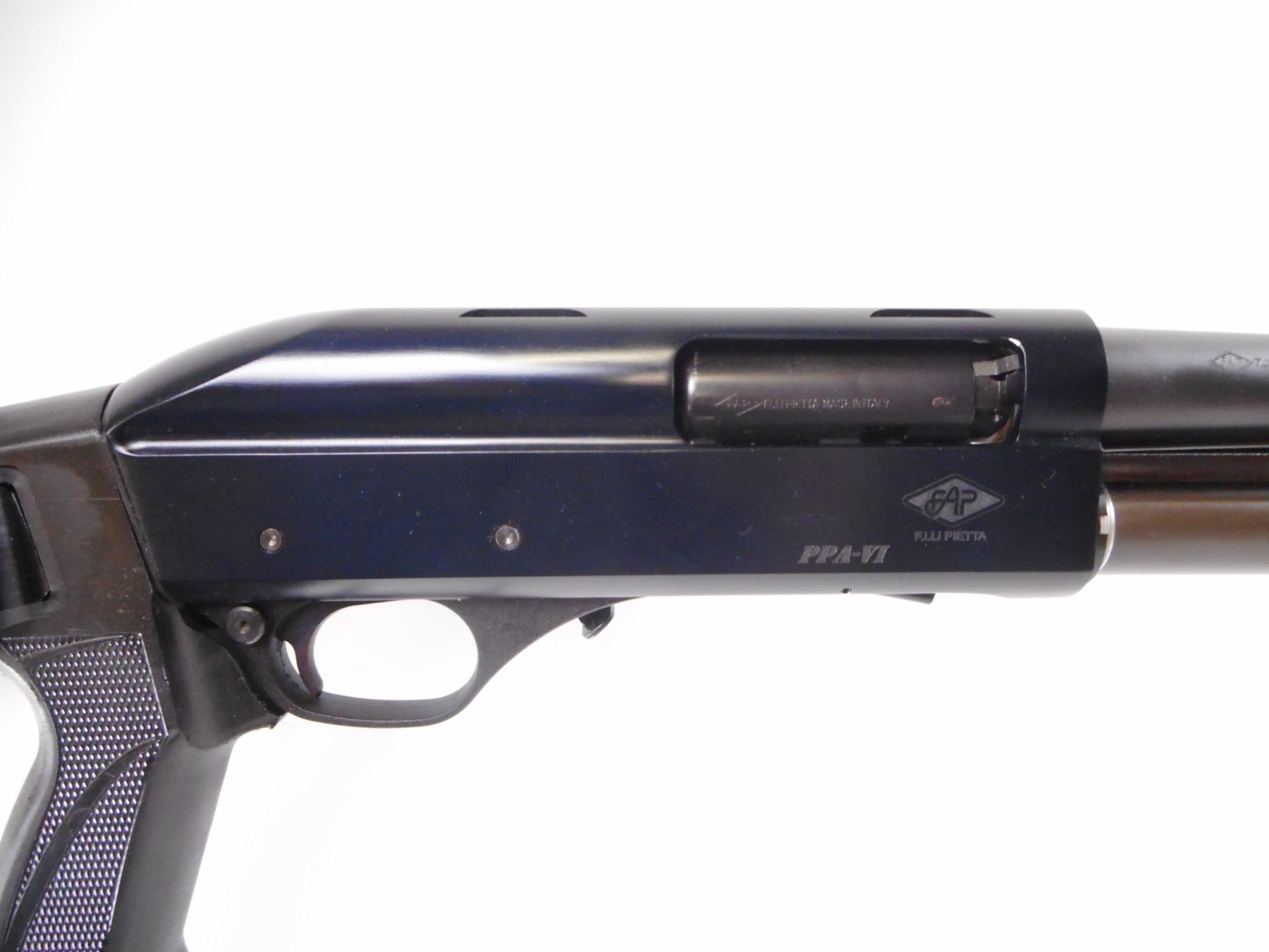 PIETTA , MODEL: PPA-VI , CALIBER: 12 GA X 3" , COMES WITH BOX. BORE IS EXCELLENT. MOD CHOKE. BLADE FRONT SIGHT. RECEIVER GROOVED FOR SCOPE. EXTENDED MAG TUBE. GROOVED BLACK POLYMER FOREND. FOLDING BLACK POLYMER STOCK WITH RECOIL PAD. PISTOL GRIP. SWIVELS. SHOWS MINOR HANDLING MARKS. , ACTION: PUMP ACTION SHOTGUN , BARREL LENGTH: 20" , SERIAL # Z104735 , CONDITION: 9/10 , CLASS: CANADIAN NON RESTRICTED CLASS