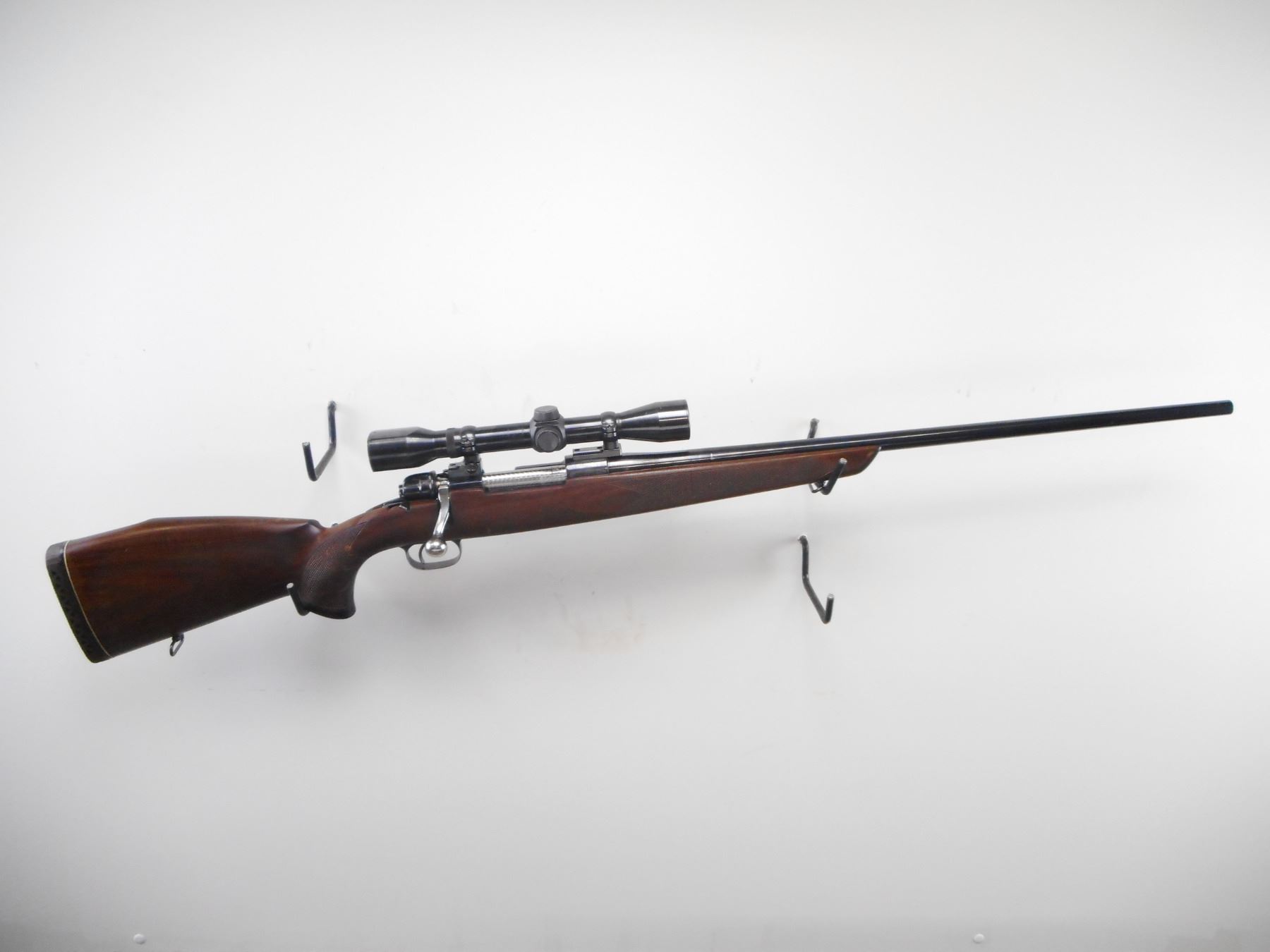 BRNO , MODEL: 98 SPORTER , CALIBER: 7 X 57MM , BORE IS VERY GOOD. ROUND BARREL NO SIGHTS. JEWELED BOLT. SCOPE. CLEAR OPTICS. POST RETICLE. ONE PIECE WOOD STOCK. CHECKERED FOREARM AND PISTOL GRIP. CHEEK REST. BROWN VENTED RUBBER RECOIL PAD. GRIP CAP. SLING SWIVELS. BLUEING SHOWS SOME HANDLING MARKS AND WEAR. STOCK SHOWS DINGS, HANDLING MARKS AND WEAR. , ACTION: BOLT ACTION RIFLE , BARREL LENGTH: 25" , SERIAL # 17989 , CONDITION: 6/10 , CLASS: CANADIAN NON RESTRICTED CLASS