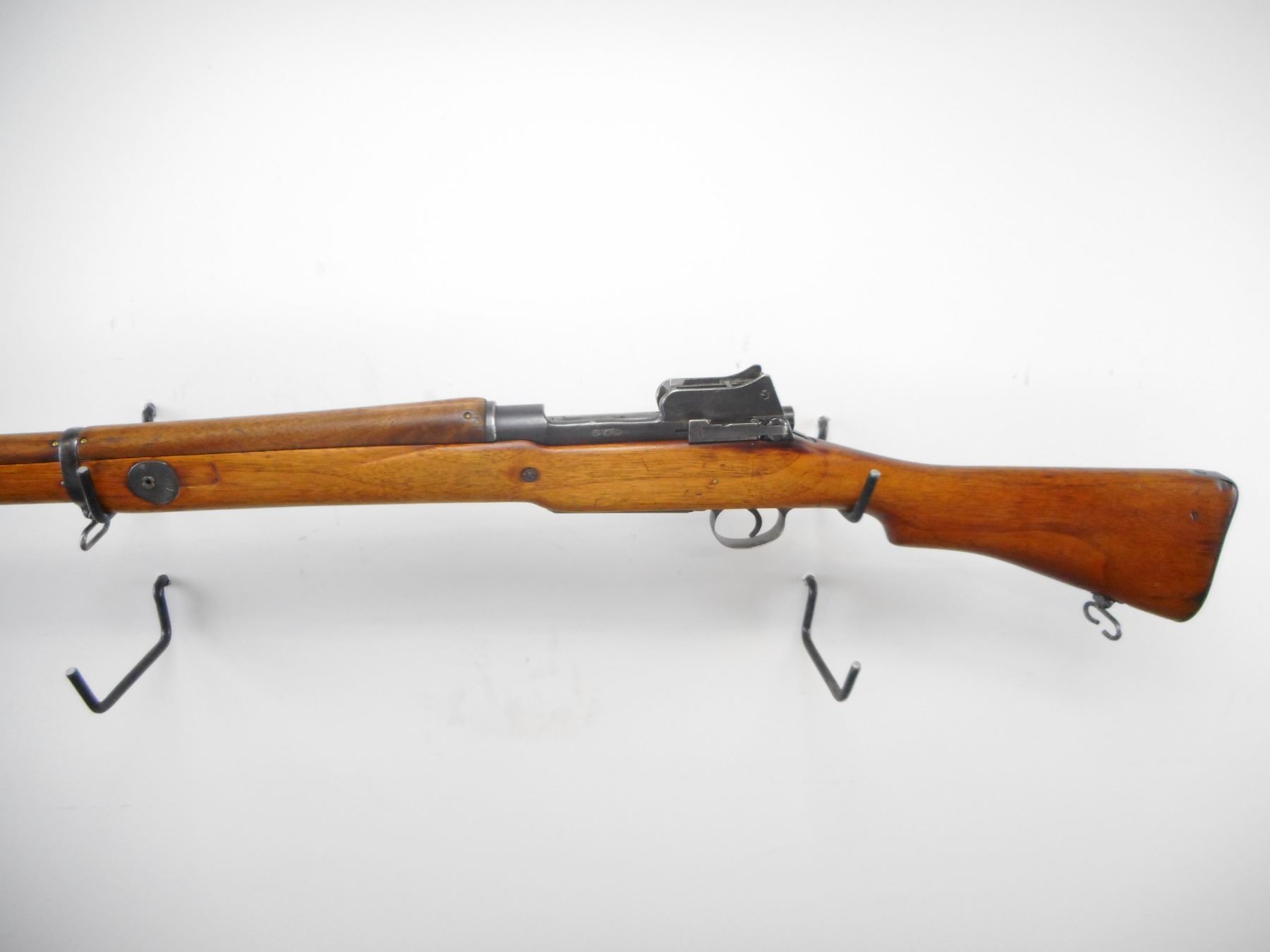 ENFIELD , MODEL: P14 , CALIBER: 303 BR , BORE IS GOOD, WORN, DARK. VISIBLE NUMBERS MATCH. MFG'D BY ERA. BLADE FRONT SIGHT WITH EARS. ADJUSTABLE REAR PEEP SIGHT. 3 PIECE FULL MILITARY STOCK. VOLLEY SIGHTS REMOVED. SMOOTH STEEL BUTT PLATE WITH TRAP. BRASS MARKING DISK. SLING SWIVELS. WOOD HAS BEEN CLEANED UP. METAL SHOWS NUMEROUS HANDLING MARKS AND WEAR. STOCK SHOWS HANDLING MARKS , ACTION: BOLT ACTION RIFLE , BARREL LENGTH: 26" , SERIAL # 99272 , CONDITION: 6/10 , CLASS: CANADIAN NON RESTRICTED CLASS