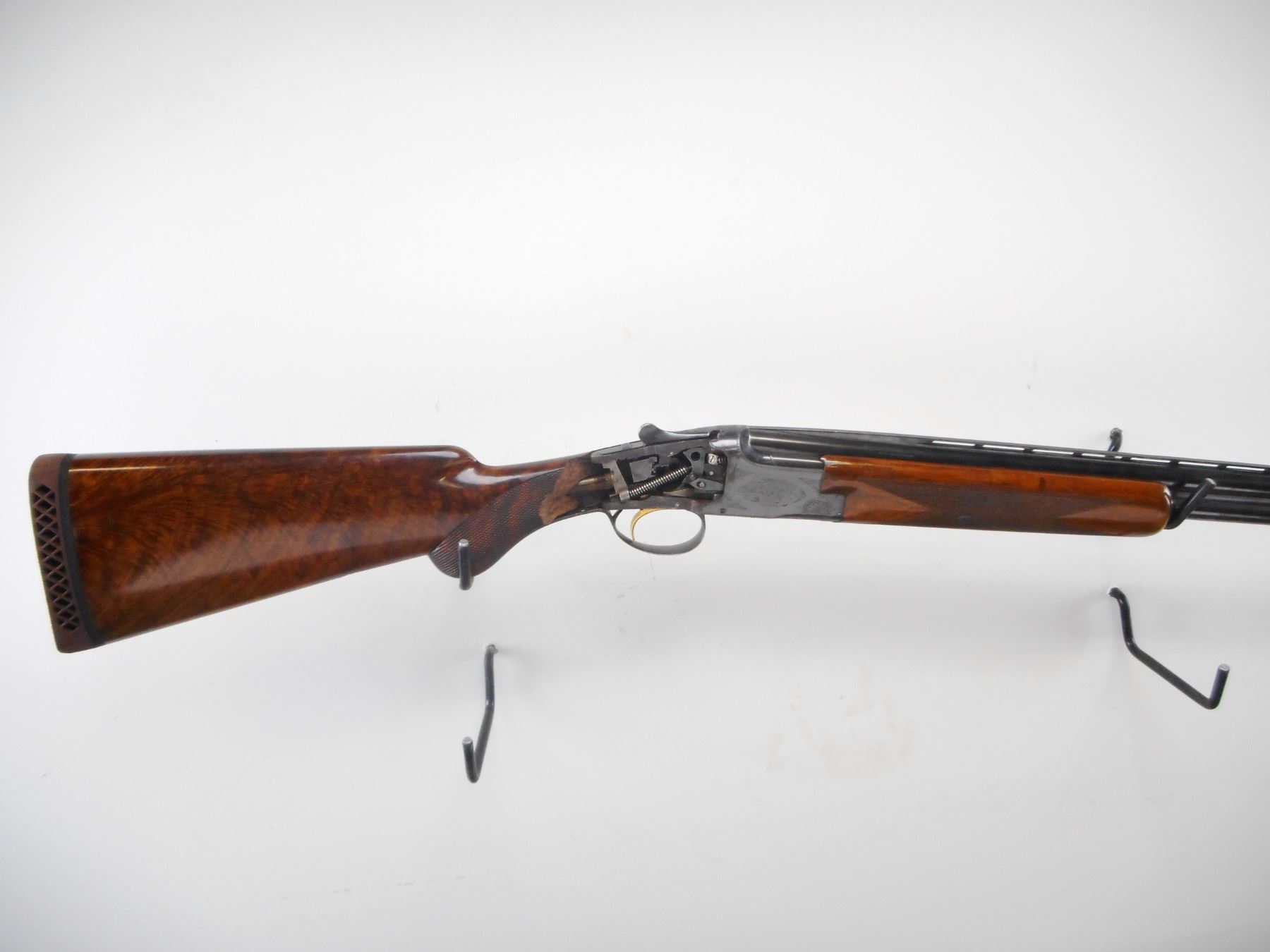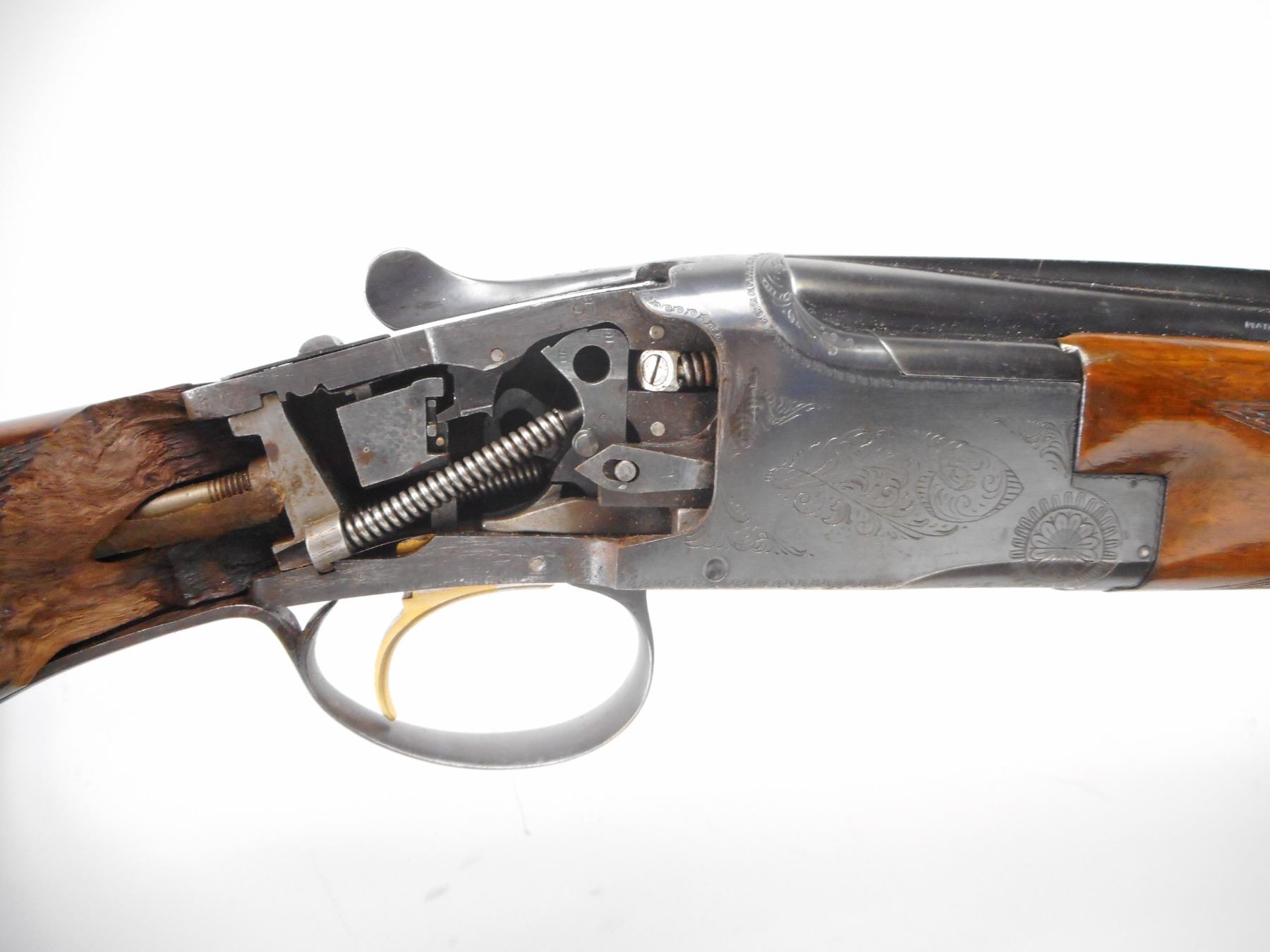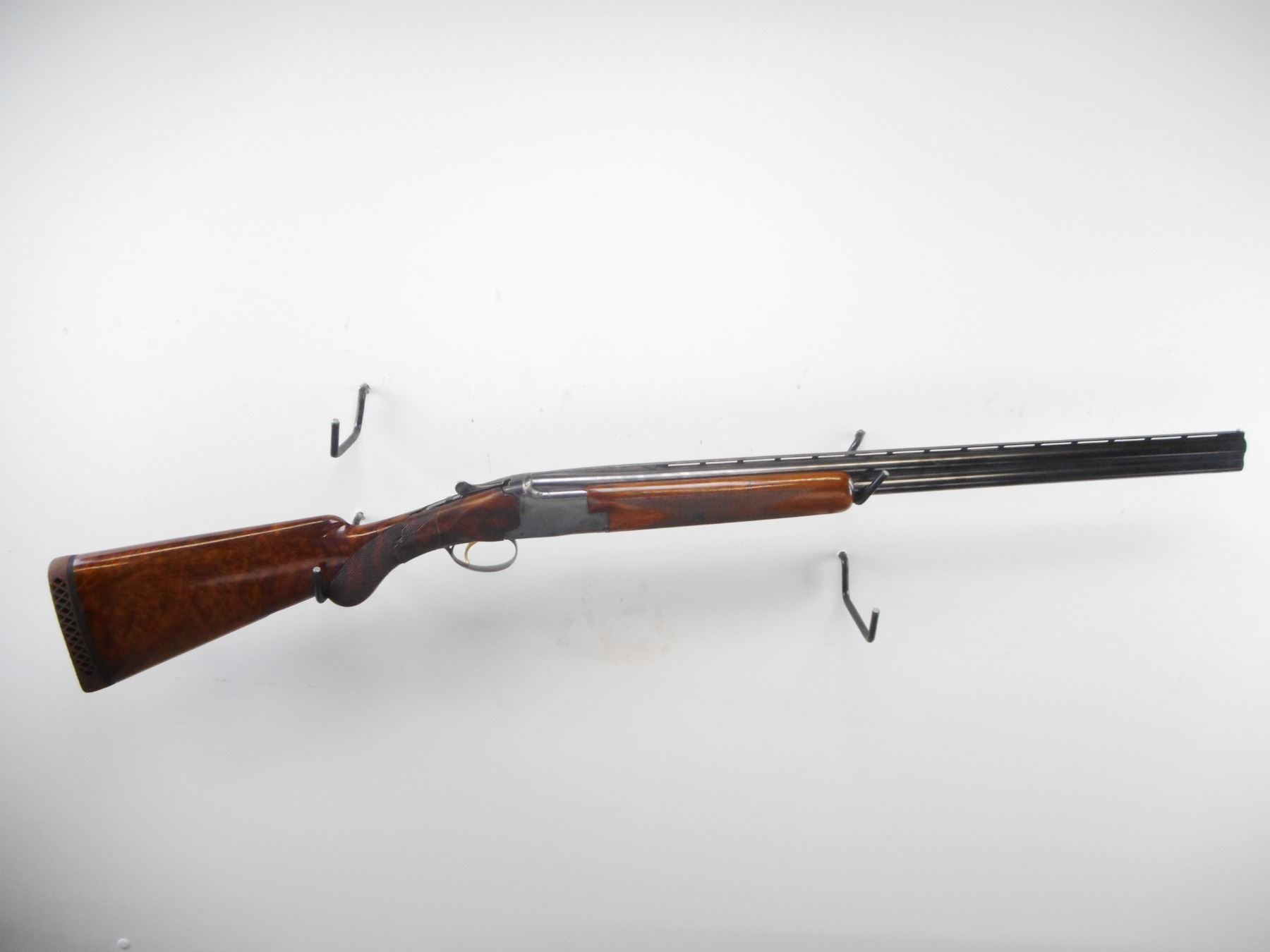 BROWNING , MODEL: SUPER POSED LIGHTNING , CALIBER: 20GA X 3" , FULL AND MOD CHOKE. BORE IS EXCELLENT AND EXCELLENT. SILVER BEAD. VENT RIB. POLISHED BLUE BARRELS AND ENGRAVED RECEIVER. MANUAL SELECTIVE SAFETY. EJECTORS. SINGLE GOLD TRIGGER. CHECKERED WOOD FOREND. BUTT STOCK IS BROKEN ON RIGHT SIDE BESIDE RECEIVER. PIECE INCLUDED. BROWN VENTED RUBBER RECOIL PAD. STOCK CRACKED ON LEFT SIDE. BLUEING SHOWS SOME HANDLING MARK AND WEAR. STOCK SHOWS SOME HANDLING MARKS AND WEAR. , ACTION: HINGE OVER UNDER SHOTGUN , BARREL LENGTH: 26 1/2" , SERIAL # 28638 V3 , CONDITION: 7/10, NOT INCLUDING BUTT STOCK. , CLASS: CANADIAN NON RESTRICTED CLASS