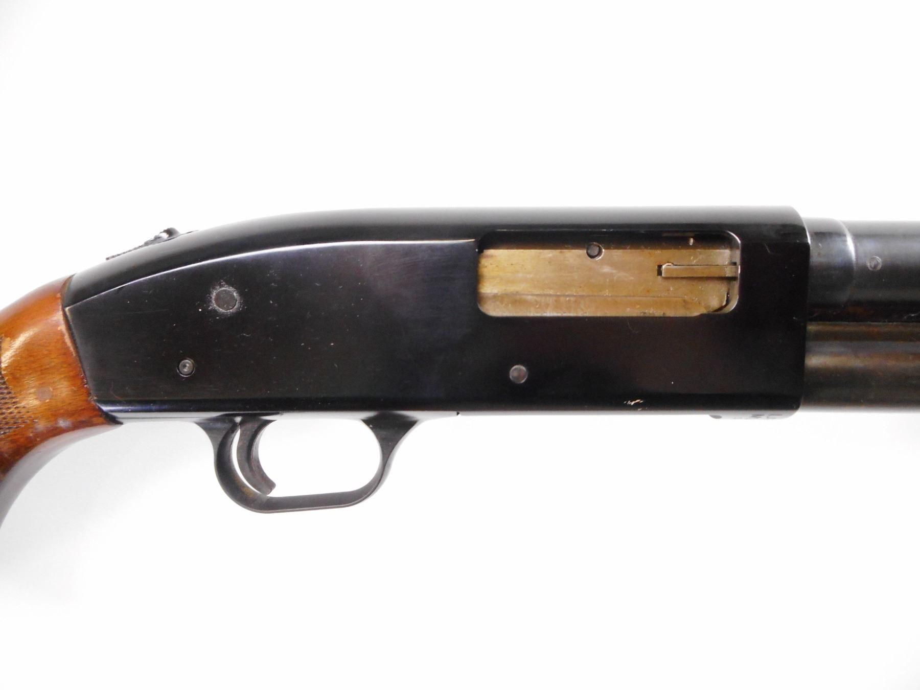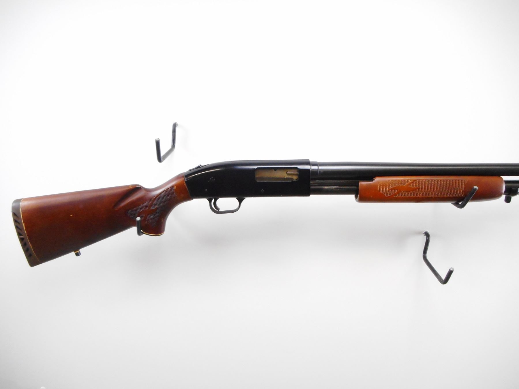 MOSSBERG , MODEL: 500 A , CALIBER: 12 GA X 3" , REMOVEABLE MOD CHOKE. BORE IS VERY GOOD. BRASS BEAD. ROUND BARREL. TWO PIECE WOOD STOCK. CHECKERED FORARM AND PISTOL GRIP. BROWN VENTED RUBBER RECOIL PAD. SWIVEL STUDS. METAL SHOWS SOME WEAR AND HANDLING MARKS. STOCK SHOWS SOME WEAR, DINGS AND HANDLING MARKS , ACTION: PUMP ACTION SHOTGUN , BARREL LENGTH: 28 1/2" , SERIAL # H339026 , CONDITION: 7/10 , CLASS: CANADIAN NON RESTRICTED CLASS