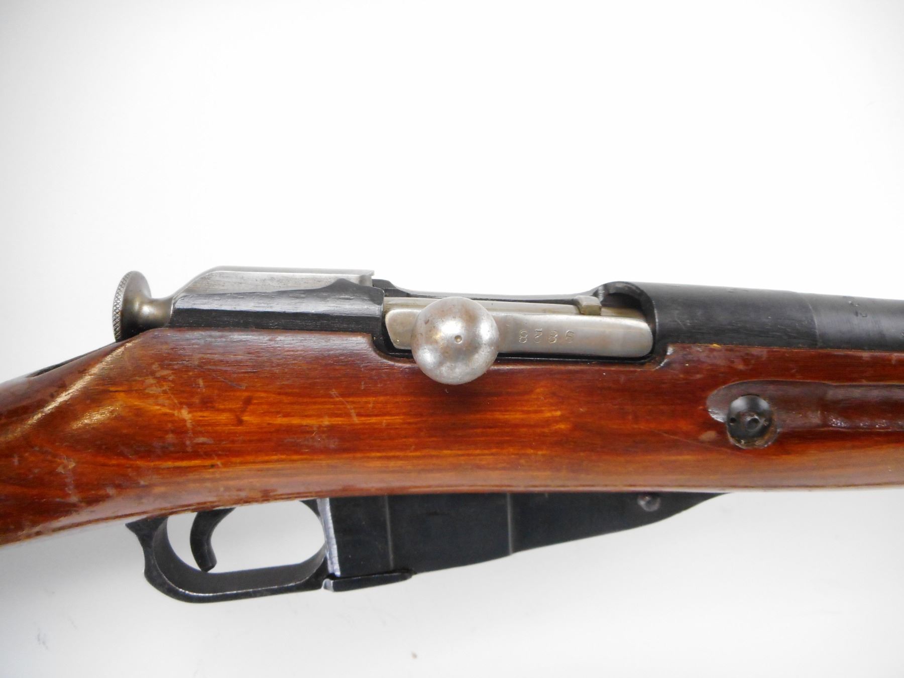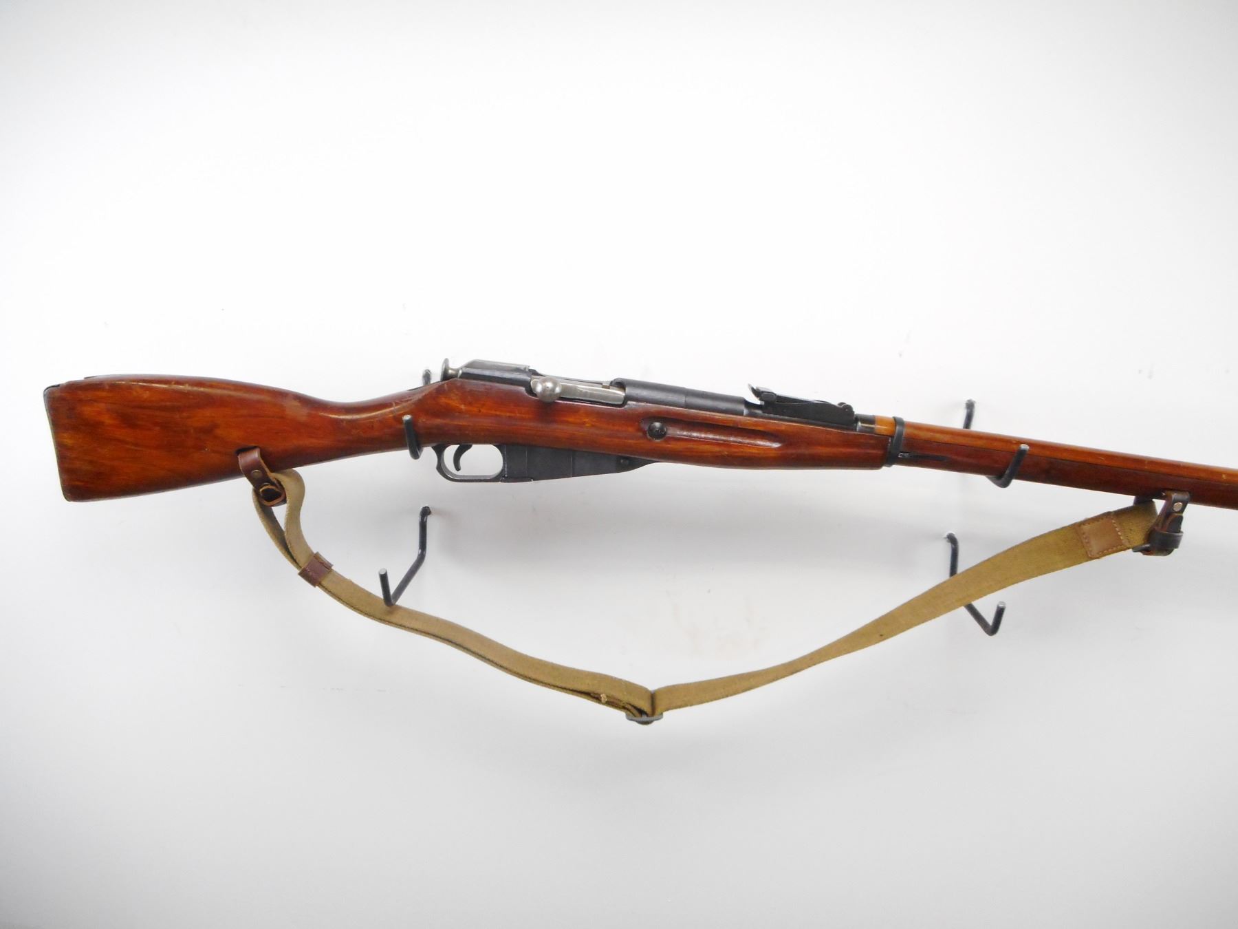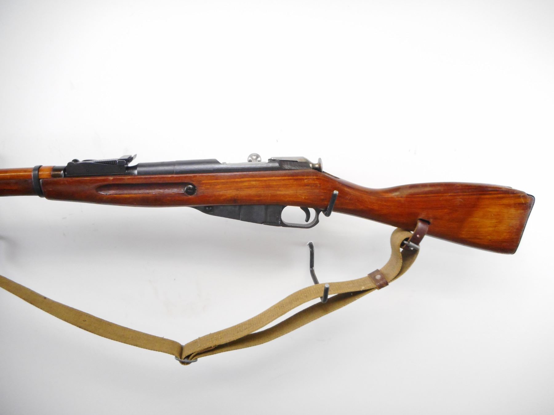 MOSIN NAGANT , MODEL: 91-30 , CALIBER: 7.62 X 54R , BORE IS FAIR DARK. 1942 MFG'D BY IZHEVSK. POST WAR REFURB. NUMBERS FORCED MATCH. POST FRONT SIGHT WITH HOOD. ADJUSTABLE U NOTCH REAR SIGHT. COMES WITH BAYNET AND SLING. TWO PICE FULL MILITARY STOCK. SMOOTH STEEL BUTT PLATE. CLEANING ROD. METAL SHOWS SOME WEAR AND HANDLING MARKS. STOCK SHOWS DINGS SCRATCHES AND HANDLING MARKS , ACTION: BOLT ACTION RIFLE , BARREL LENGTH: 31" , SERIAL # BN832 , CONDITION: 7/10 , CLASS: CANADIAN NON RESTRICTED CLASS