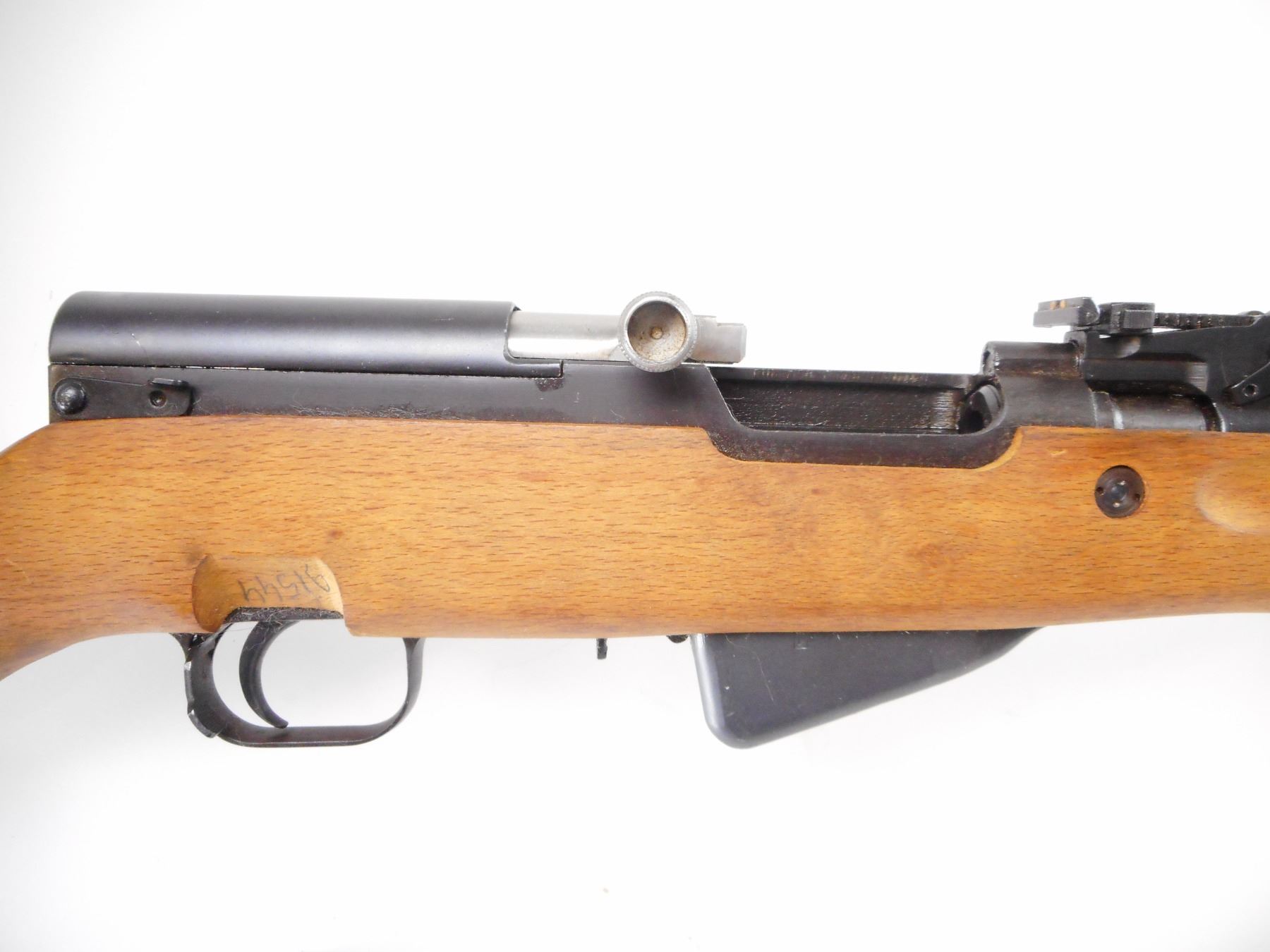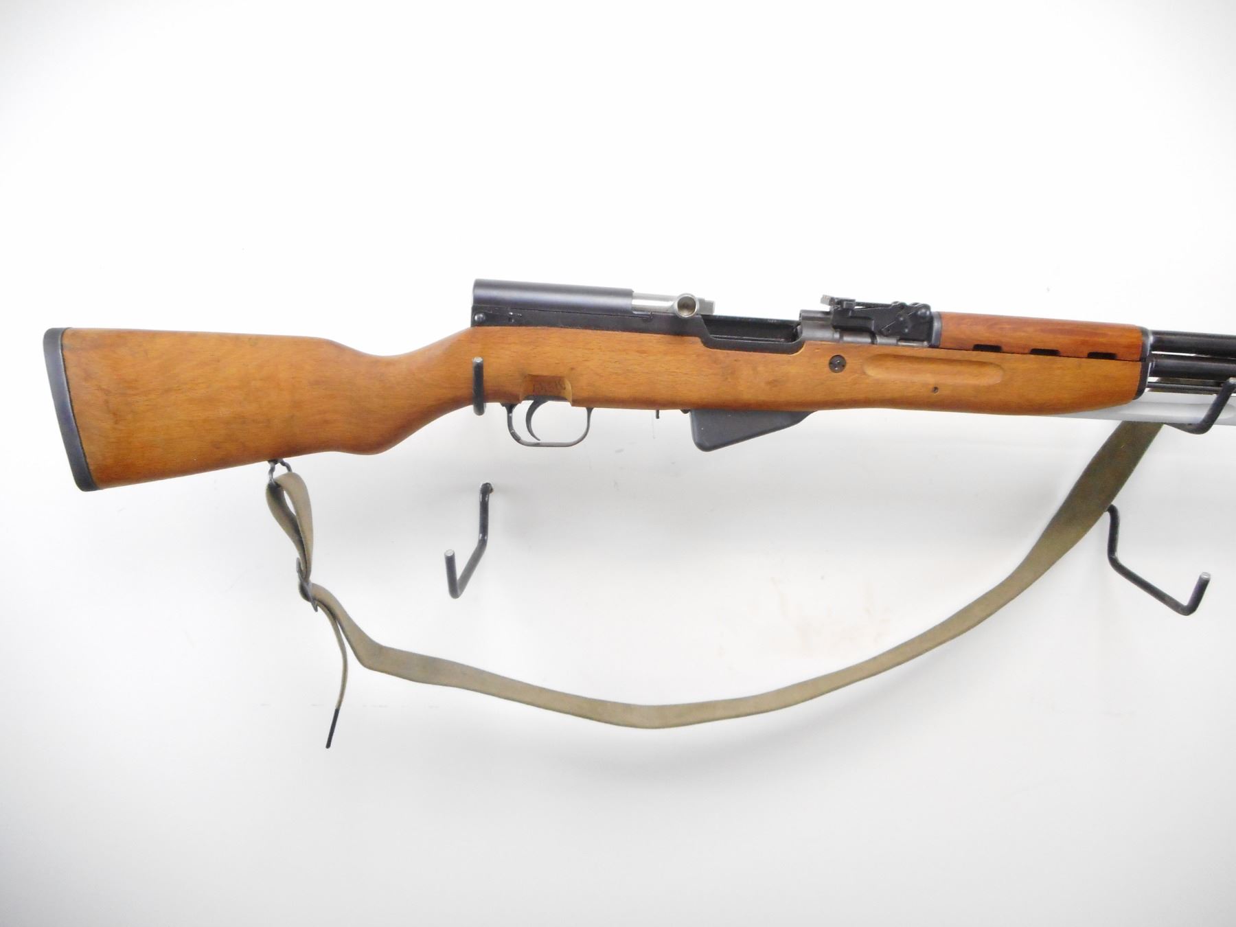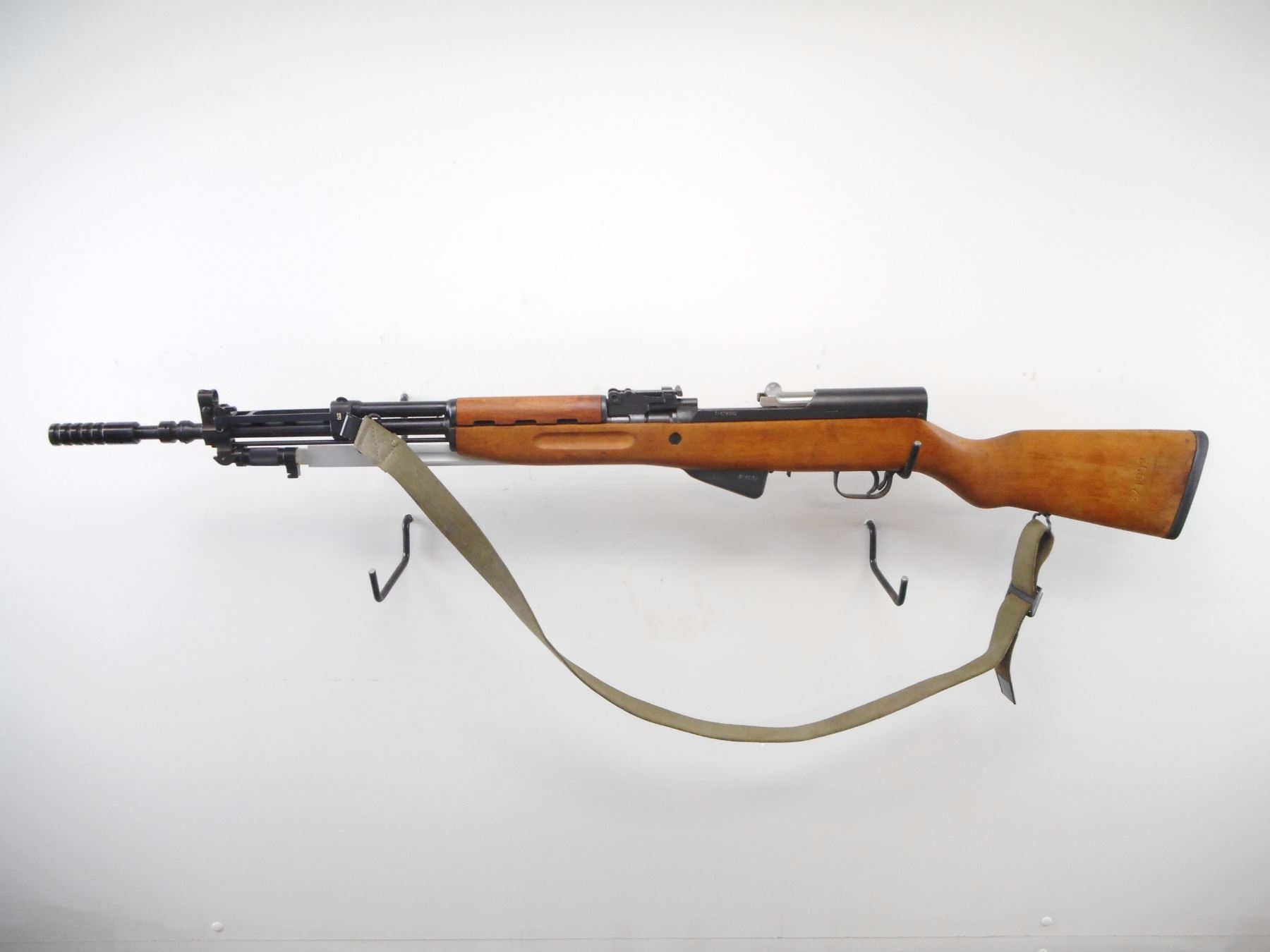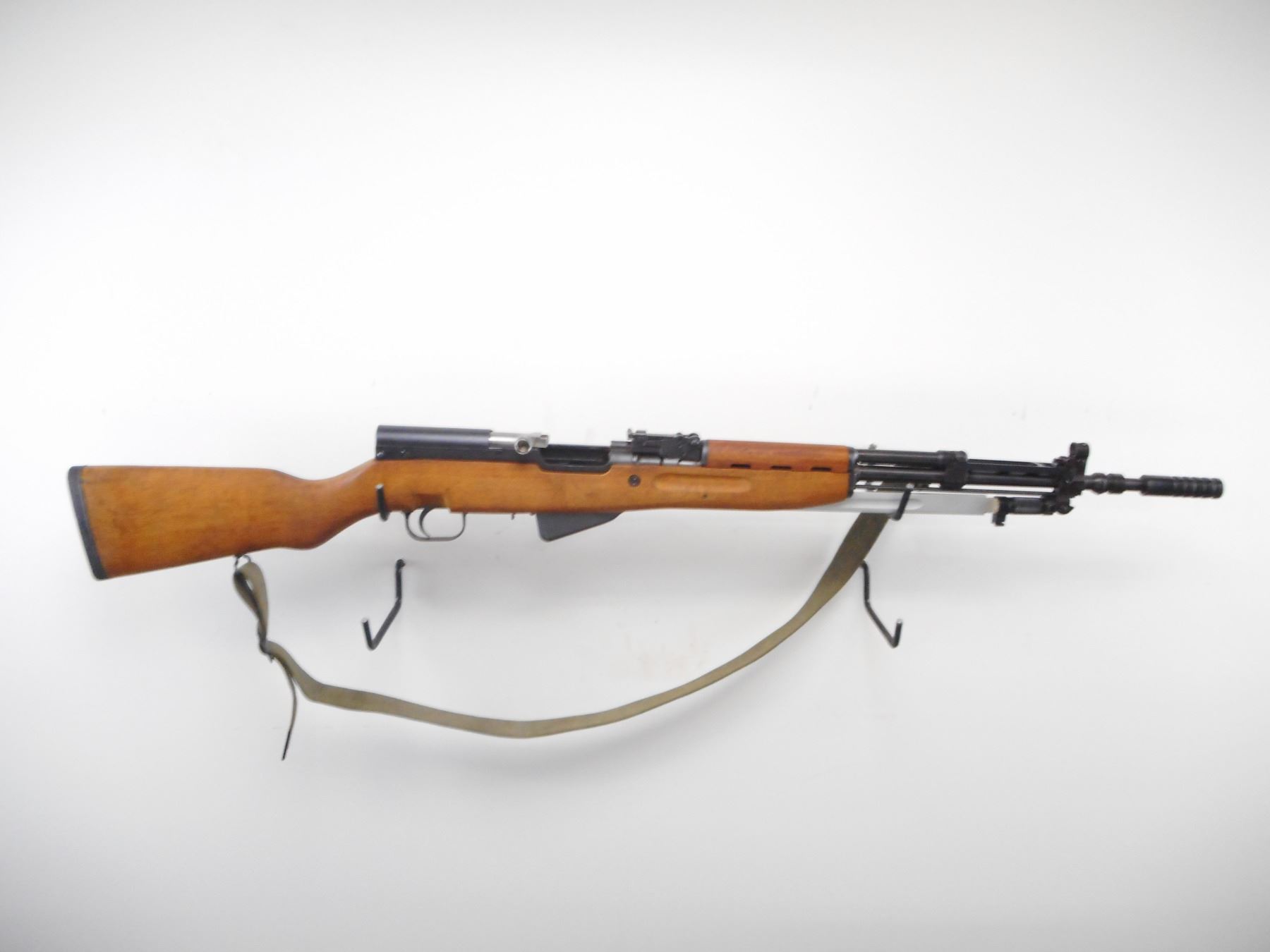 YUGOSLAV , MODEL: 59/66 , CALIBER: 7.62 X 39 , BORE IS VERY GOOD. SERIAL NUMBERS MATCH. MFG'D 1983. POST FRONT SIGHT WITH HOOD. ADJUSTABLE U NOTCH REAR SIGHT. FOLDING NIGHT SIGHTS. INTEGRAL GRENADE LAUNCHER WITH SIGHT. TWO PICE FULL MILITARY STOCK. BLACK RUBBER RECOIL PAD WITH TRAP. FOLDING BLADE BAYONET. CLEANING ROD. CANVAS SLING. METAL SHOWS SLIGHT WEAR. STOCK SHOWS SLIGHT DINGS AND WEAR. , ACTION: SEMI AUTO RIFLE , BARREL LENGTH: 24" , SERIAL # T678092 , CONDITION: 8/10 , CLASS: CANADIAN NON RESTRICTED CLASS