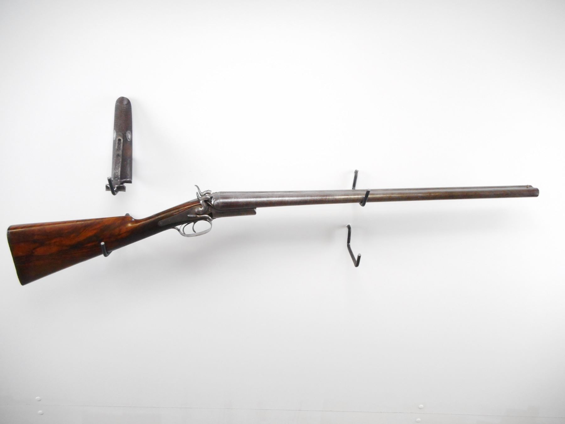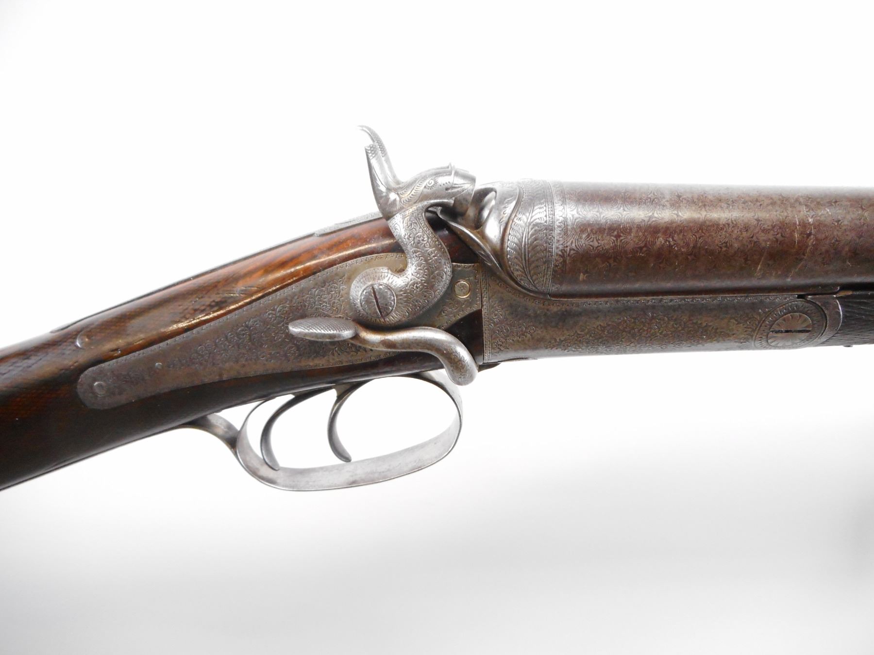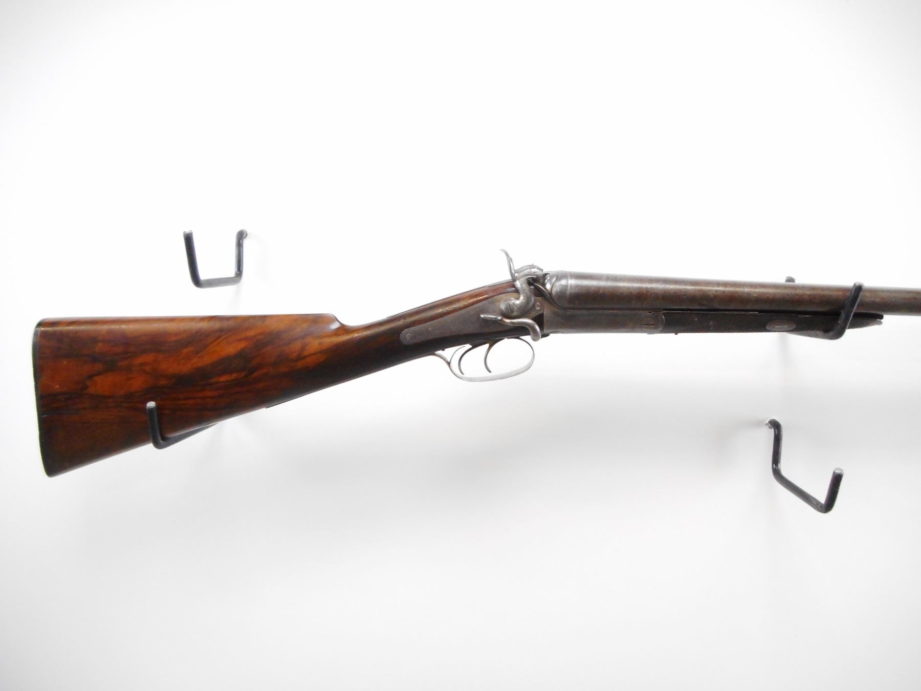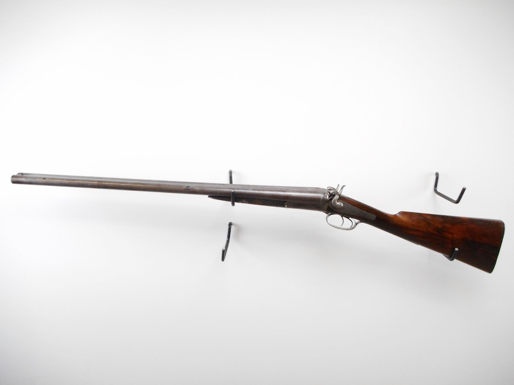 HOLLAND & HOLLAND , MODEL: SXS , CALIBER: 12 GA X 2 1/2" , MOD/IM, BORES ARE GOOD, LIGHT PITTING SMALL DINGS. BRASS BEAD. DEMASCUS BARRELS. RIBBED MARKED HOLLAND AND HOLLAND, 98 NEW BOND ST LONDON 1. REBOUNDING HAMMERS. RIGHT SIDE BROKEN. BACK ACTION LOCKS. DOUBLE TRIGGERS. RECEIVER TRIGGER GUARD LOCKS ARE ENGRAVED. SIDE OPENING LEVER. FOREARM WEDGE IS UNSOLDERED. PARTS INCLUDED, CHECKERED FOREARM WITH HORN TIP, NOT ORIGINAL, MAY REQUIRE FITTING. CHECKERED STRAIGHT GRIP STOCK. 14 1/4" LOP. STOCK CAST TO RIGHT. CHECKERED BUTT PLATE. BRASS VANITY PLATE. STOCK SHOWS SOME FIGURING IN GRAIN. METAL SHOWS WEAR AND HANDLING MARKS. STOCK SHOWS WEAR AND HANDLING MARKS. , ACTION: BREAK ACTION SXS SHOTGUN , BARREL LENGTH: 26 1/4" , SERIAL # 3676 , CONDITION: 5/10 , CLASS: CANADIAN NON RESTRICTED CLASS