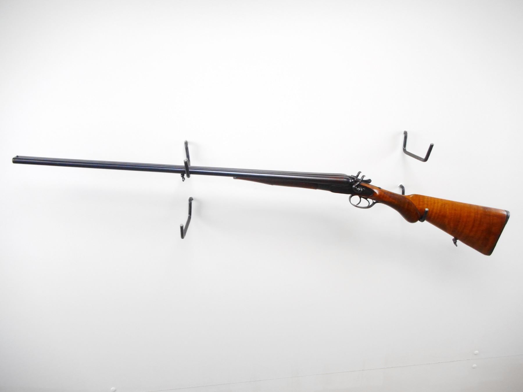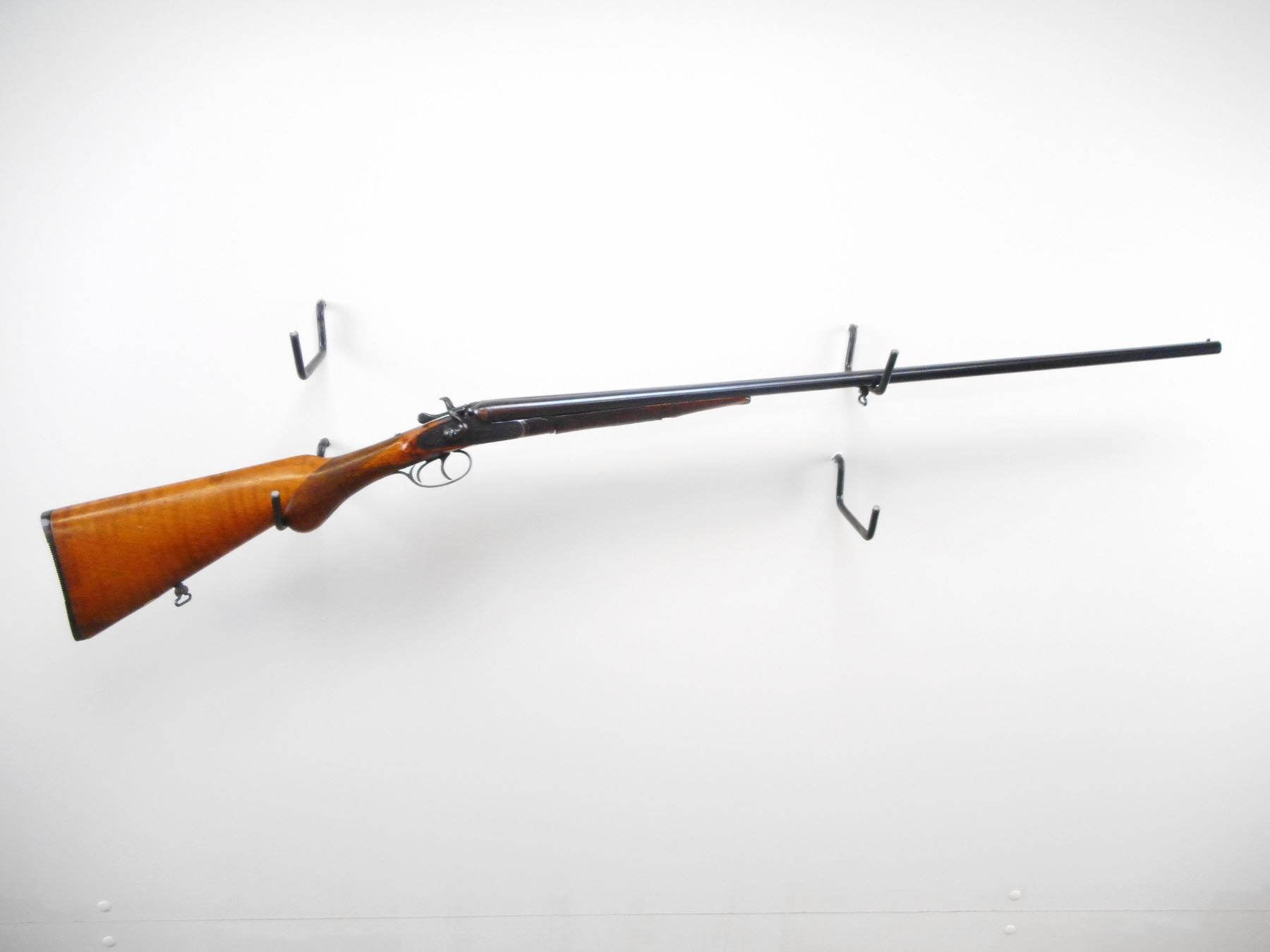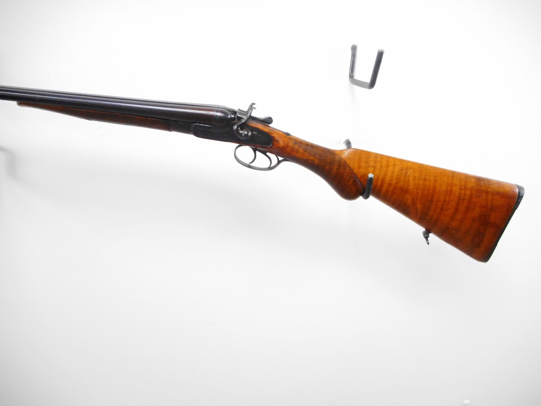 NEWMAN BROTHERS , MODEL: SXS , CALIBER: 44 SHOT , CYL/MOD CHOKES. BORE IS GOOD, LIGHT PITTING, SMALL DENTS. BRASS BEAD. REBLUED. LAMINTAED STEEL BARRELS. SIDE LOCKS EXTERNAL HAMMERS. EXTRACTOR. DOUBLE TRIGGERS. TWO PIECE WOOD STOCKS. CHECKERED FOREARM AND PISTOL GRIPS. GROOVED BLACK POLYMER BUTT PLATE. SLING SWIVELS. FOREARM SLIGHTLY LOOSE. BLUEING SHOWS SOME WEAR AND HANDLING MARKS. WOOD SHOWS HANDLING MARKS AND DINGS. , ACTION: BREAK ACTION SXS SHOTGUN , BARREL LENGTH: 26" , SERIAL # 1365 , CONDITION: 5/10 , CLASS: CANADIAN NON RESTRICTED CLASS