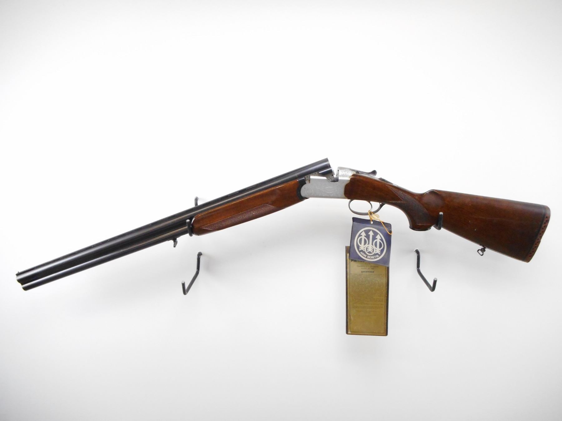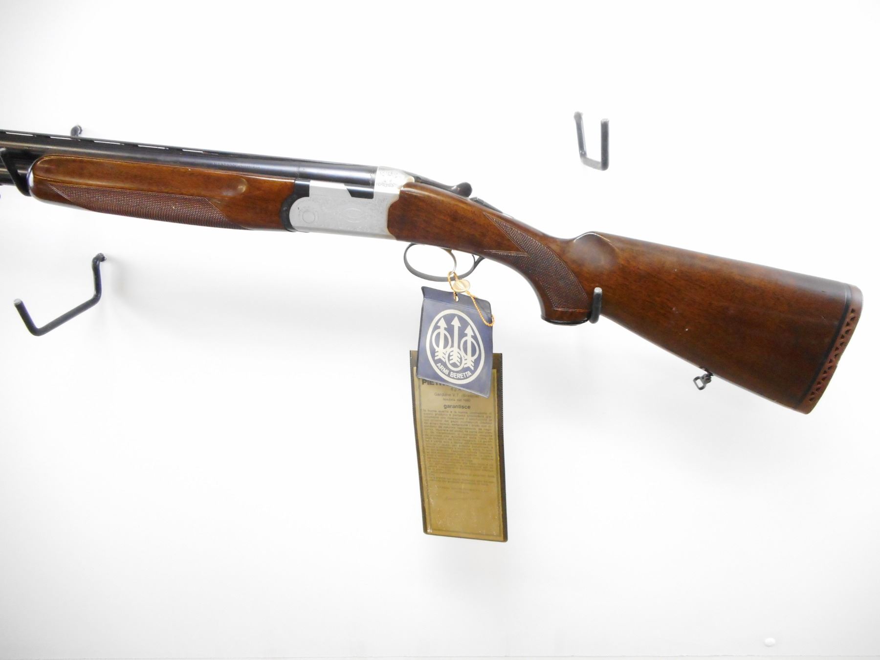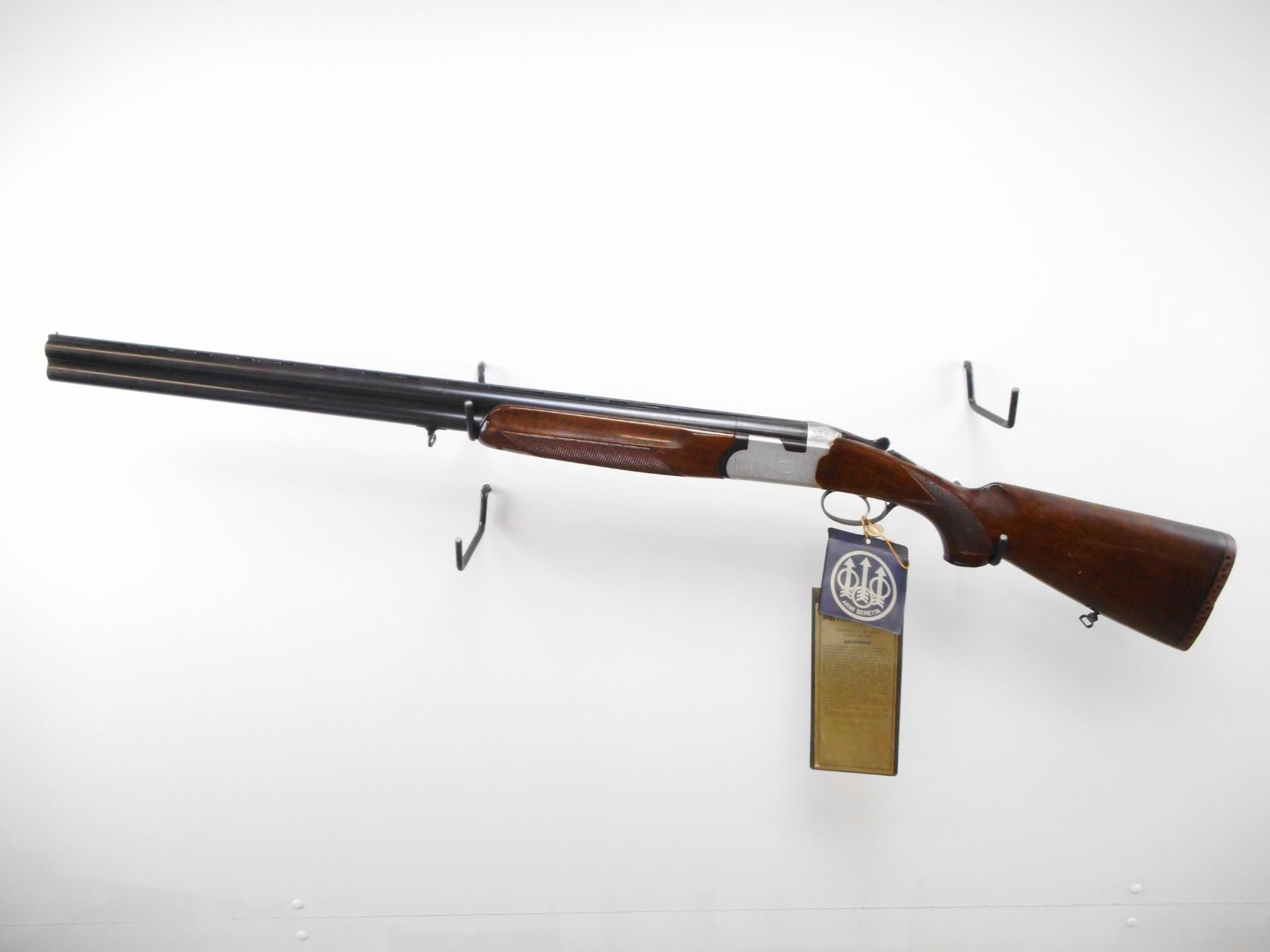 BERETTA , MODEL: S56E , CALIBER: 12 GA X 3" , FULL & I/M CHOKES, BORE IS EXCELLENT AND EXCELLENT. BRASS BEAD. VENTED RIB, BLUED BARRELS. ENGRAVED SILVER RECEIVER. EJECTORS MANUAL SELECTIVE SAFETY. SINGLE INERTIA TRIGGER. TWO PIECE WOOD STOCKS. CHECKERED FOREARMS AND PISTOL GRIP. BROWN VENTED RUBBER RECOIL PAD. GRIP CAP. ORIGINAL FACTORY HAND TAGS. SLING SWIVELS. BLUEING SHOWS MINOR HANDLING MARKS. STOCK SHOWS FEW DINGS AND SCRATCHES. SOME WEAR. , ACTION: OVER UNDER BREAK ACTION , BARREL LENGTH: 28" , SERIAL # B65013B , CONDITION: 8/10 , CLASS: CANADIAN NON RESTRICTED CLASS