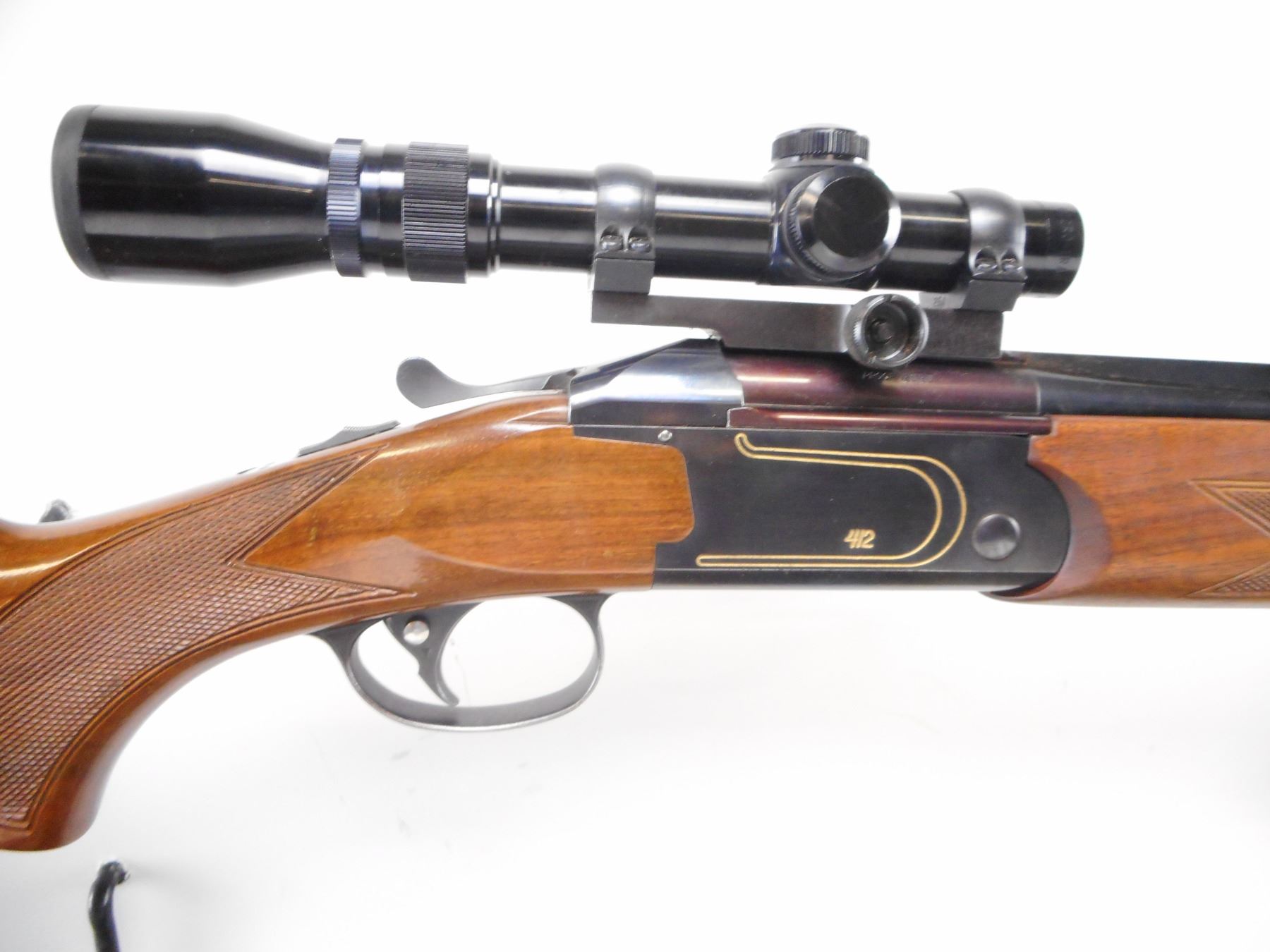 VALMET , MODEL: 412 3 BARREL SET. , CALIBER: 30-06/30-06 INSTALLED , COMES WITH CASE, SLING AND MANUAL. BORES ARE EXCELLENT. BLADE FRONT SIGHT. FOLDING U NOTCH REAR SIGHT. QUICK DETACH SCOPE MOUNT WITH WEAVER 1-3 X 20 SCOPE. CLEAR OPTICS. DUPLEX CROSS HAIR. AUTOMATIC SAFTEY. SINGLE SELECTIVE MECHANICAL TRIGGER. TWO PIECE WOOD STOCKS. CHECKERED FROEARM AND PISTOL GRIP. RAISED CONE. BLACK VENTED RUBBER RECOIL PAD. SLING STUDS. SECOND BARREL 12 GA X 2 3/4", & 223 REM. BARREL LENGHT 23 1/2" BORES ARE EXCELLENT. FULL CHOKE. BLADE FRONT SIGHT. FOLDING U NOTCH REAR SIGHT. SWIVEL STUD ON BOTTOM BARREL. THIRD BARREL OVER & UNDER 12 GA X 2 3/4". BARREL LENGTH IS 28". EXCELLENT BORES. FULL AND I/M CHOKE. SILVER FRONT AND MID RIB SIGHT. EJECTORS, HAS SWIVEL STUDS. RECEIVER AND 3 BARREL ALL NUMBERED THE SAME. BLUEING SHOWS SOME MINOR HANDLING MARKS AND WEAR. STOCK SHOWS SOME SCRATCHES AND HANDLING MARKS. , ACTION: HINGE COMBINATION , BARREL LENGTH: 23" , SERIAL # 183 , CONDITION: 9/10 , CLASS: CANADIAN NON RESTRICTED CLASS
