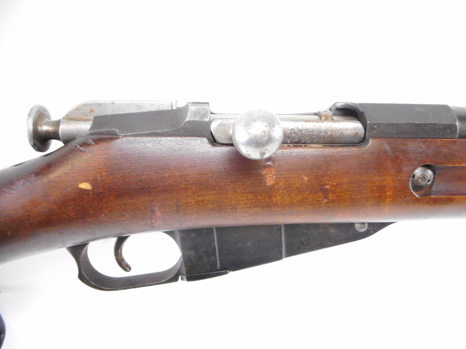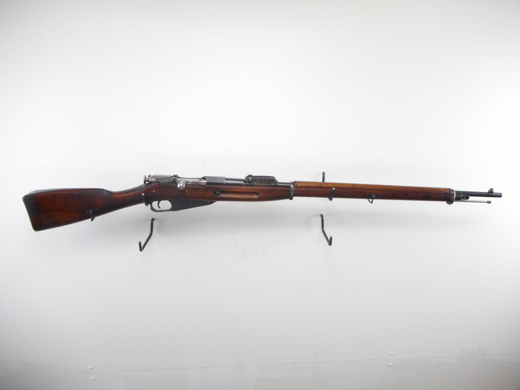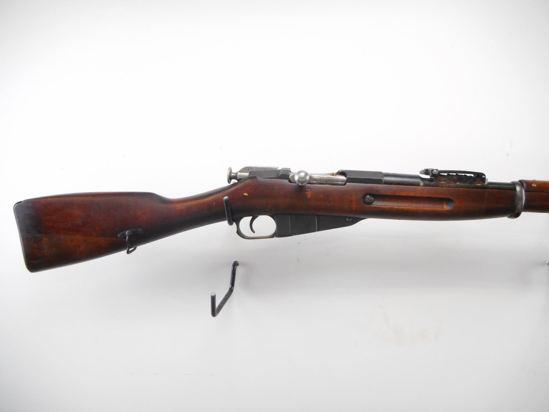 MOSIN NAGANT , MODEL: M91 FINNISH , CALIBER: 7.62 X 54R , BORE IS VERY GOOD. BARREL MFG'D BY TIKKA 1941. BLADE FRONT SIGHT. U NOTCH ADJUSTABLE REAR SIGHT. OCTAGONAL RECEIVER. RENUMBERED BY THE FINNS. TWO PIECE FULL MILITARY STOCK. SMOOTH STEEL BUTT PLATE. SLING SWIVELS. CLEANING ROD. METAL SHOWS SOME HANDLING MARKS AND WEAR. STOCKS SHOW SOME DING AND WEAR. , ACTION: BOLT ACTION RIFLE , BARREL LENGTH: 31 1/2" , SERIAL # 19582 , CONDITION: 7/10 , CLASS: CANADIAN NON RESTRICTED CLASS