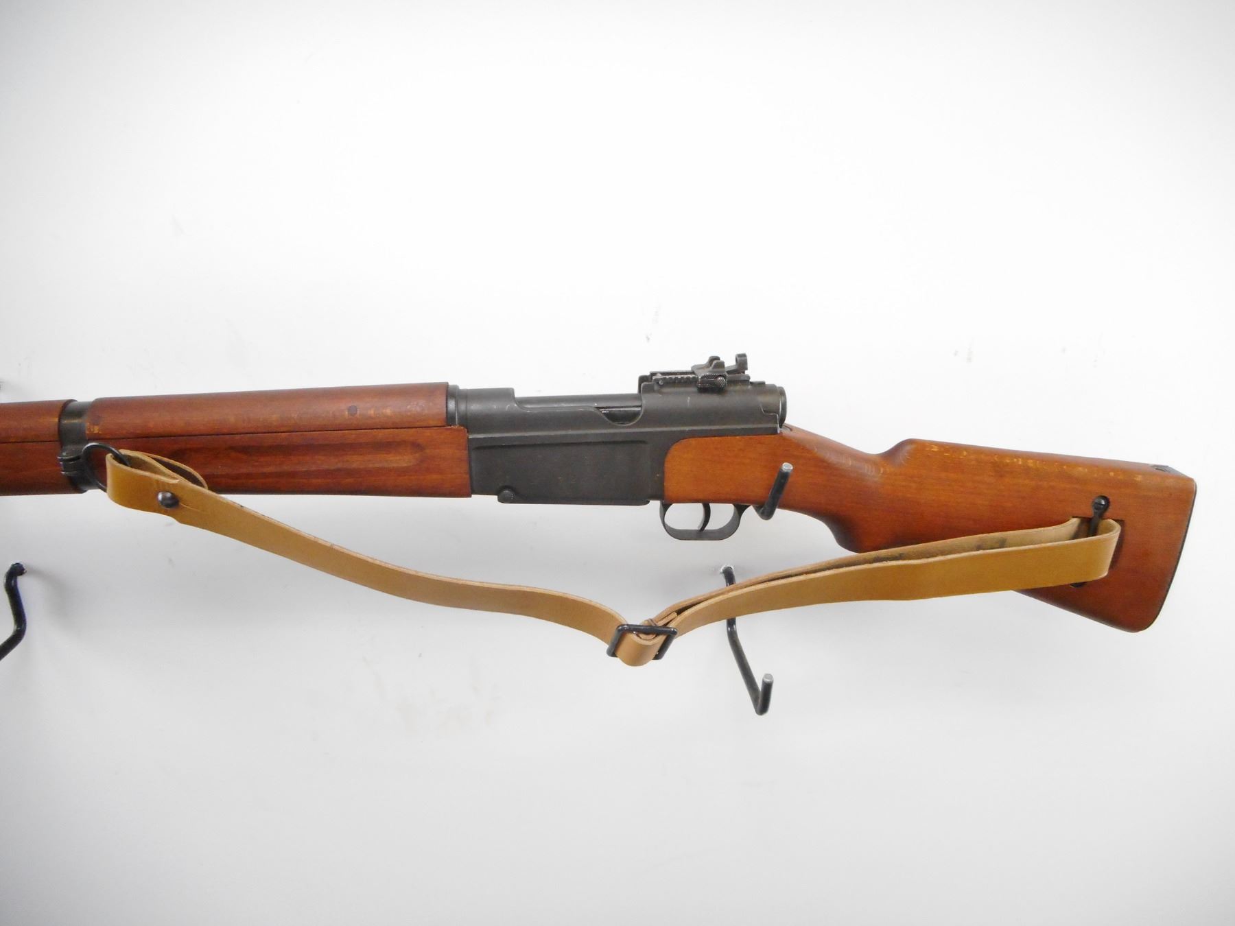 FRENCH MAS , MODEL: 1936 , CALIBER: 7.5 X 54 FRENCH , BORE IS VERY GOOD. BOLT, RECEIVER AND FLOOR PLATE MATCH. BLADE FRONT SIGHT WITH HOOD. ADJUSTABLE REAR PEEP. THREE PIECE FULL MILITARY STOCKS. UNNUMBERED. SMOOTH STEEL BUTT PLATE. SLING SWIVELS WITH BROWN LEATHER SLING, AND MANUAL. STALKING HOOK. BAYONET. METAL SHOWS SLIGHT HANDLING MARKS AND WEAR. STOCK SHOWS SLIGHT HANDLING MARKS. , ACTION: BOLT ACTION RIFLE , BARREL LENGTH: 23" , SERIAL # L72632 , CONDITION: 8/10 , CLASS: CANADIAN NON RESTRICTED CLASS