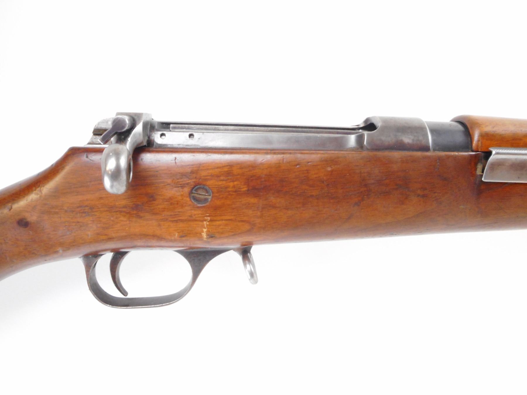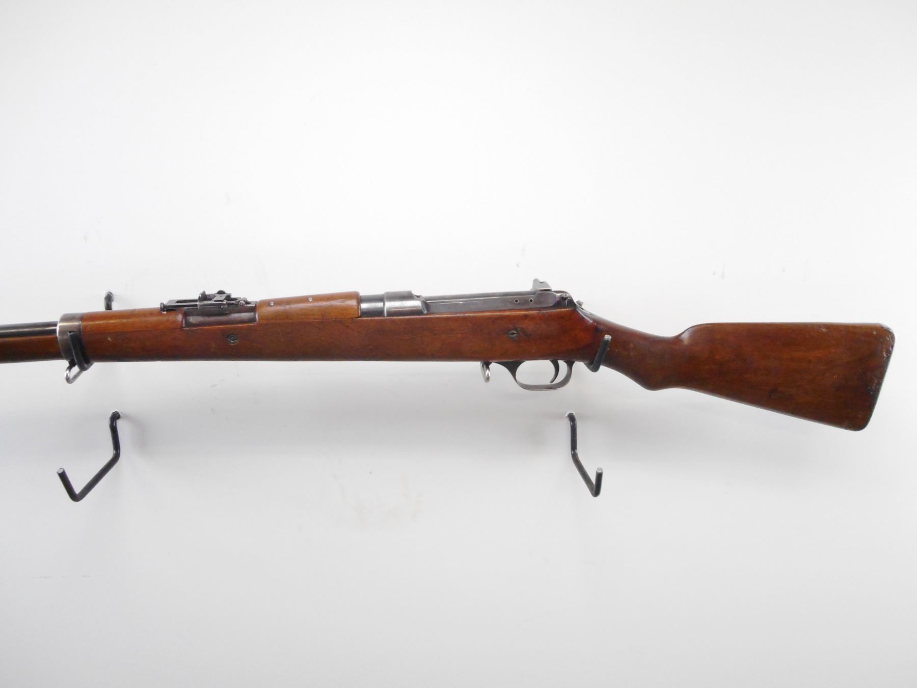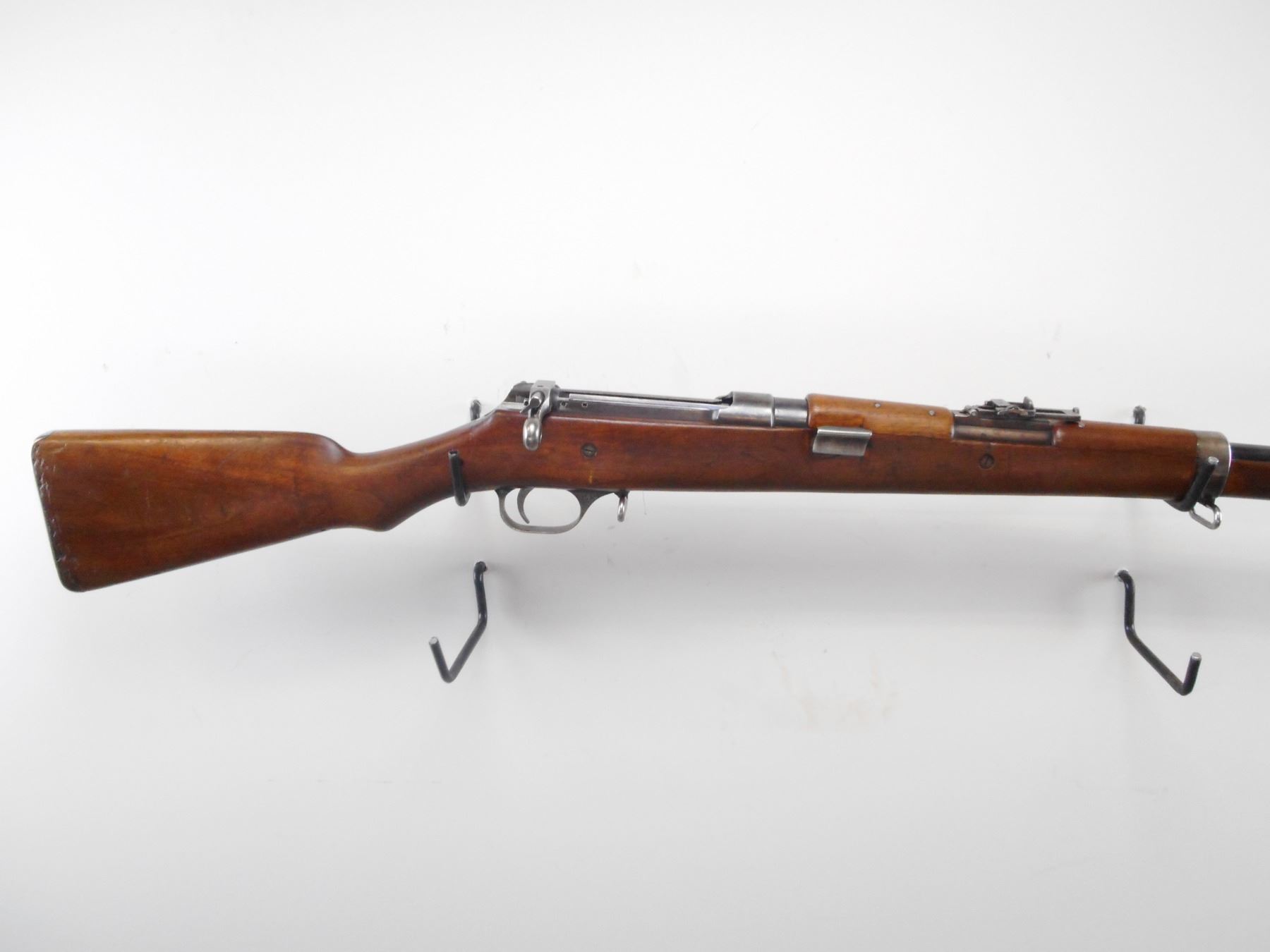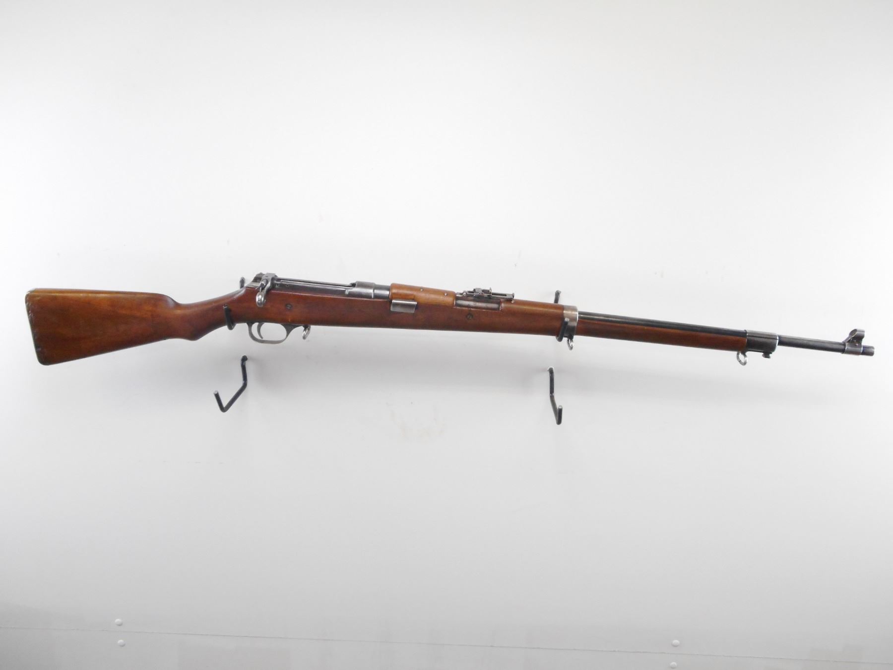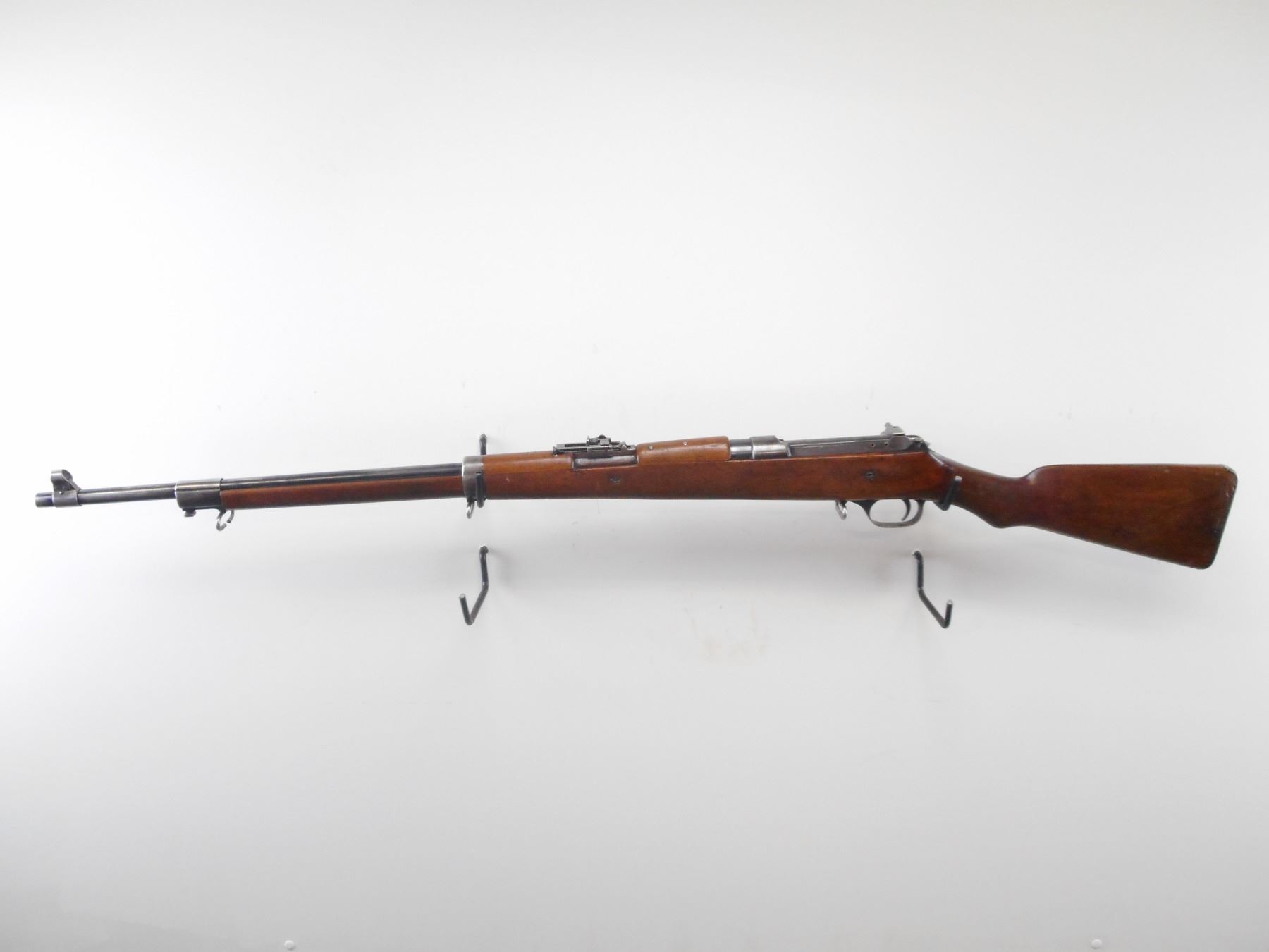 ROSS , MODEL: 1905 MKII** CIVILIAN TARGET RIFLE , CALIBER: 303 BR , BORE IS FAIR, WORN. BLADE FRONT SIGHT WITH HOOD. AJUSTABLE CANADA TOOL AND SPECIALTY REAR SIGHT. LOADING LEVER. FLAG TYPE SAFETY. RECEIVER DRILLED AND TAPPED FOR PEEP. TWO PIECE FULL LENGTH STOCK. SMOOTH STEEL BUTT PLATE WITH TRAP. THREE SWIVELS. FOREND SHORTENED TO PREVENT USE OF BAYONET. BLUEING SHOWS SOME WEAR AND HANDLING MARKS. STOCK SHOWS DINGS SCRATCHES AND HANDLING MARKS , ACTION: BOLT ACTION RIFLE , BARREL LENGTH: 30 1/2" , SERIAL # 5081 , CONDITION: 7/10 , CLASS: CANADIAN NON RESTRICTED CLASS