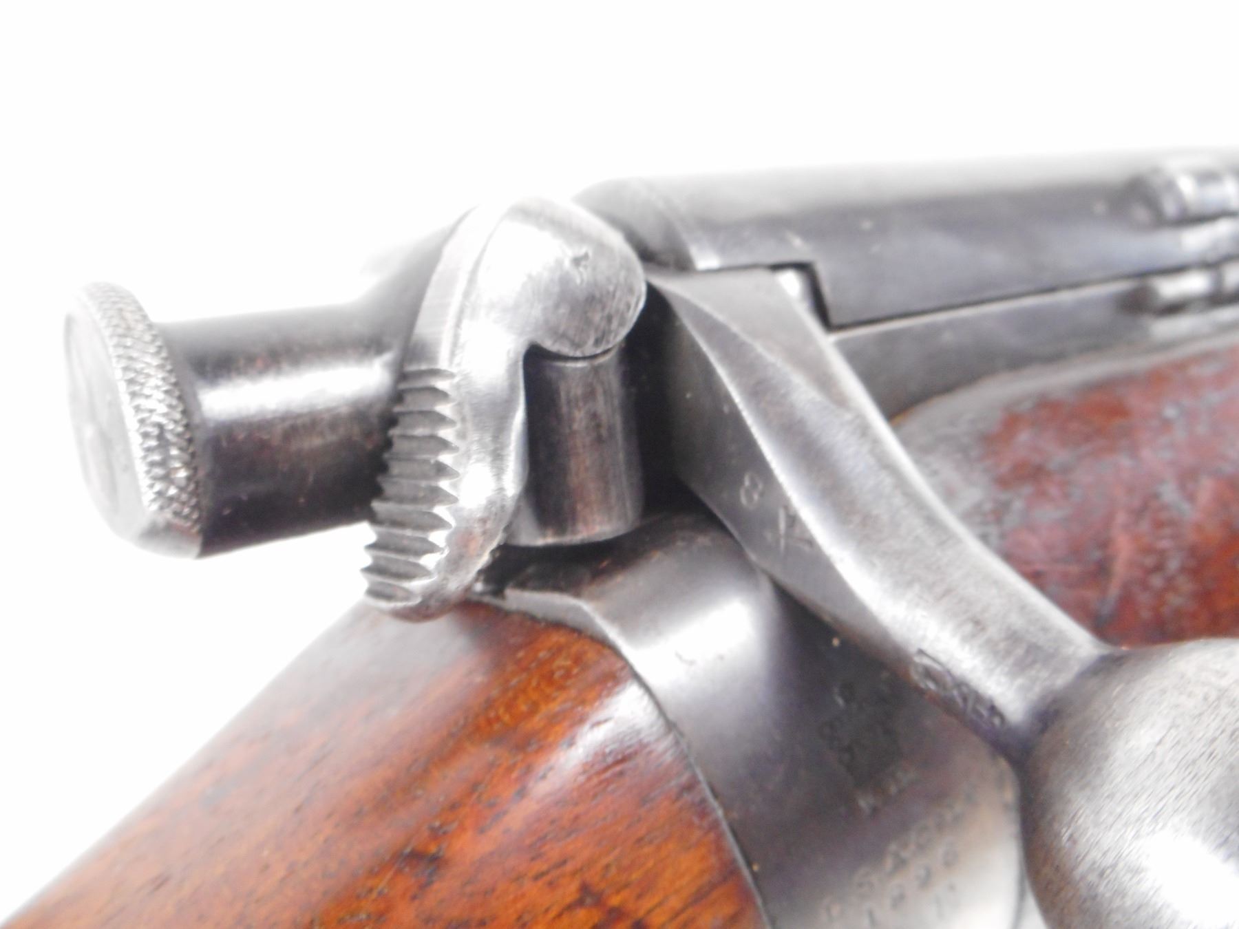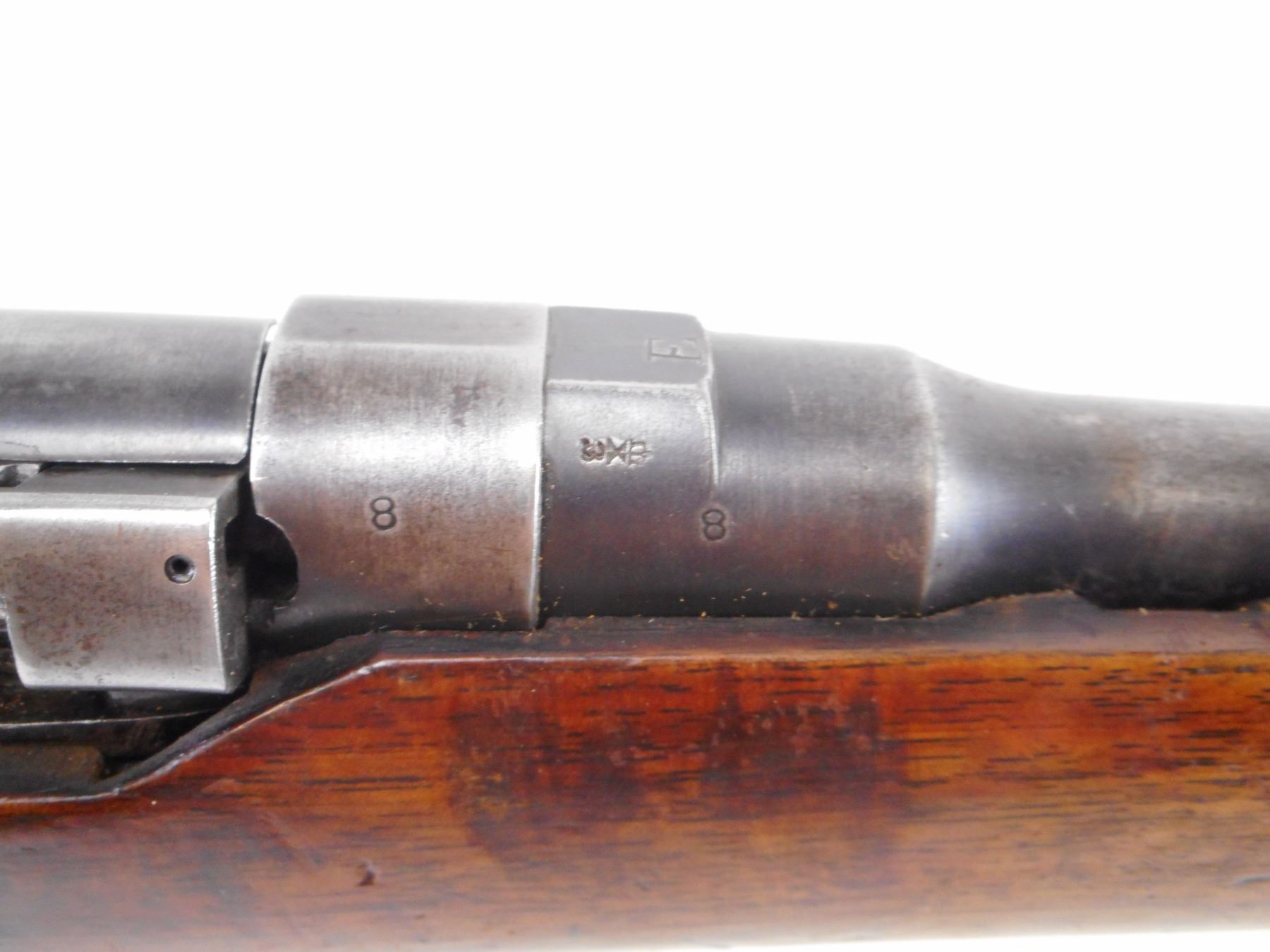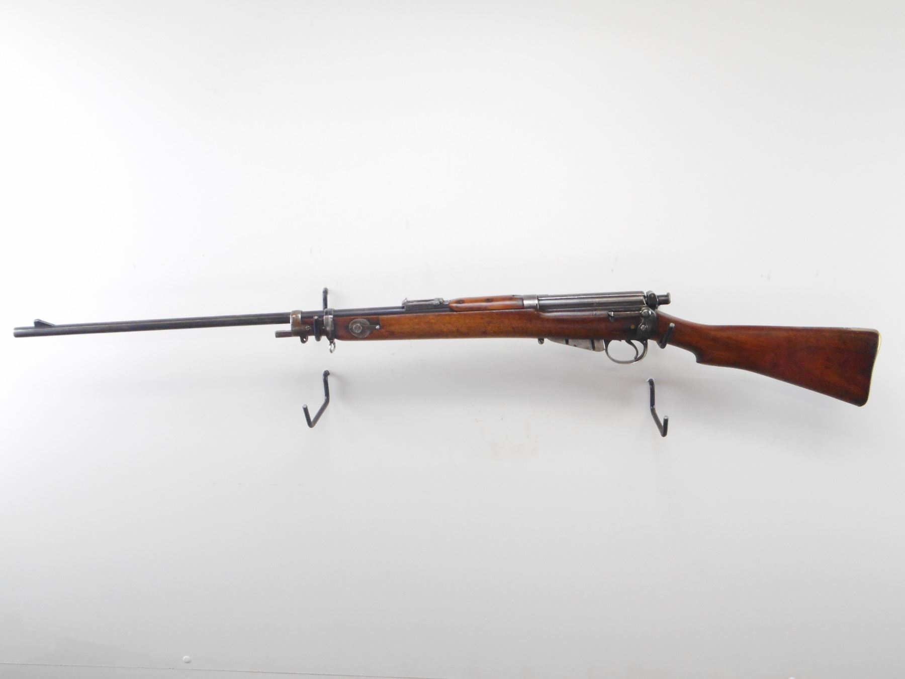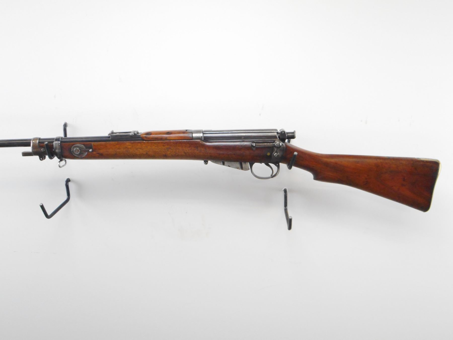 LONG LEE ENFIELD , MODEL: MK1* SPORTER , CALIBER: 303 BR , COMES WITH MAGAZINE CUT DOWN. BORE IS GOOD, WORN. RARE MANUFACTURE LSA CO 1896 WITH UNUSUALLY LOW SERIAL #. BOLT, RECEIVER, BARREL, REAR SIGHT ALL NUMBERED 8. TWO PIECE CUT DOWN STOCKS NICLEY DONE.RETAINS VOLLEY SIGHTS. BRASS BUTT PLATE WITH TRAP. TANG MARKED 6H/70. ONE SWIVELS. STOCK RETAINS MIDDLE BAND AND NOSE CAP. BAYONET LUG. BLUEING SHOWS SOME HANDLING MARKS AND WEAR. STOCK SHOWS, NUMEROUS DINGS, HANDLING MARKS AND WEAR. , ACTION: BOLT ACTION RIFLE , BARREL LENGTH: 30 1/4" , SERIAL # 8 , CONDITION: 6/10 , CLASS: CANADIAN NON RESTRICTED CLASS