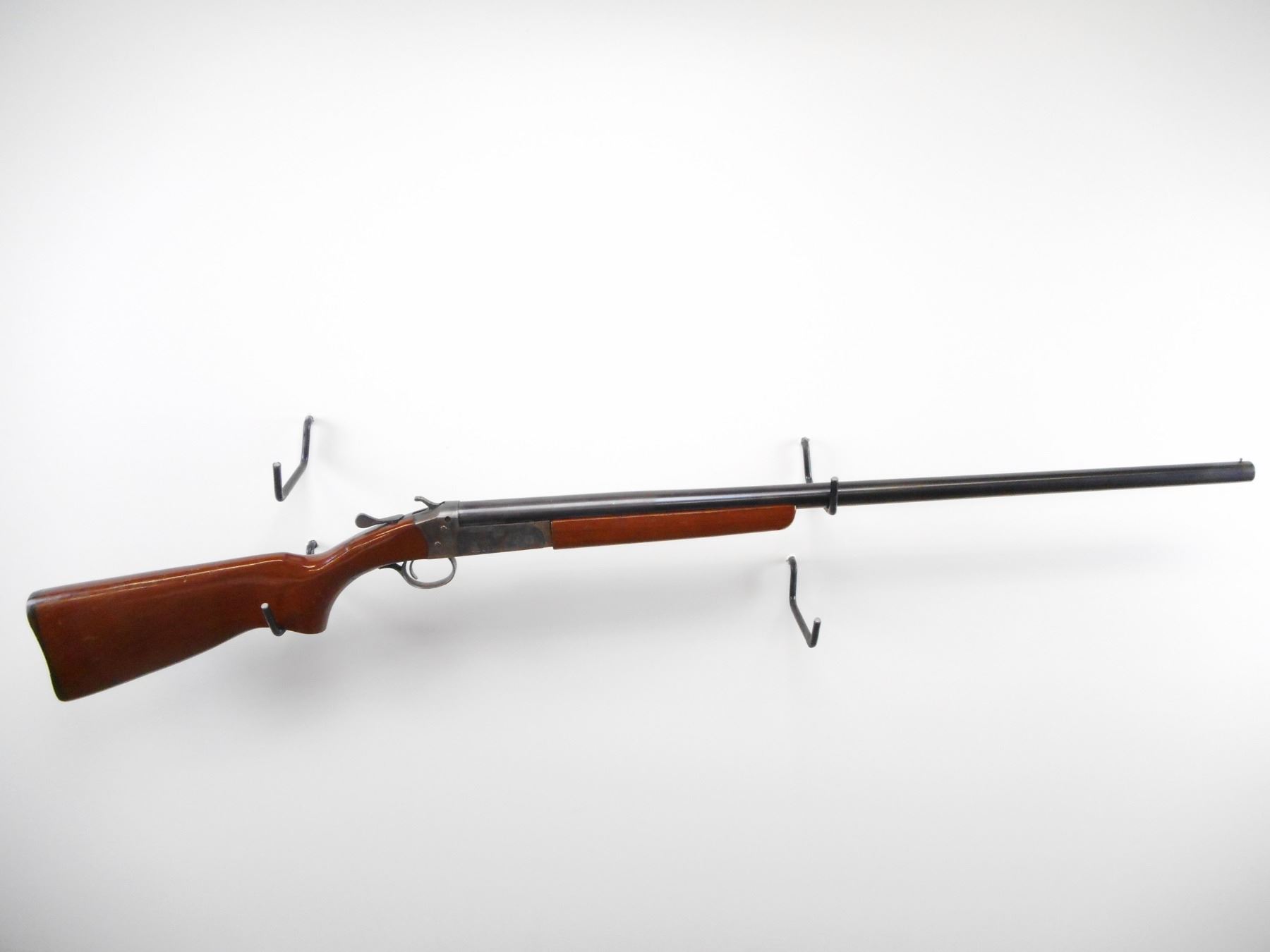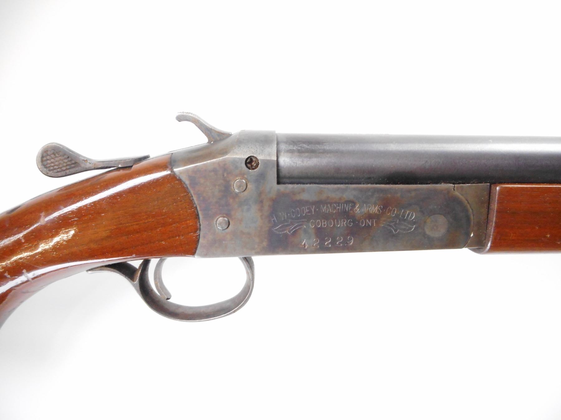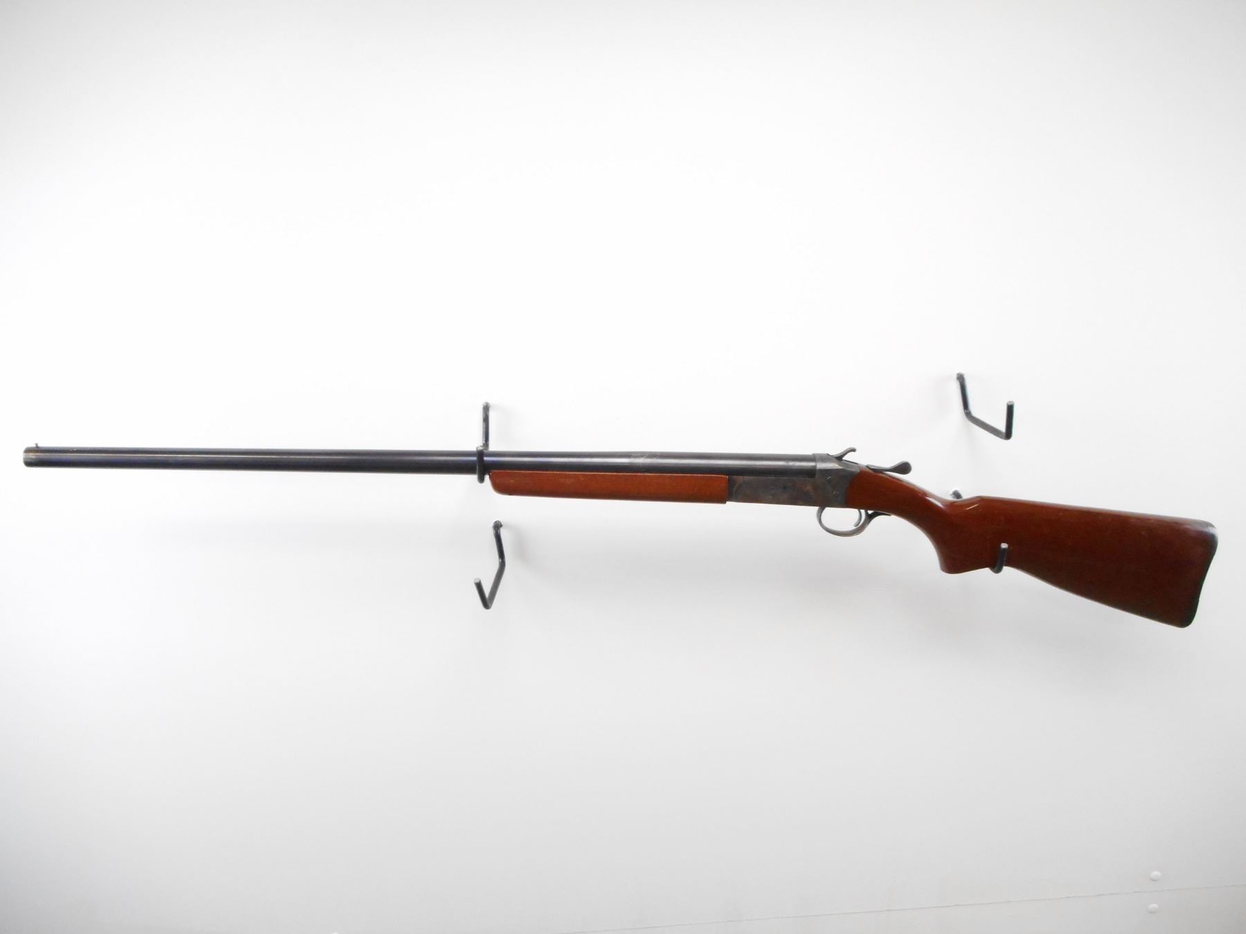 COOEY , MODEL: 84 , CALIBER: 12 GA X 3" , FULL CHOKE. BORE IS VERY GOOD. BRASS BEAD. BLUED ROUND BARREL. COLOUR CASE HARDENED RECEIVER. TWO PIECE SMOOTH WOOD STOCKS. GROOVED BLACK POLYMER BUTT PLATE. BLUEING SHOWS SOME WEAR AND HANDLING MARKS. STOCKS SHOWS SOME WEAR AND HANDLING MARKS. , ACTION: HINGED SINGLE BARREL SHOTGUN , BARREL LENGTH: 30" , SERIAL # 42229 , CONDITION: 6/10 , CLASS: CANADIAN NON RESTRICTED CLASS