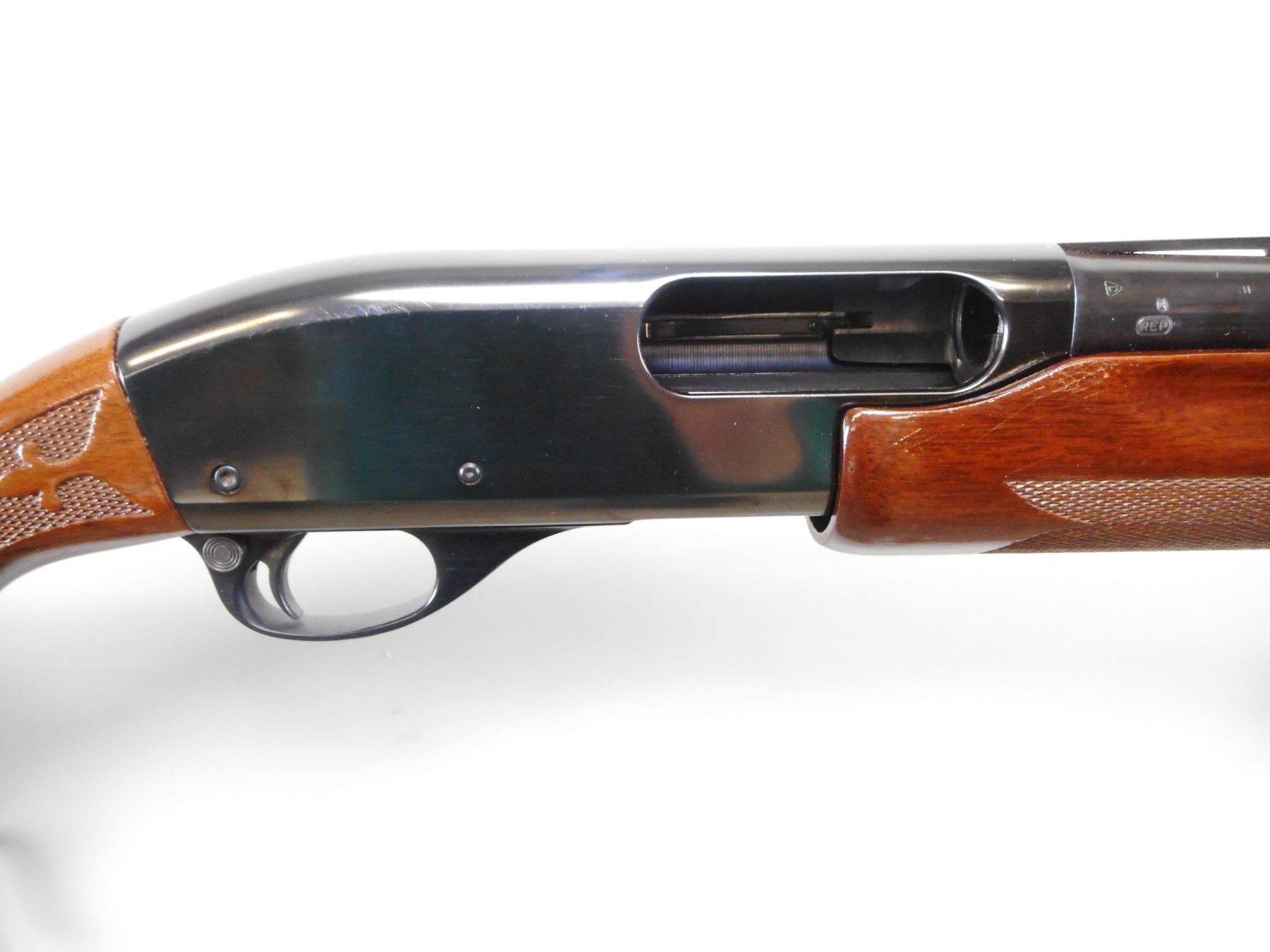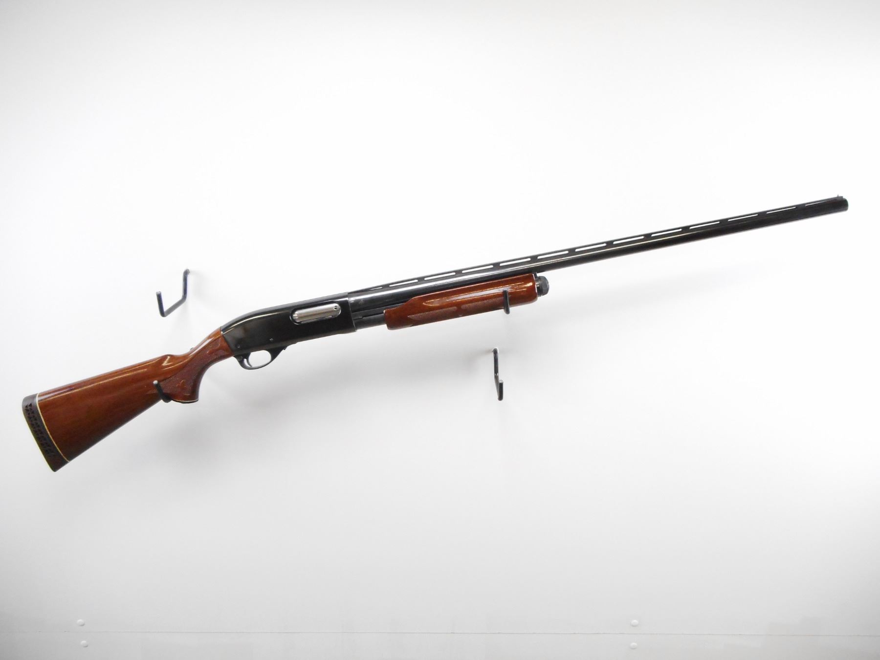 REMINGTON , MODEL: WINGMASTER MAGNUM , CALIBER: 12GA X 3" , MOD CHOKE. BORE IS VERY GOOD. SILVER BEAD. VENT RIB. POLISHED BLUE FINISH. TWO PIECE WOOD STOCKS. WITH FLEUR DE LISE CHECKERING ON FOREAM AND PISTOL GRIP. BROWN VENTED RUBBER RECOIL PAD. METAL SHOWS SLIGHT HANDLING MARKS AND WEAR. STOCK SHOWS SMALL SCRATCHES AND HANDLING MARKS. , ACTION: PUMP ACTION SHOTGUN , BARREL LENGTH: 30" , SERIAL # V196546M , CONDITION: 8/10 , CLASS: CANADIAN NON RESTRICTED CLASS