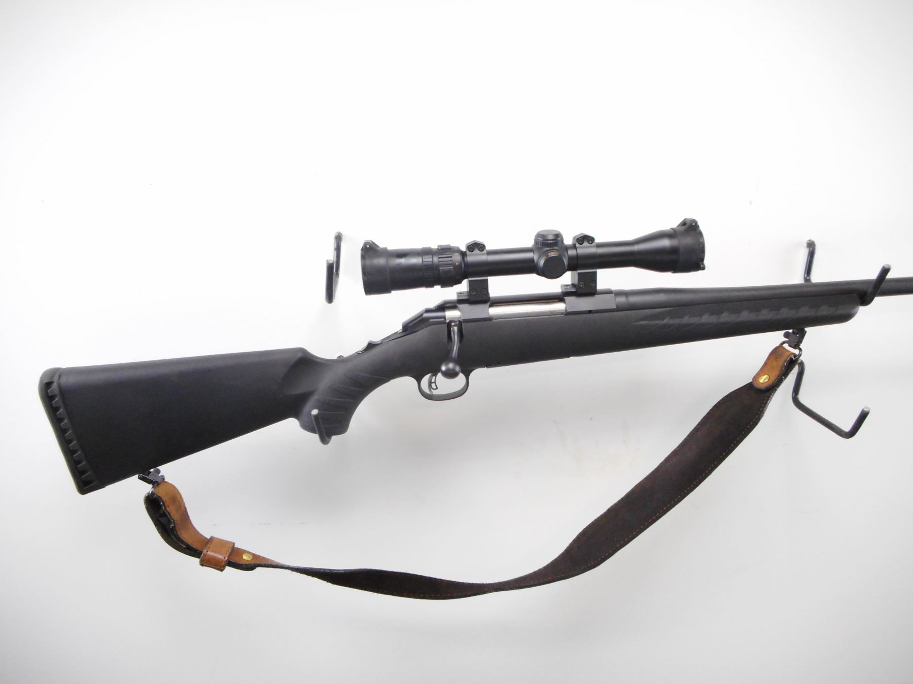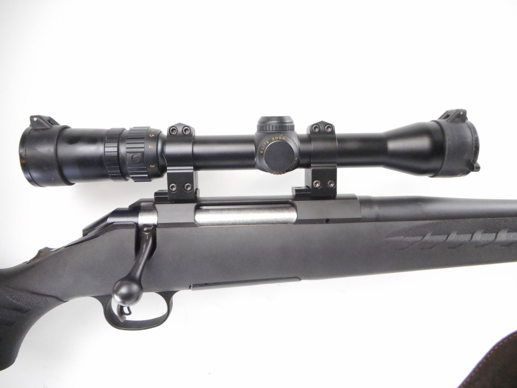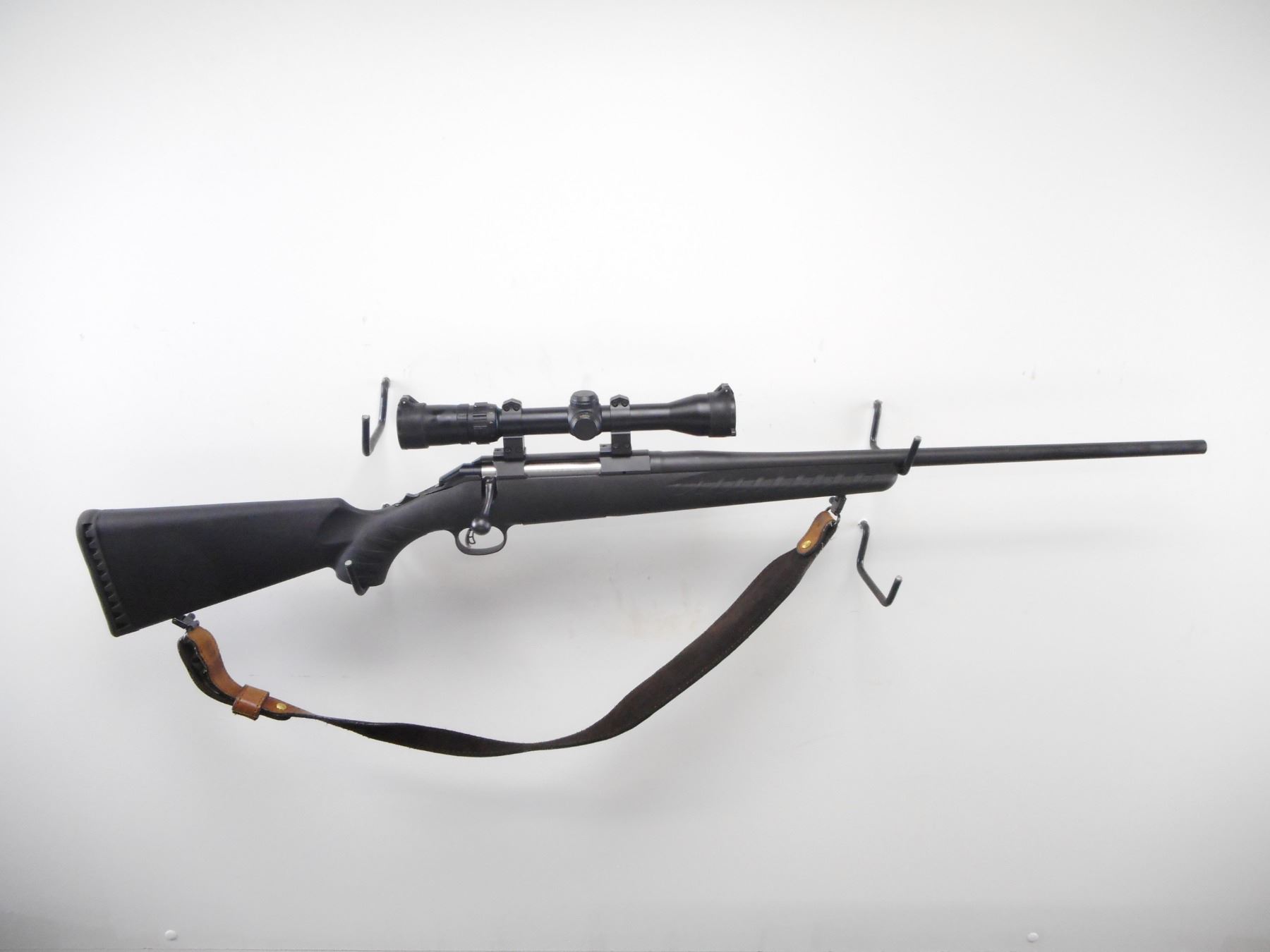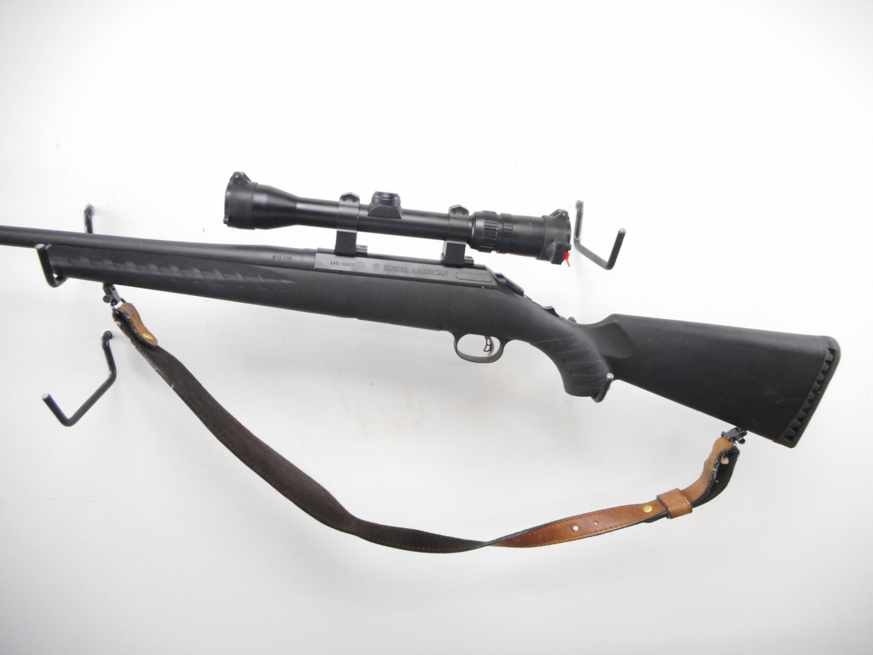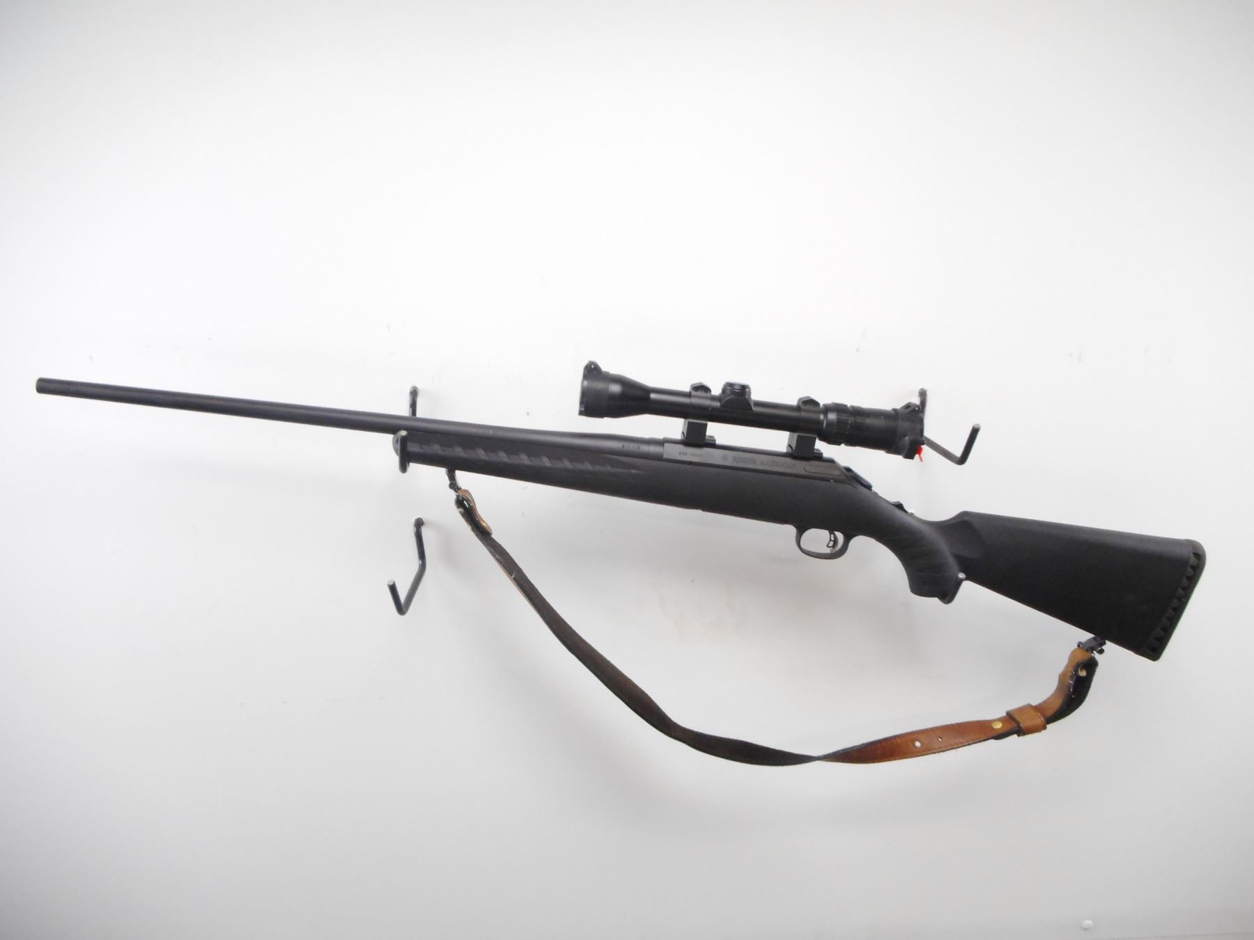 RUGER , MODEL: AMERICAN , CALIBER: 243 WIN , COMES WITH BOX. BORE IS EXCELLENT. ROUND BARREL NO SIGHTS. BUSHNELL 2-7 X 32 ELITE 3000 SCOPE. CLEAR OPTICS. DUPLEX CROSS HAIRS. MATTE FINISH ON METAL PARTS. ONE PIECE BLACK SYNTHETIC STOCK. TEXTURED FOREARM AND PISTOL GRIP. BLACK RUBBER RECOIL PAD. SLING SWIVELS WITH BROWN SLING. METAL SHOWS SLIGHT HANDLING MARKS. STOCKS SHOWS SLIGHT HANDLING MARKS. , ACTION: BOLT ACTION RIFLE , BARREL LENGTH: 22" , SERIAL # 690-53457 , CONDITION: 9/10 , CLASS: CANADIAN NON RESTRICTED CLASS