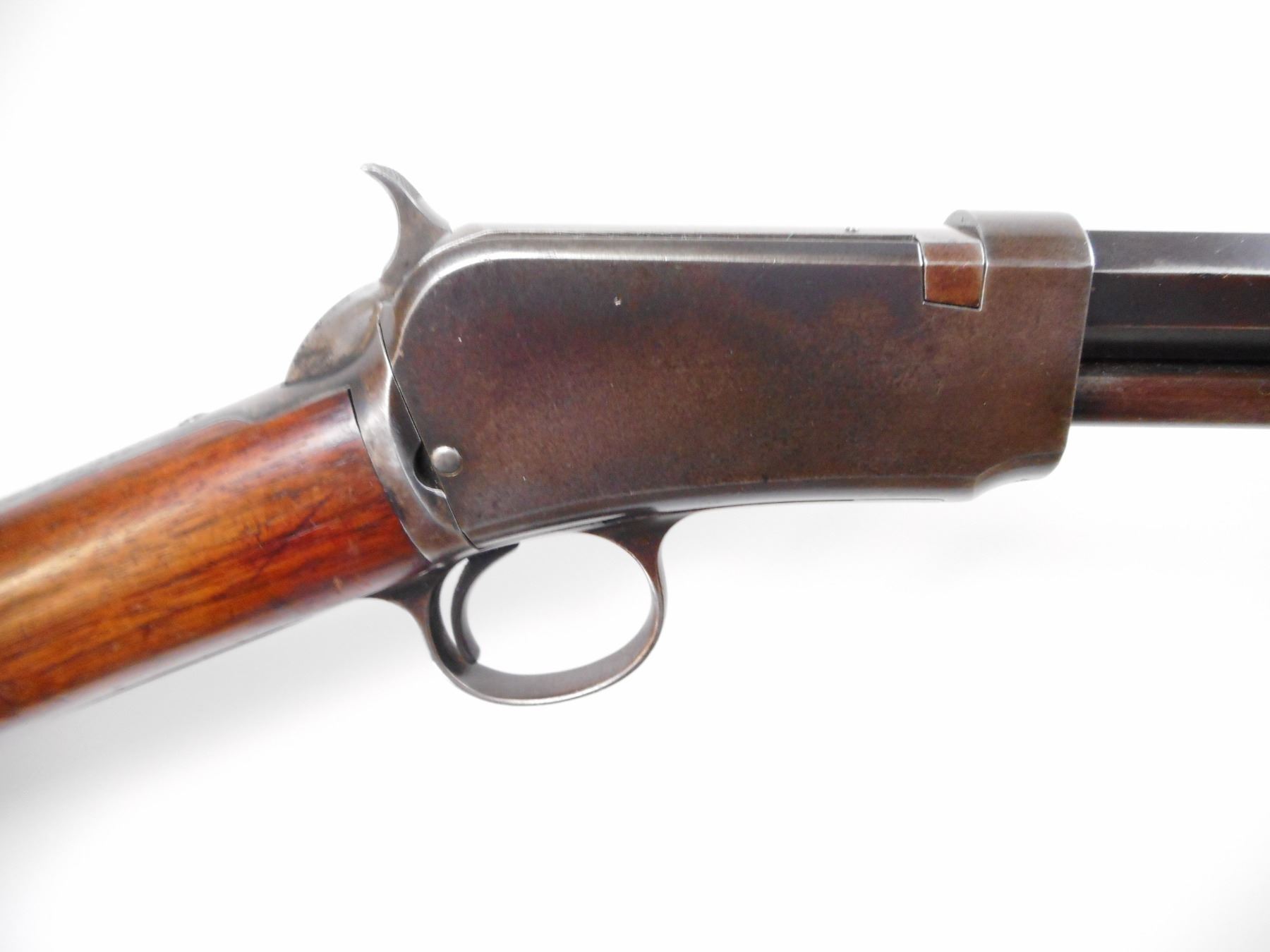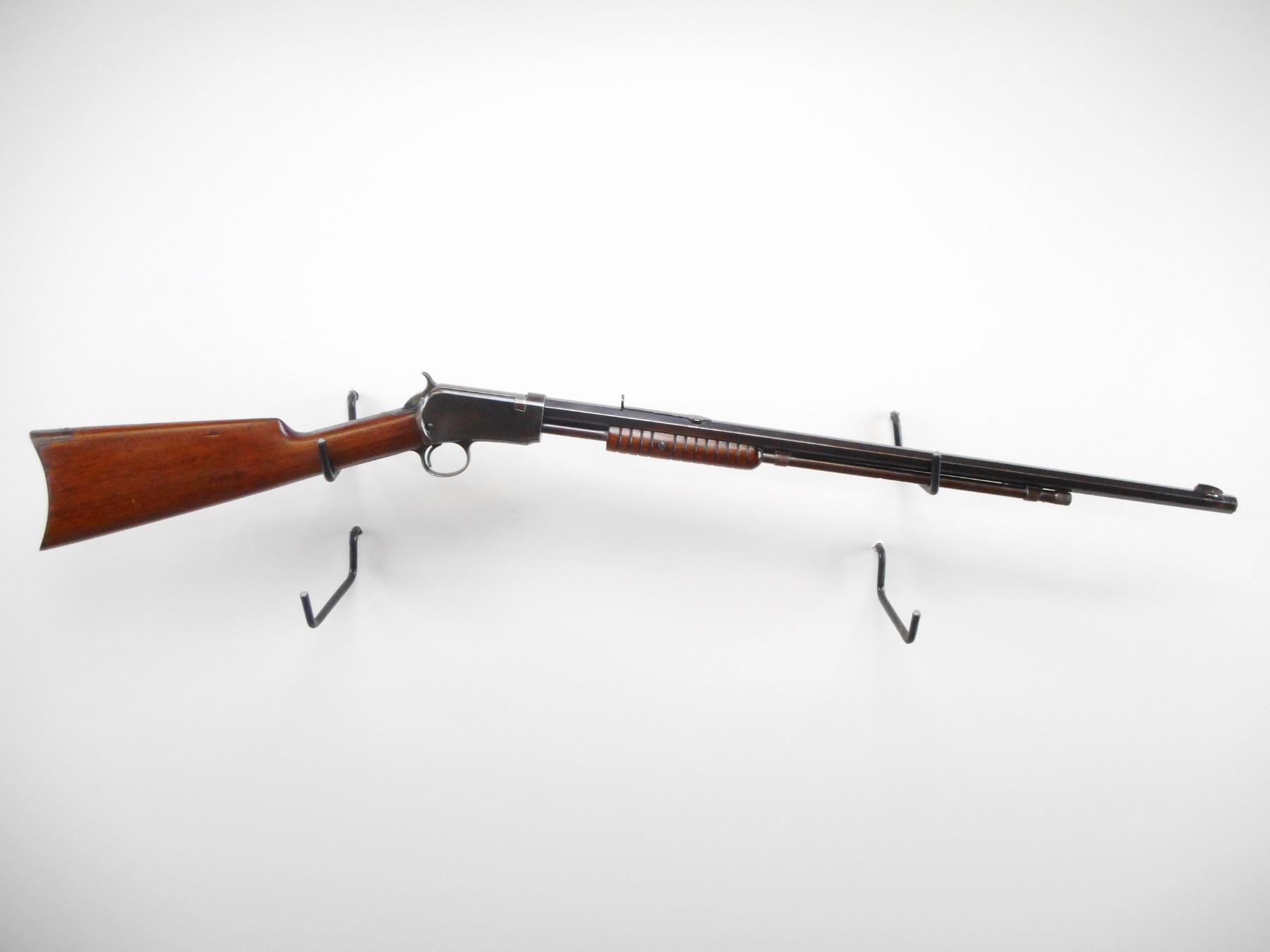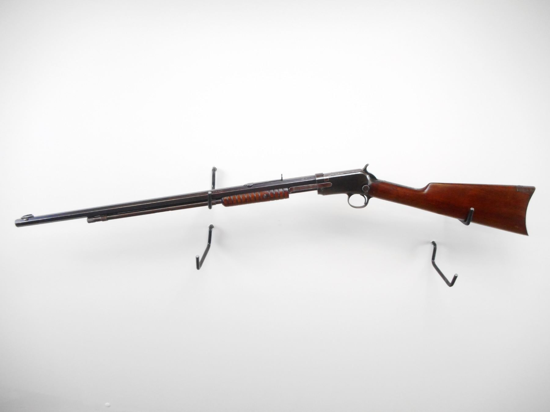 WINCHESTER , MODEL: 1890 , CALIBER: 22 WRF , BORE IS GOOD. MFG'D 1911. BLADE FRONT SIGHT. U NOTCH REAR SIGHT. MISSING ELEVATOR. OCTAGONAL BARREL. BLUED FINISH ON METAL PARTS. TANG DRILLED AND TAPPED FOR PEEP SIGHT. GROOVED WOOD FOREND. SMOOTH WOOD BUTT STOCK. CURVED STEEL BUTT PLATE. BLUEING SHOWS SOME WEAR AND HANDLING MARKS. STOCK SHOWS SMALL DINGS AND HANDLING MARKS , ACTION: PUMP ACTION RIFLE. , BARREL LENGTH: 24" , SERIAL # 466212A , CONDITION: 7/10 , CLASS: CANADIAN NON RESTRICTED CLASS