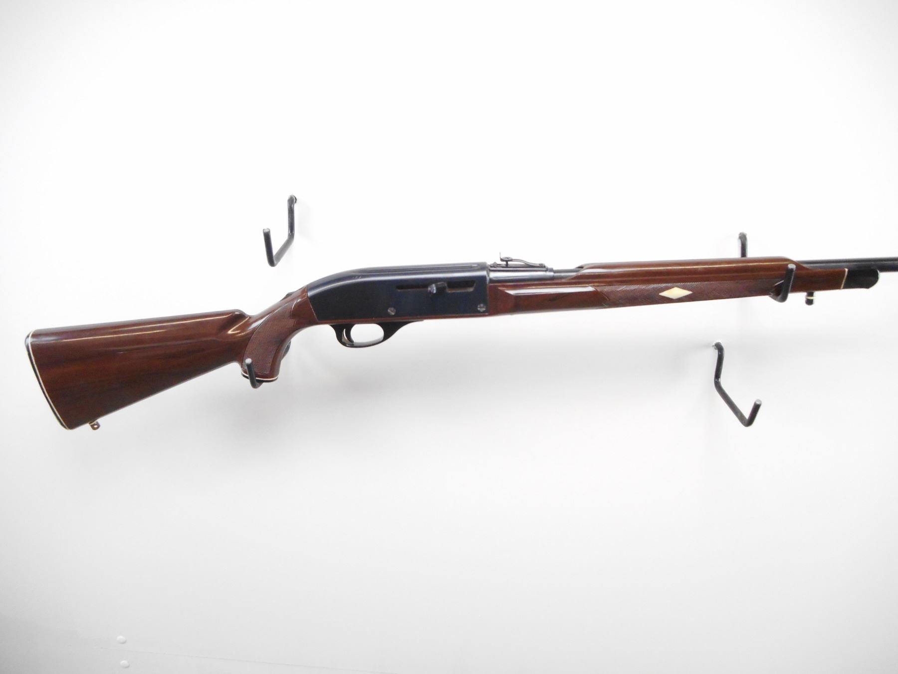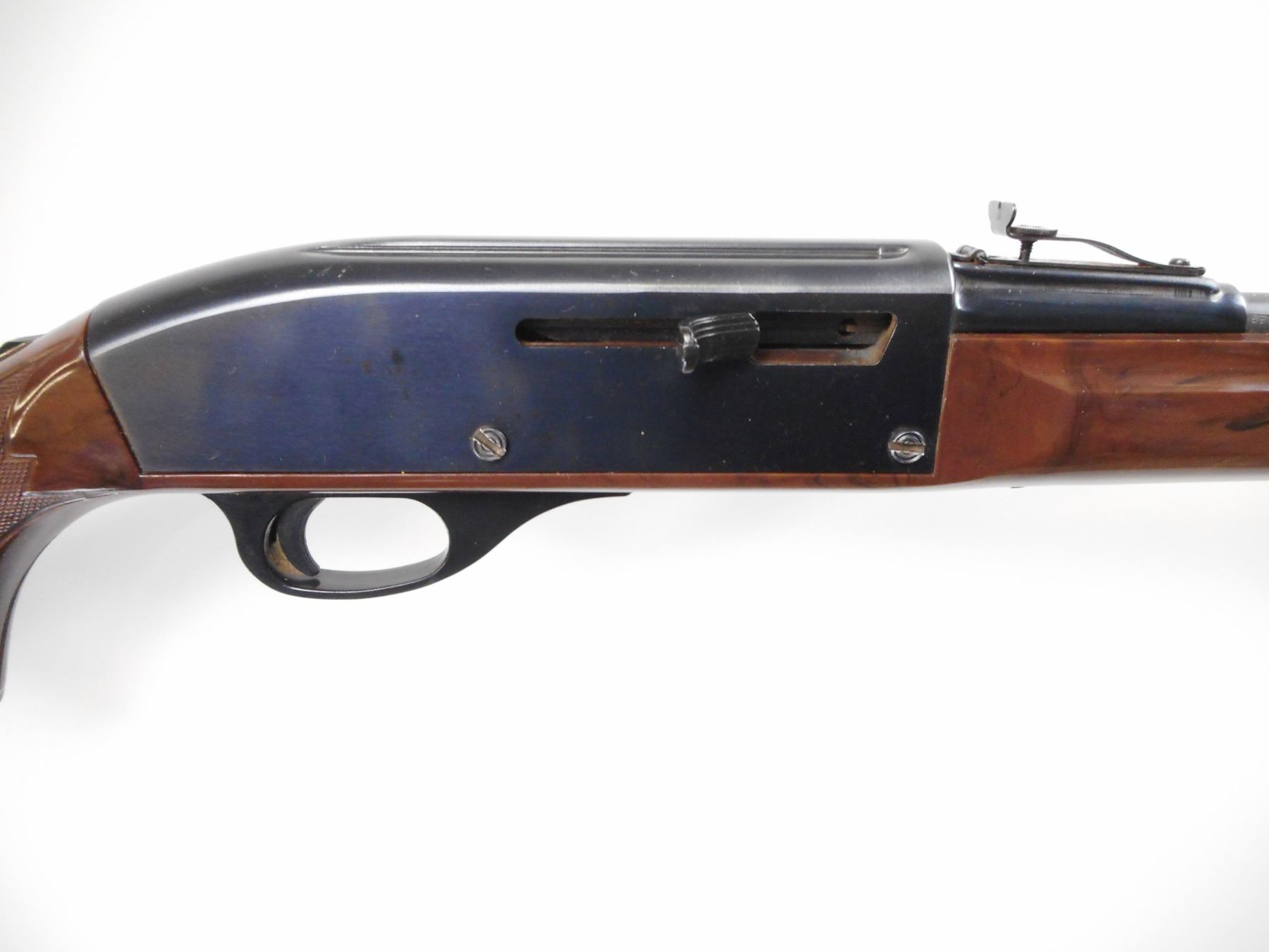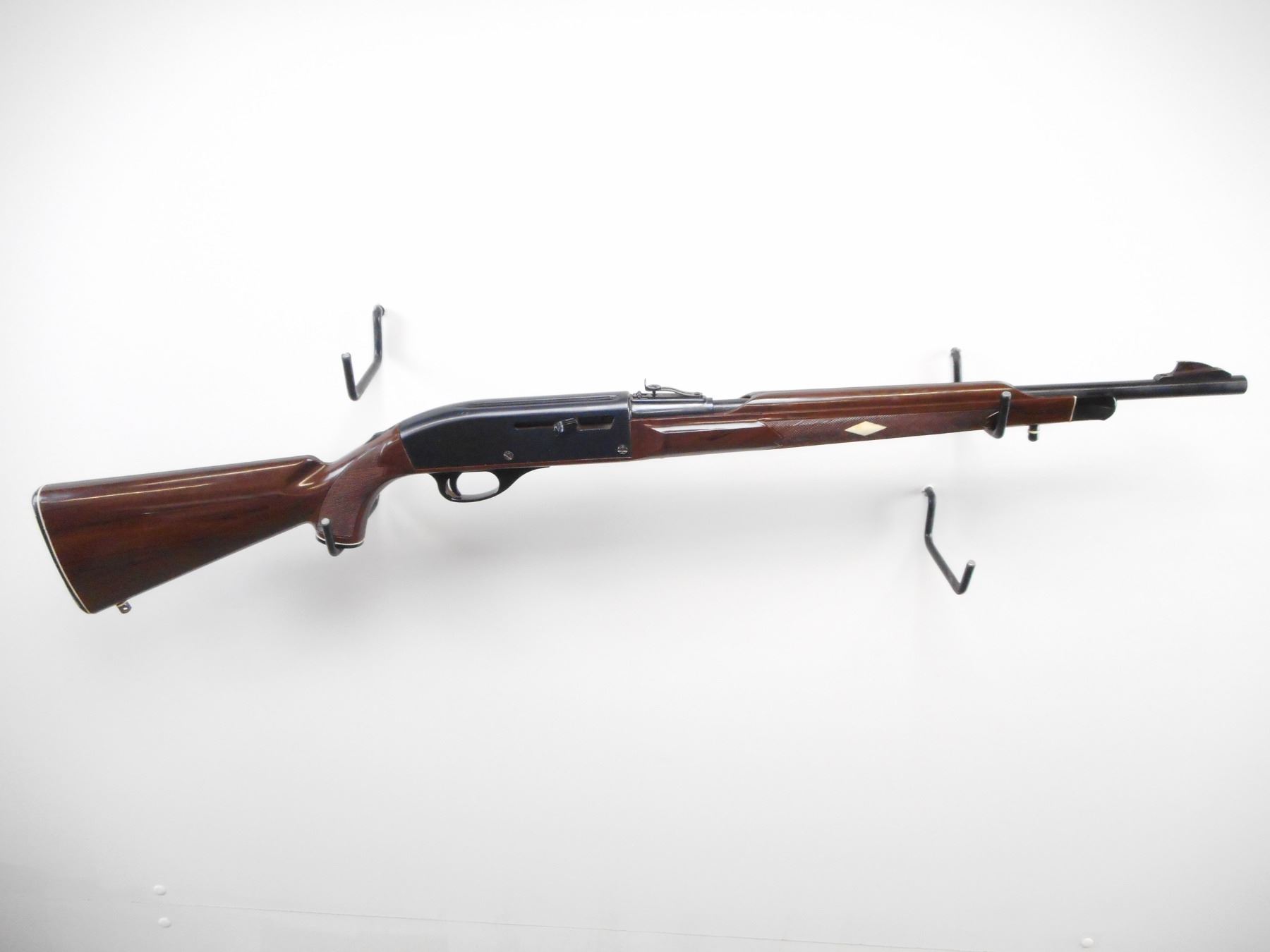 REMINGTON , MODEL: NYLON 66 MOHAWK BROWN , CALIBER: 22 LR , BORE IS VERY GOOD. BLADE FRONT SIGHT. U NOTCH ADJUSTABLE REAR SIGHT. RECEIVER GROOVED FOR SCOPE MOUNT. BROWN SYNTHETIC STOCK. WHITE DIAMOND INLAYS IN FOREND. GROOVED BLACK SYNTHETIC BUTT PLATE. GRIP CAP. FOREND CAP. SWIVEL STUDS. METAL SHOWS SOME HANDLING MARKS AND WEAR. STOCKS SHOWS SMALL SCUFF MARKS, SCRATCHS. , ACTION: SEMI AUTO RIFLE. , BARREL LENGTH: 19 1/2" , SERIAL # 2530568 , CONDITION: 7/10 , CLASS: CANADIAN NON RESTRICTED CLASS