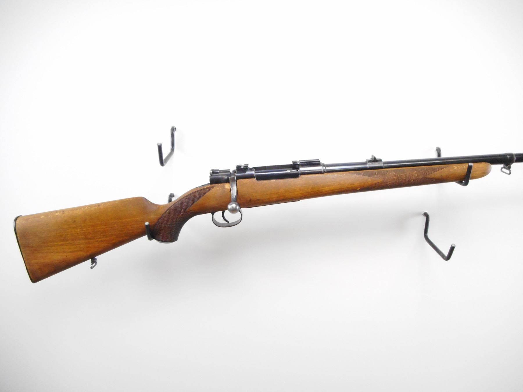 HUSQUVARNA , MODEL: MAUSER SPORTER , CALIBER: 8 X 57 , BORE IS VERY GOOD. BLADE FRONT SIGHT WITH RAMP. U NOTCH REAR SIGHT. RECEIVER DRILLED AND TAPPED WITH WEAVER BASES. ONE PIECE WOOD STOCK. CHECKERED FOREARM AND PISTOL GRIP. GROOVED BLACK POLYMER BUTT PLATE. GRIP CAP. SLING SWIVELS. STOCK CRACKED BEHIND TANG. BLUEING SHOWS SOME WEAR AND HANDLING MARKS. STOCK SHOWS SOME DINGS SMALL CHIP, HANDLING MARKS. , ACTION: BOLT ACTION RIFLE , BARREL LENGTH: 23 1/2" , SERIAL # 88650 , CONDITION: 7/10 , CLASS: CANADIAN NON RESTRICTED CLASS
