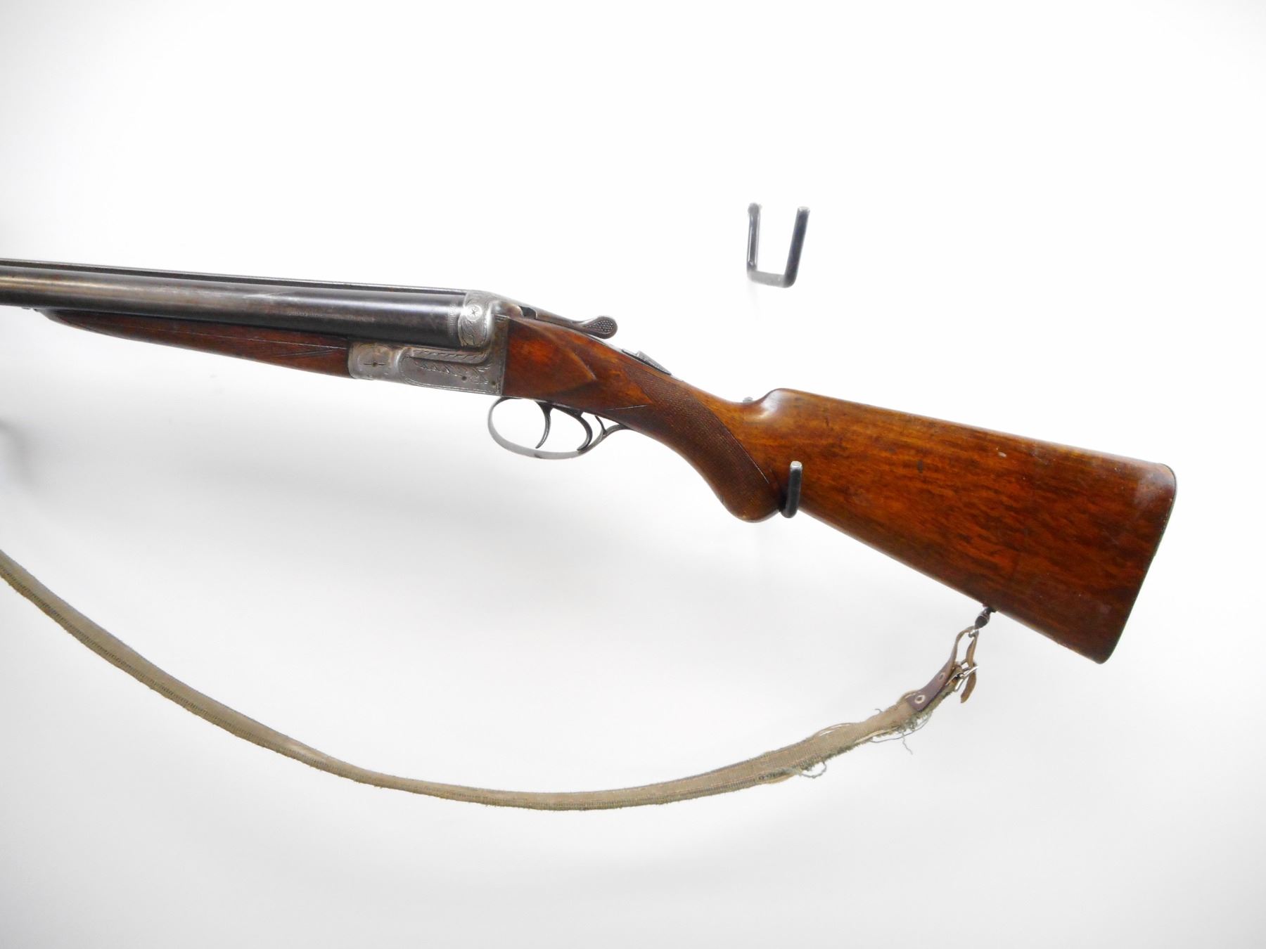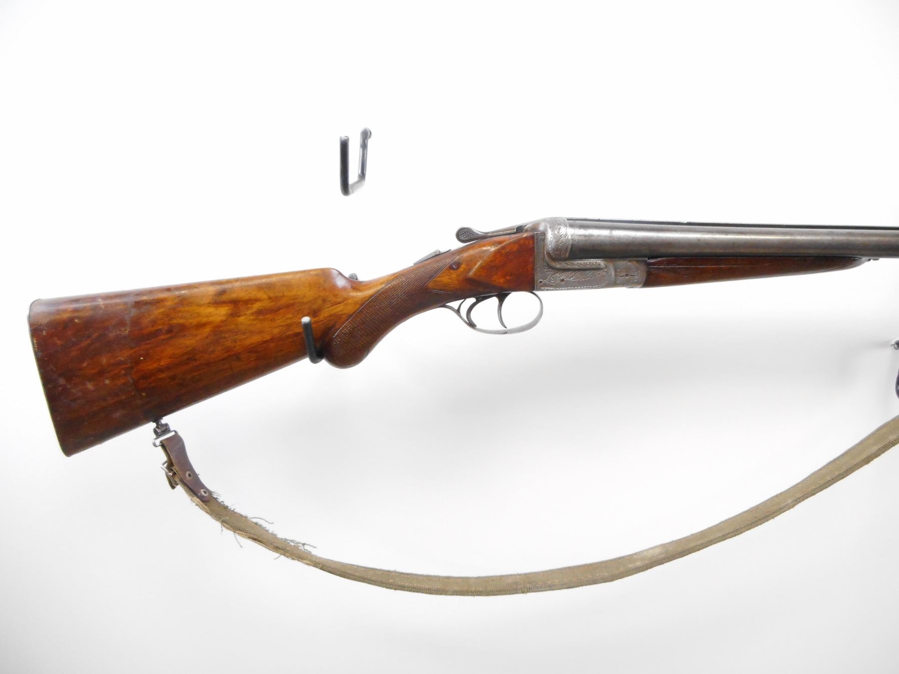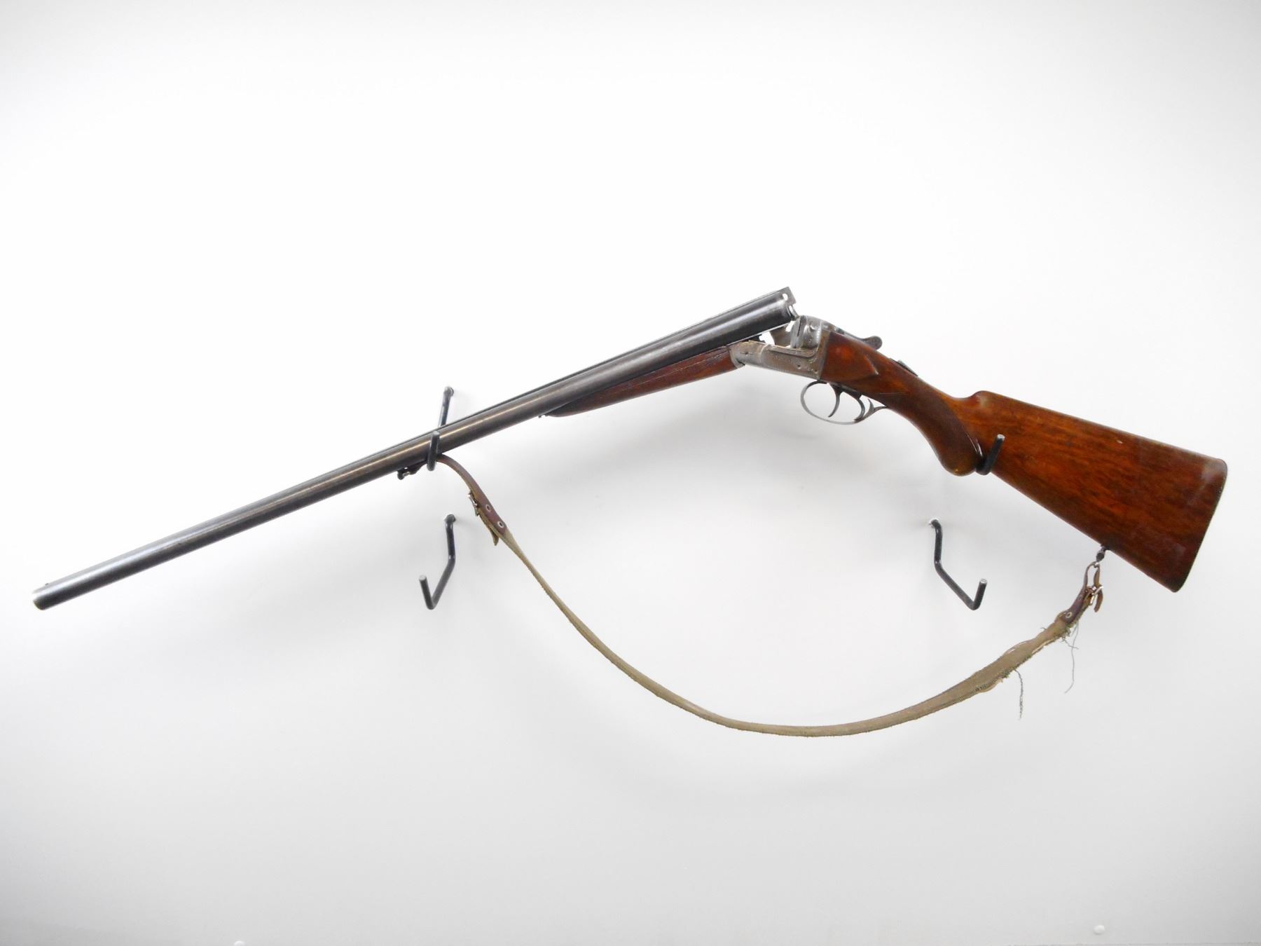 ARMAF LIEGEOISE , MODEL: SXS , CALIBER: 12 GA X 2 3/4" , FULL AND FULL CHOKE. BORE IS GOOD, LIGHT PITTING. BARRELS RING. BRASS BEAD. SERRATED RIB BETWEEN BARRELS. DING IN RIGHT HAND BARREL. SILVER RECEIVER. EXTRACTOR. AUTOMATIC SAFETY. DOUBLE TRIGGERS. TWO PIECE WOOD STOCKS. CHECKERED FOREARM AND PISTOL GRIP.S SMOOTH STEEL BUTT PLATE. SLING SWIVELS WITH LEATHER SLING. BLUEING SHOWS WEAR AND HANDLING MARKS. STOCKS SHOWS DINGS AND HANDLING MARKS. , ACTION: HINGED SXS SHOTGUN , BARREL LENGTH: 28" , SERIAL # 63560 , CONDITION: 6/10 , CLASS: CANADIAN NON RESTRICTED CLASS