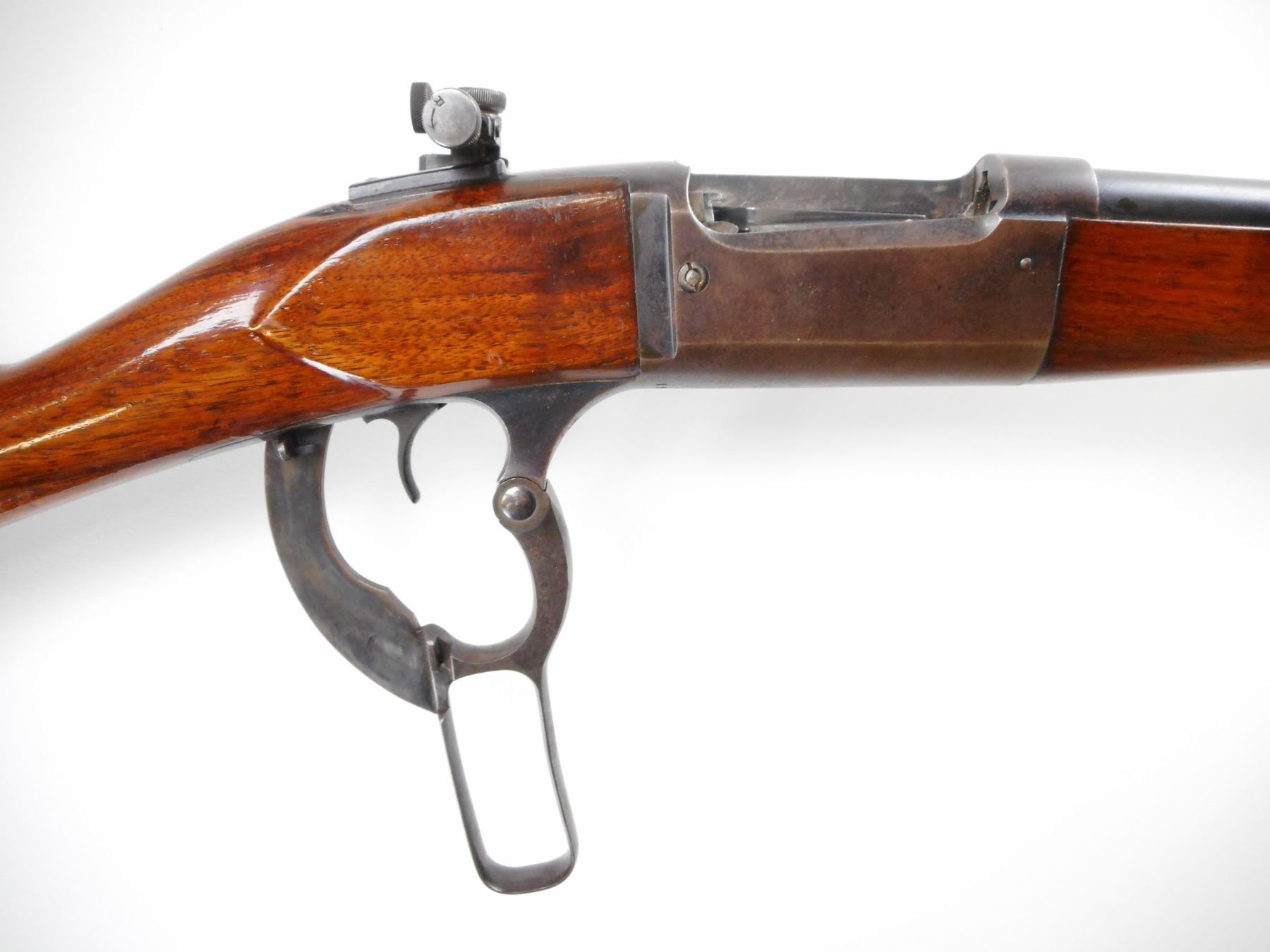 SAVAGE , MODEL: 1899 , CALIBER: 32-40 , BORE IS GOOD, WORN PITTED. BLADE FRONT SIGHT. REAR SIGHT REMOVED, SLOT BLANK INSTALLED. . RECEIVER DRILLED AND TAPPED WITH RED FIELD PEEP. SIGHT. BLUED FINISH ON METAL PARTS. TWO PIECE WOOD STOCK. FOREARM AND STRAIGHT GRIP. CURVED STEEL BUTT PLATE. BLUEING SHOWS LIGHT RUST SPECKLES AND WEAR. STOCKS SHOWS HANDLING MARKS, DINGS AND SCRATCHES. , ACTION: LEVER ACTION RIFLE , BARREL LENGTH: 26" , SERIAL # 118127 , CONDITION: 6/10 , CLASS: CANADIAN NON RESTRICTED CLASS