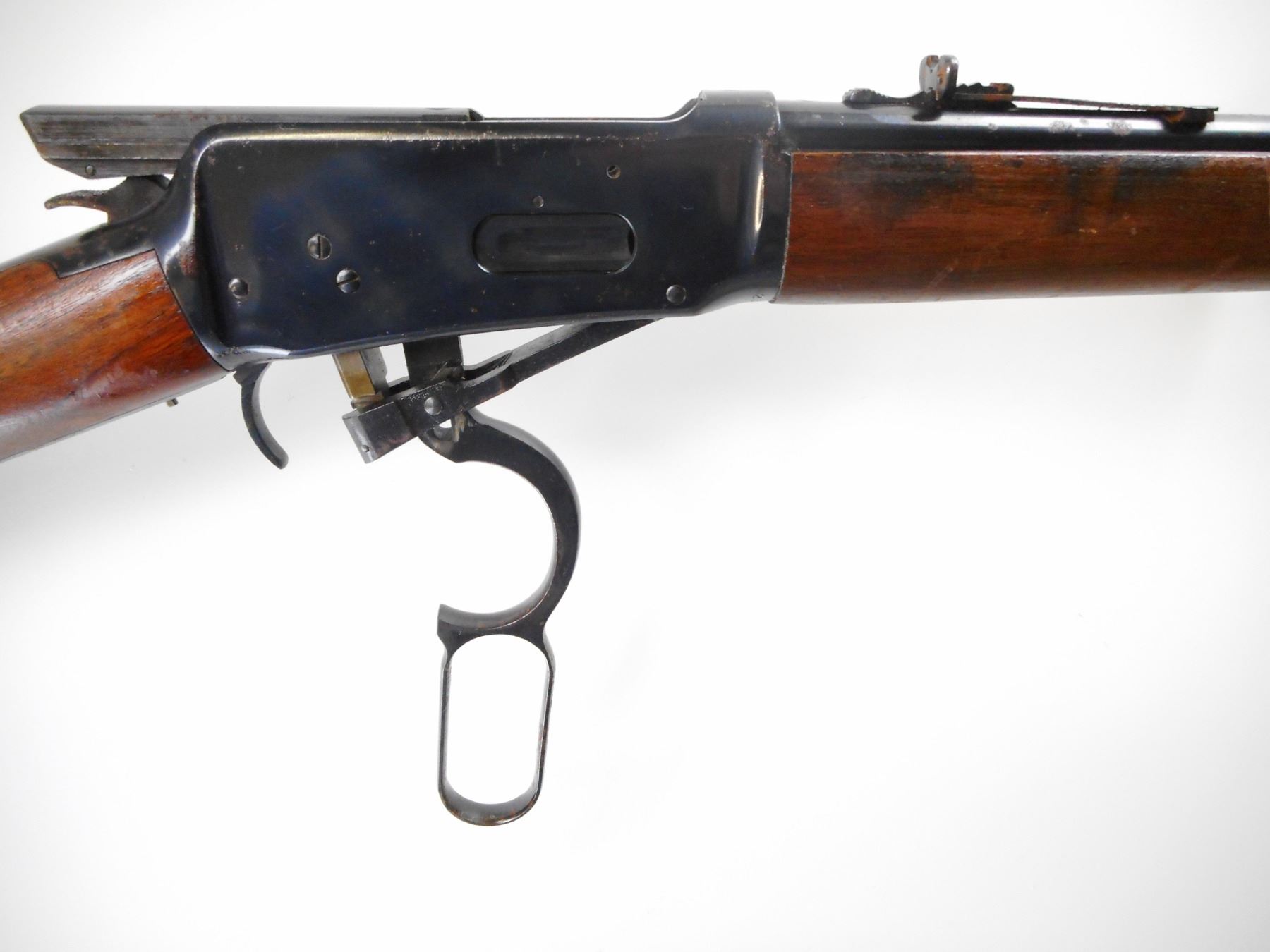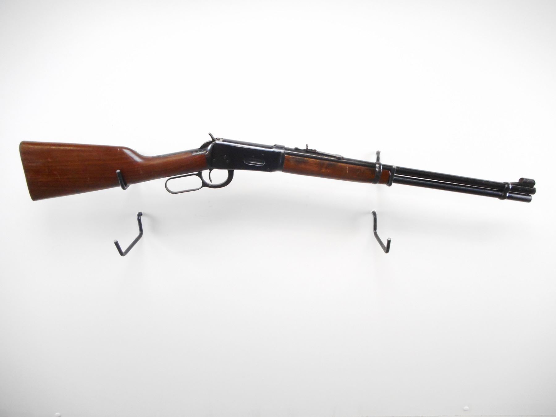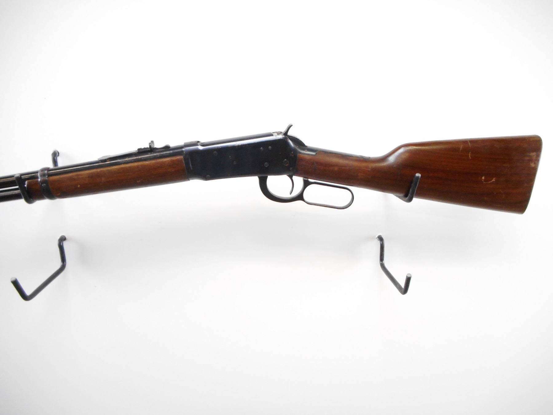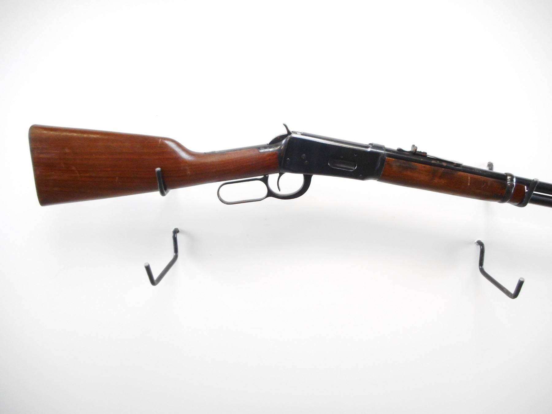 WINCHESTER , MODEL: 94 PRE 64 , CALIBER: 30-30 WIN , BORE IS VERY GOOD. MFG'D 1958. BLADE FRONT SIGHT WITH RAMP AND HOOD. ADJUSTABLE U NOTCH REAR SIGHT. TWO PIECE SMOOTH WOOD STOCKS. CHECKERED STEEL BUTT PLATE. RECEIVER DRILLED AND TAPPED FOR PEEP SIGHT. FULL LENGTH MAG TUBE. BLUEING SHOWS SOME WEAR AND MARKS, LIGHT RUST SPECKLING. . STOCKS SHOWS DINGS SCRATCHES AND HANDLING MARKS , ACTION: LEVER ACTION RIFLE , BARREL LENGTH: 20" , SERIAL # 2326376 , CONDITION: 6/10 , CLASS: CANADIAN NON RESTRICTED CLASS