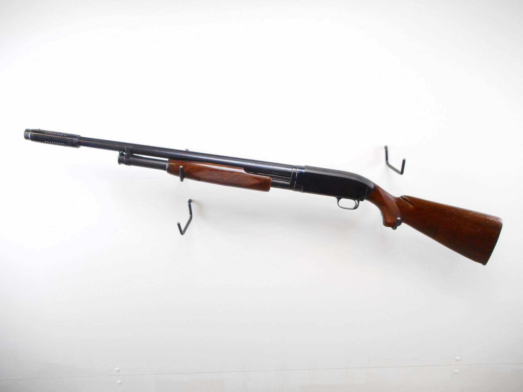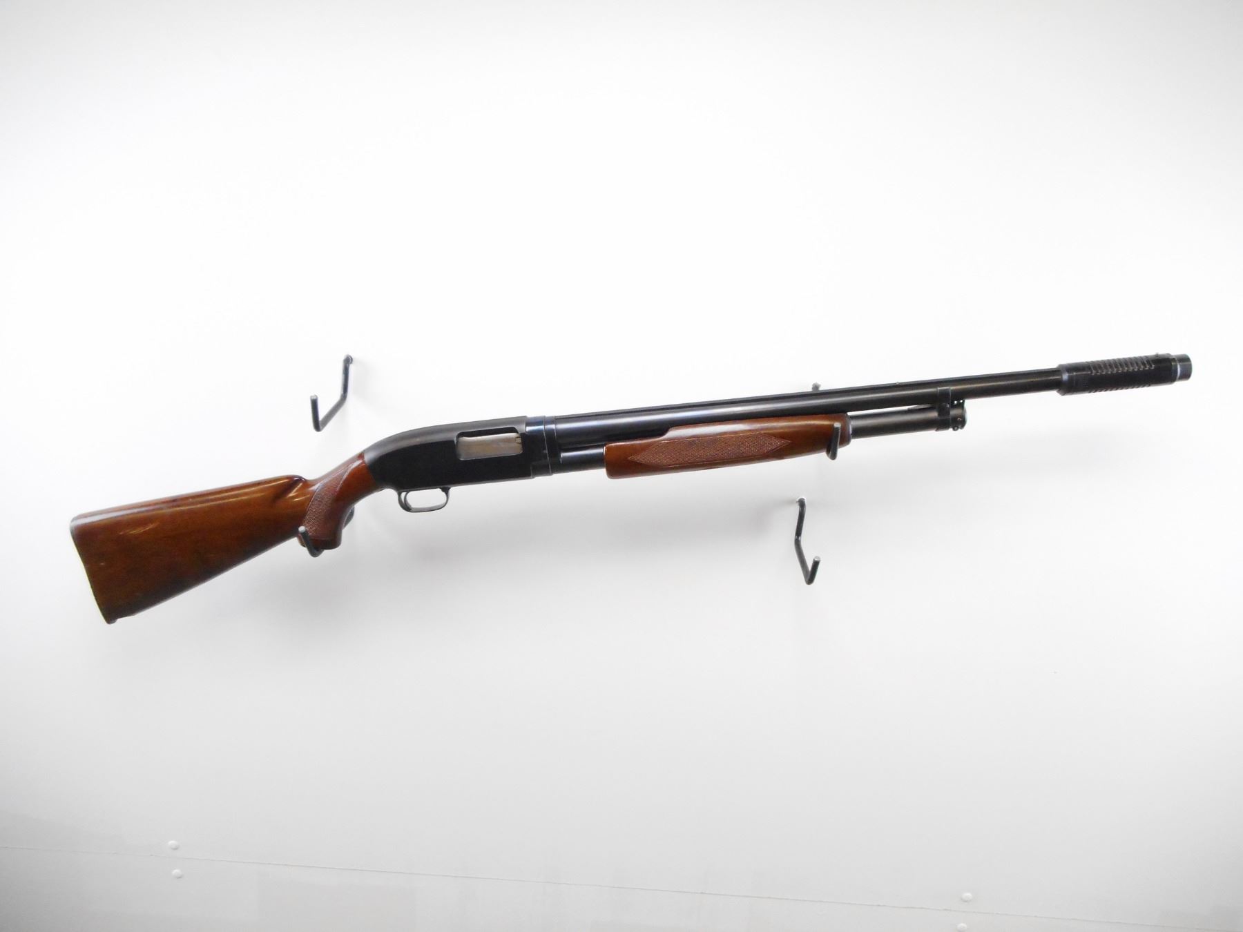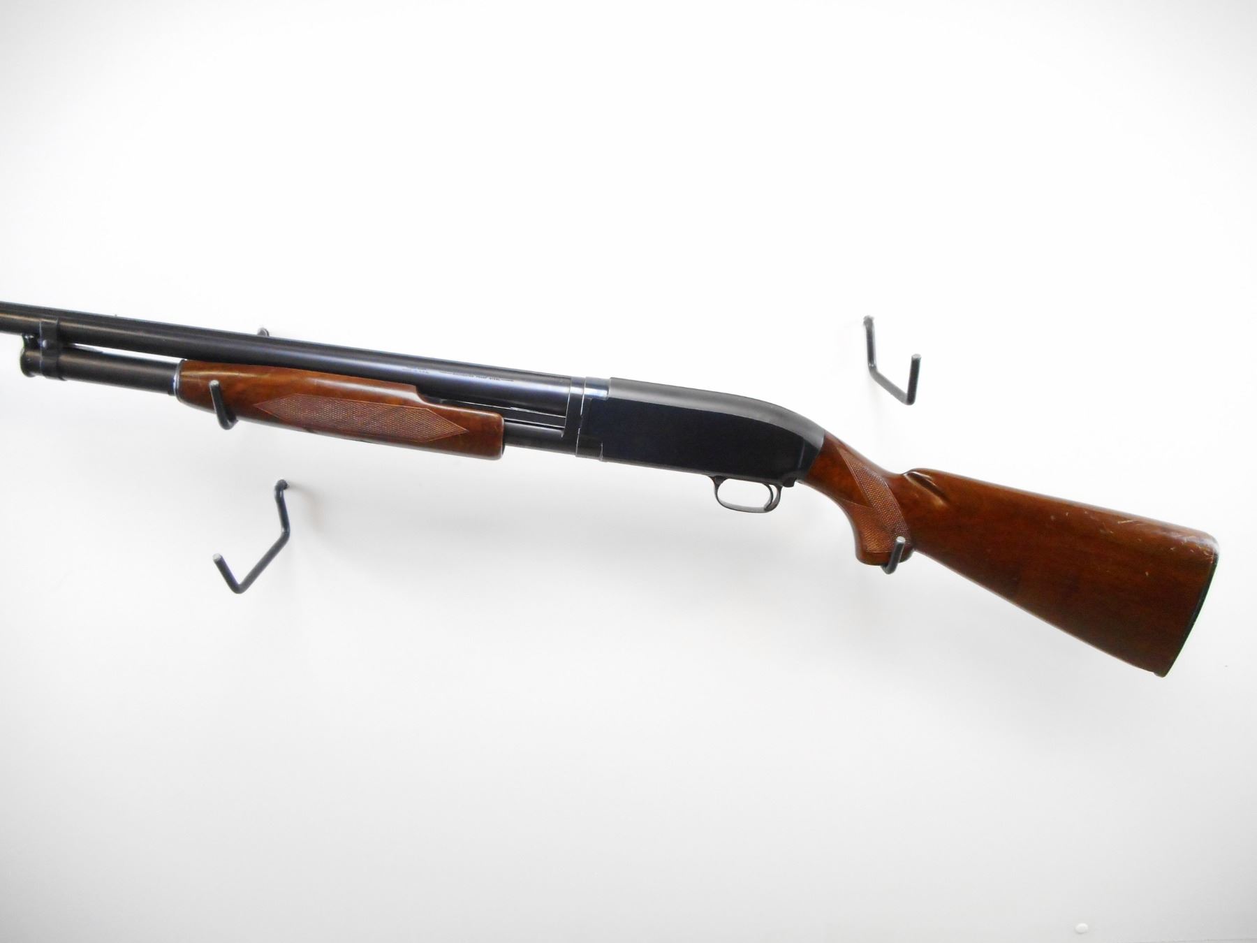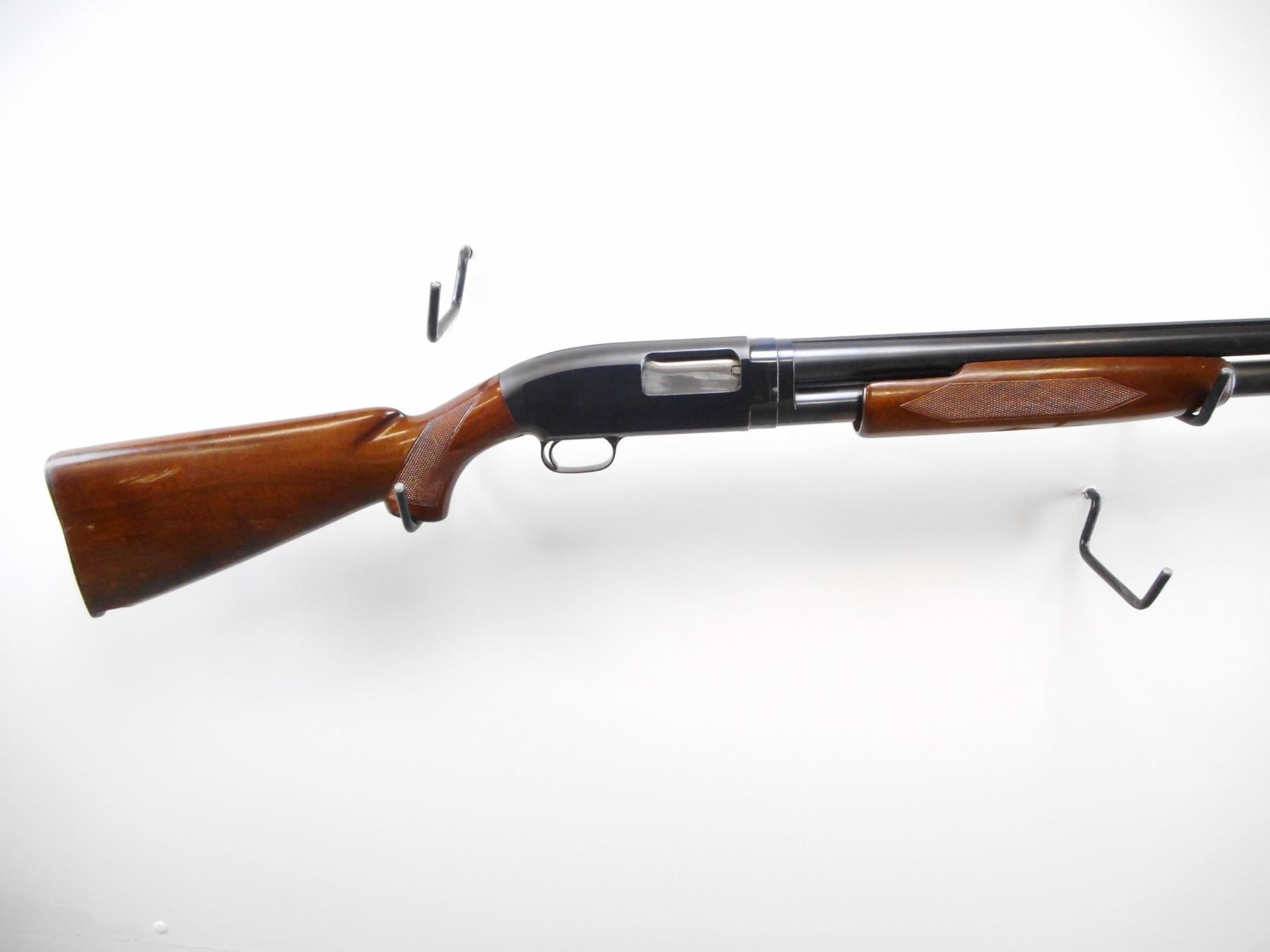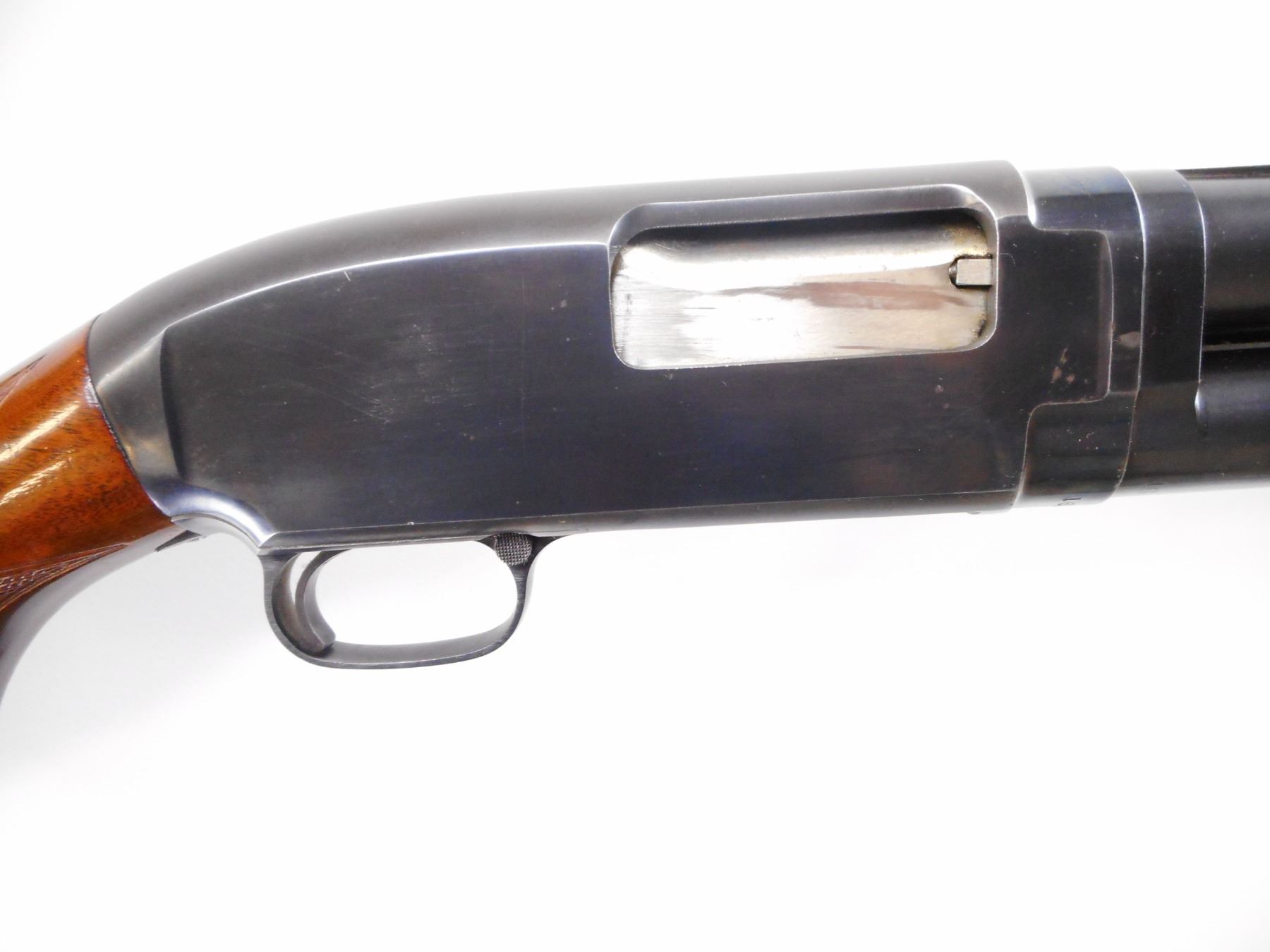 WINCHESTER , MODEL: MODEL 12 SKEET , CALIBER: 12 GA XZ 2 3/4" , CUTTS 12 GA SPREADER CHOKE. BORE IS EXCELLENT. BRASS FRONT AND MID RIB BEAD. SOLID RIB. BLUED FINISH ON METAL PARTS. BARREL MARKED WS-1. CHECKERED 9 1/2 FOREND. CHECKERED PISTOL GRIP WOOD STOCK. CHIPPED AT TOE. CHECKERED BLACK POLYMER BUTT PLATE. WINCHESTER GRIP CAP. BLUEING SHOWS SOME HANDLING MARK AND WEAR. STOCK SHOWS SOME DING AND SCRATCHES. , ACTION: PUMP ACTION SHOTGUN , BARREL LENGTH: 25 1/2" , SERIAL # 1670825 , CONDITION: 7/10 , CLASS: CANADIAN NON RESTRICTED CLASS