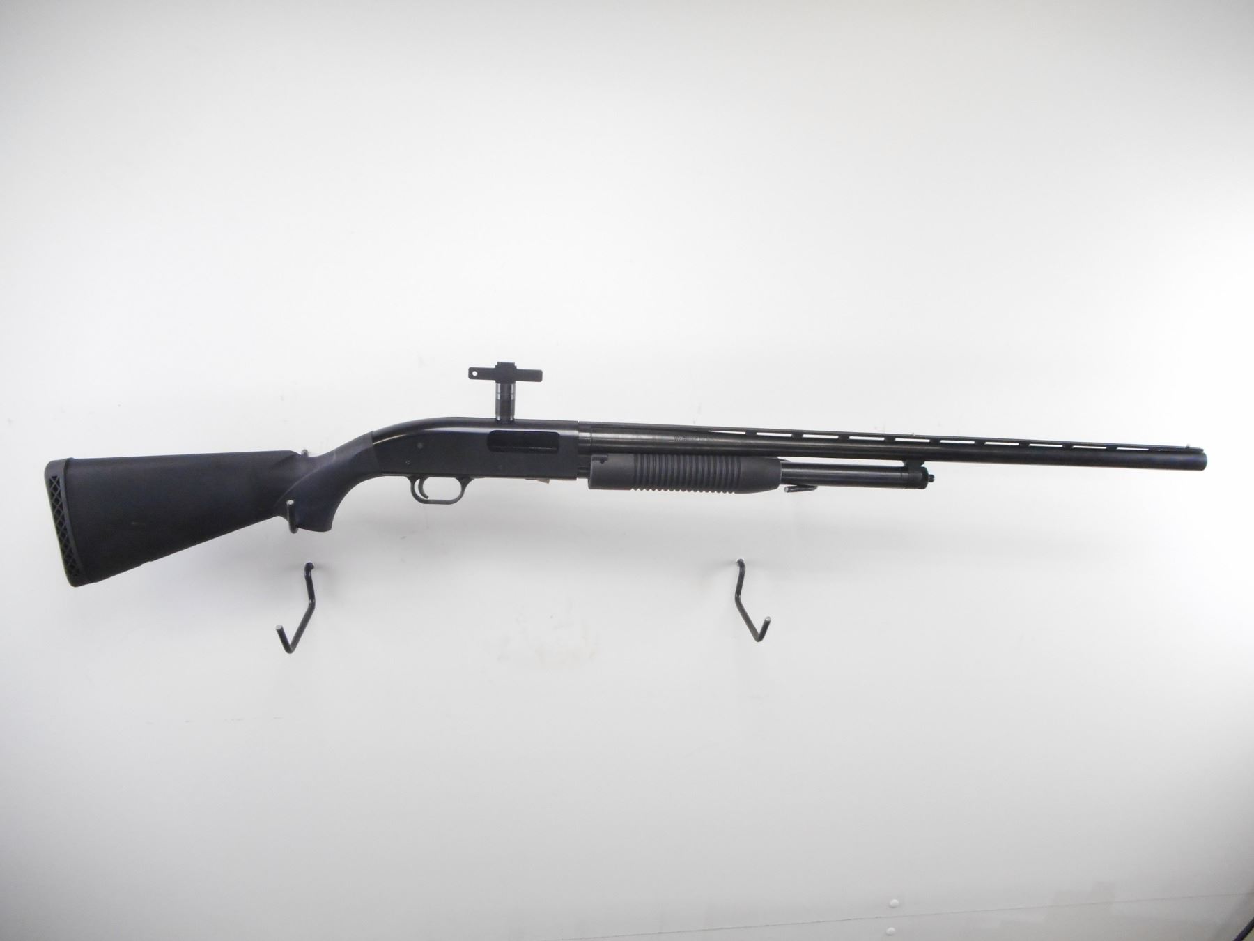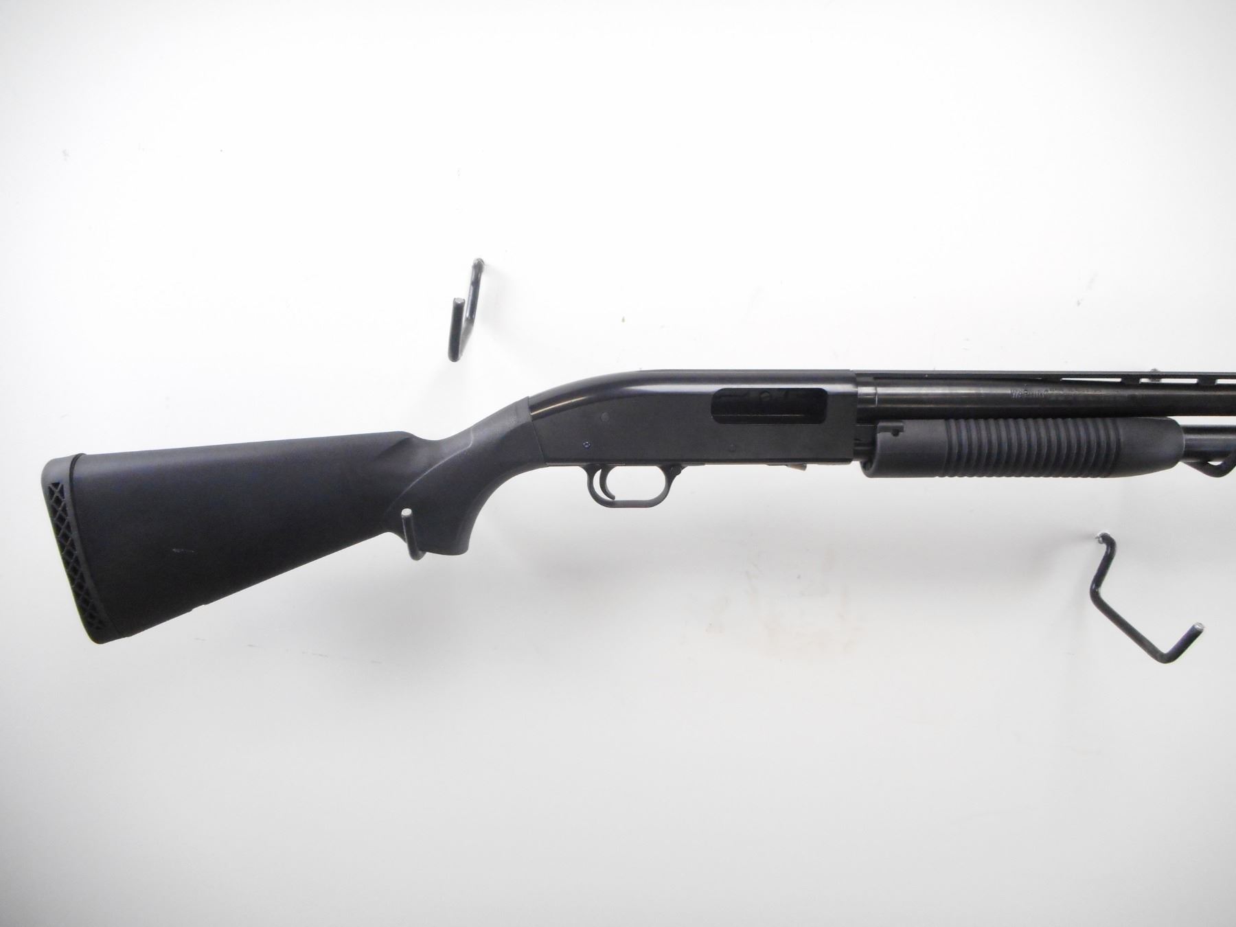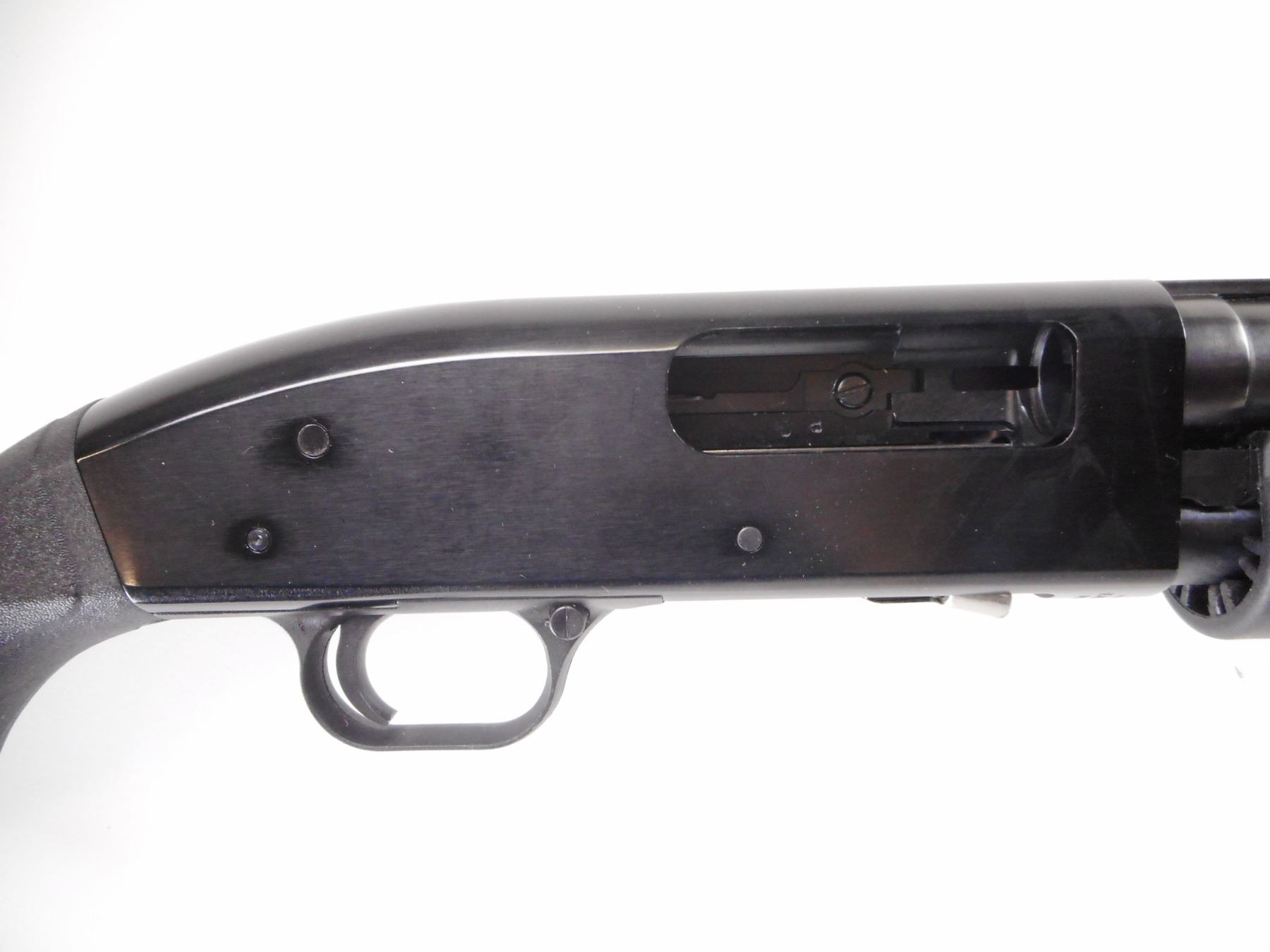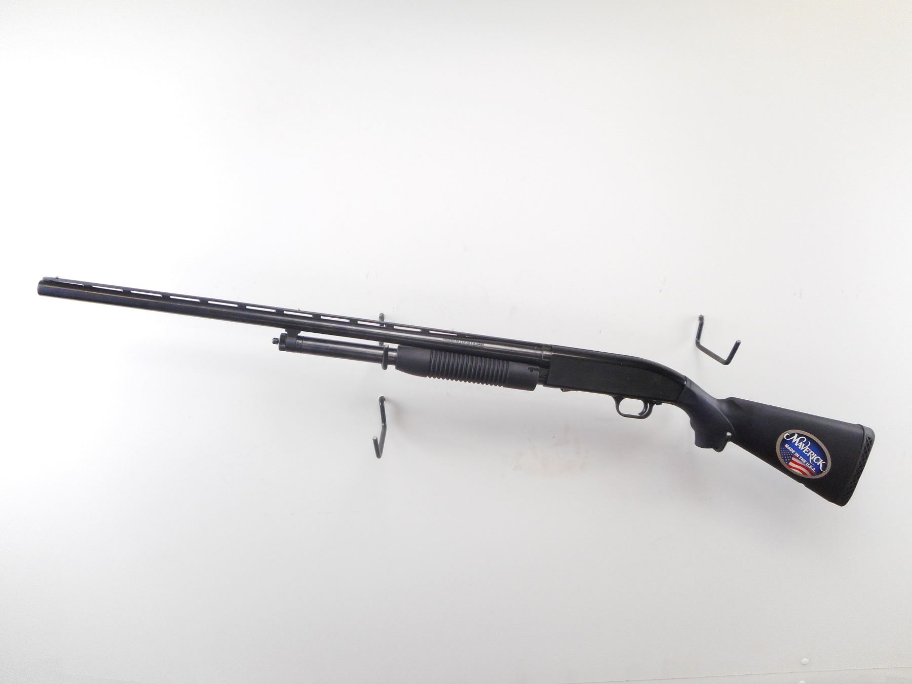 MAVERICK , MODEL: 88 , CALIBER: 12 GA X 3" , REMOVEABLE CHOKE WITH WRENCH. BORE IS EXCELLENT. WHITE FRONT AND BRASS MID RIB BEAD. BLUED FINISH ON BARREL AND MAG TUBE. BLACK FINISH ON RECEIVER. TWO PIECE BLACK SYNTEHTIC STOCKS. BLACK VENTED RUBBER RECOIL PAD. FRONT STUD ONLY. METAL SHOWS SLIGHT HANDLING MARKS. STOCK SHOWS SLIGHT HANDLING MARKS , ACTION: PUMP ACTION SHOTGUN , BARREL LENGTH: 28" , SERIAL # MV12955V , CONDITION: 9/10 , CLASS: CANADIAN NON RESTRICTED CLASS