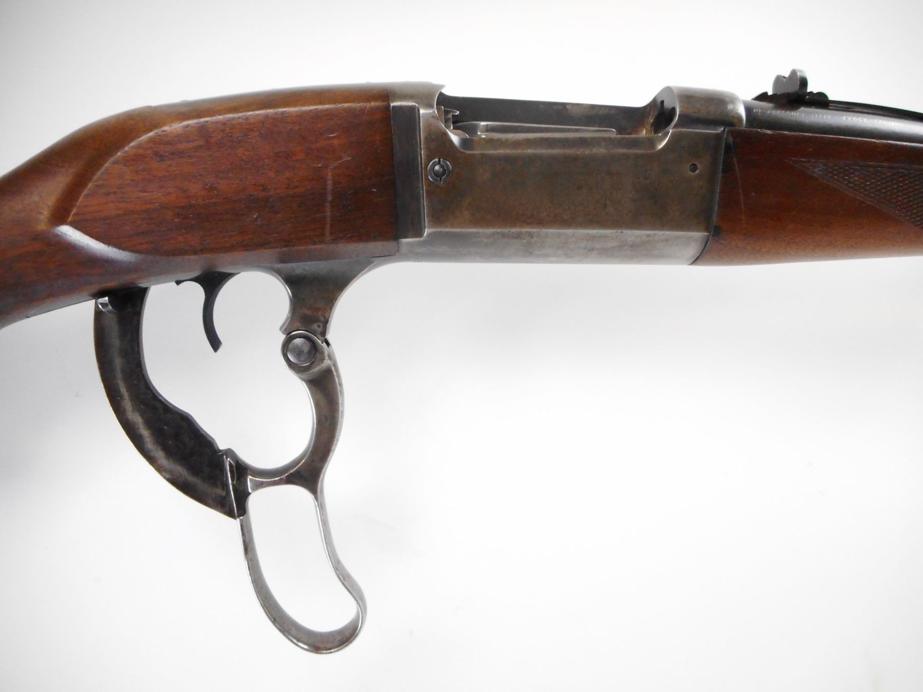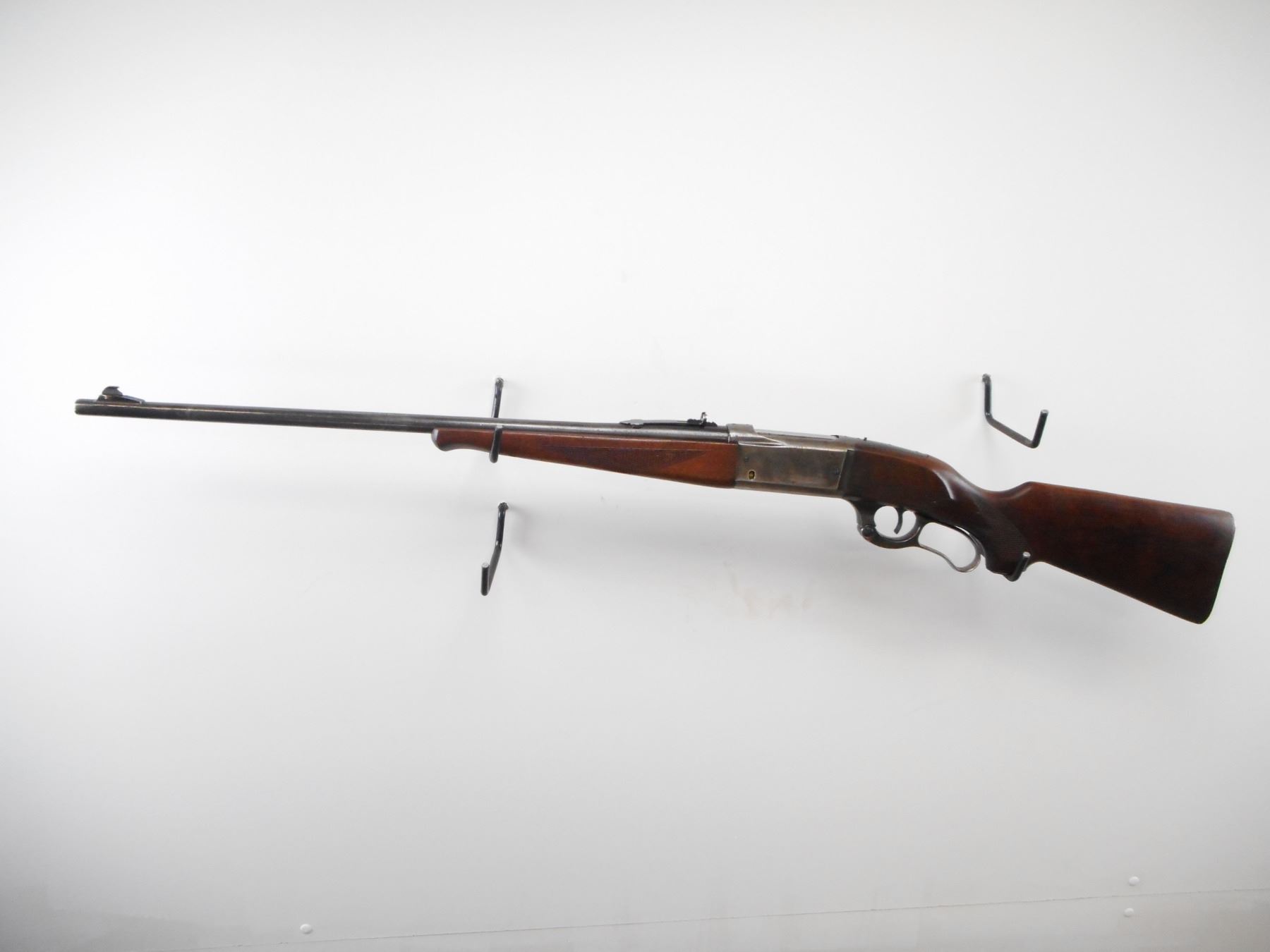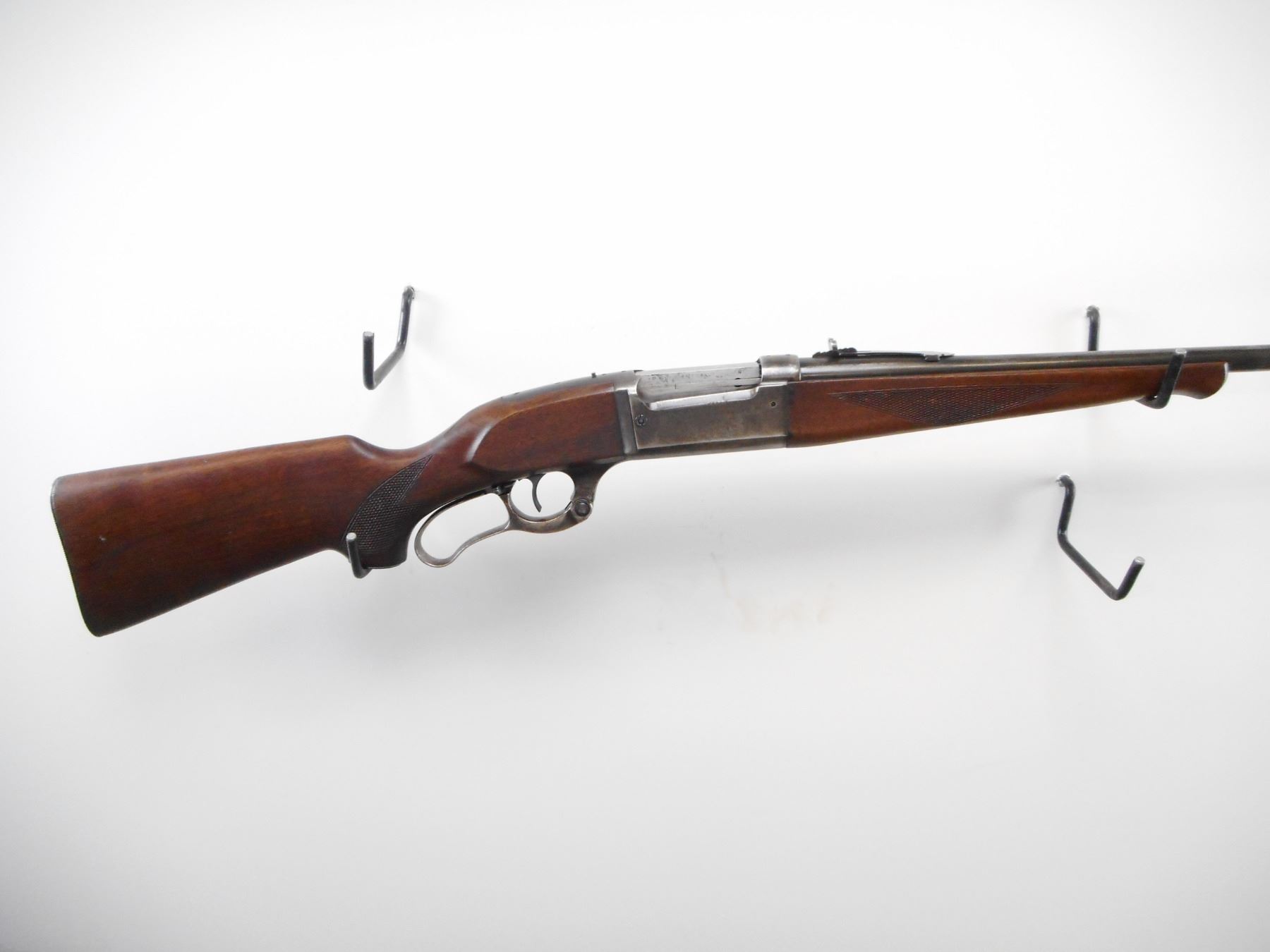 SAVAGE , MODEL: M99 , CALIBER: 300 SAVAGE , BORE IS GOOD. BLADE FRONT SIGHT WITH RAIL. ADJUSTABLE U NOTCH REAR SIGHT. RECEIVER DRILLED AND TAPPED FOR SCOPE AND PEEP SIGHT. BLUED FINISH ON METAL PARTS. TWO PIECE WOOD STOCKS. CHECKERED FOREARM AND PISTOL GRIP. GROOVED STEEL BUTT PLATE. GRIP CAP. BLUEING FADING SILVER/GREY STOCKS SHOWS HANDLING MARKS, DINGS AND SCRATCHES. , ACTION: LEVER ACTION RIFLE , BARREL LENGTH: 23 3/4" , SERIAL # 749787 , CONDITION: 6/10 , CLASS: CANADIAN NON RESTRICTED CLASS