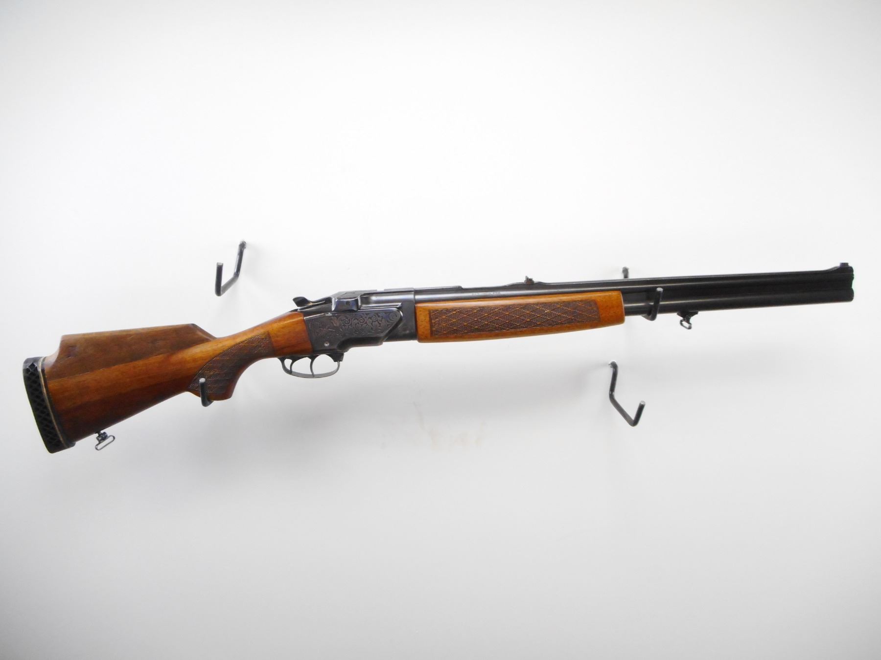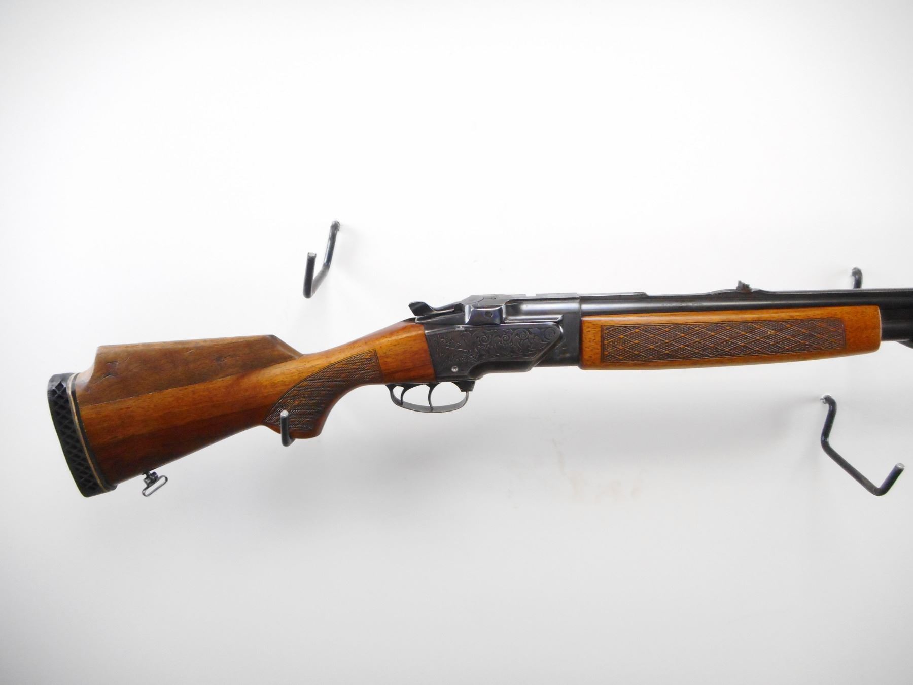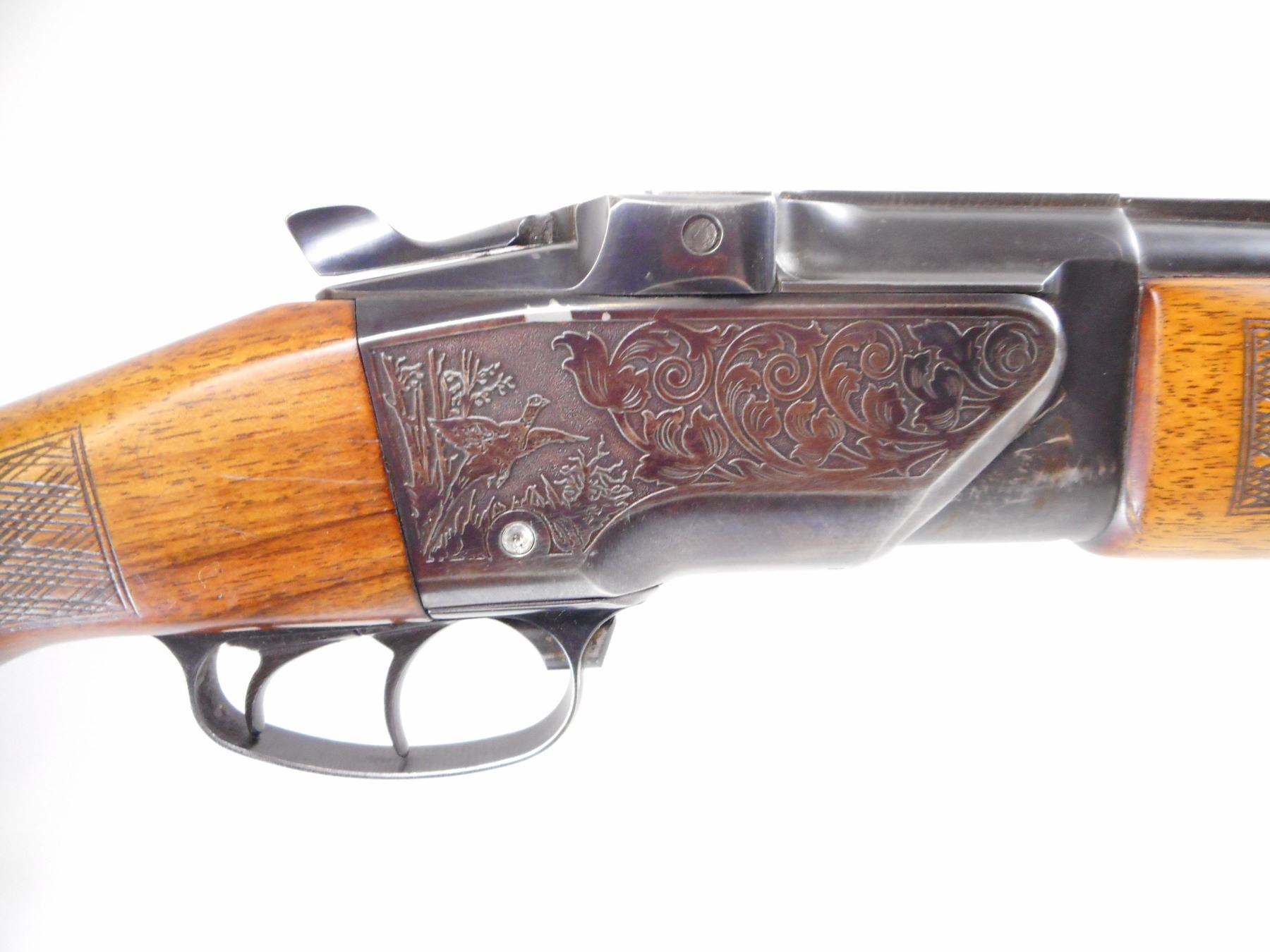 BRNO , MODEL: ZH305 , CALIBER: 12 GA 2 3/4"/22 SAV HP , FULL CHOKE. BORES ARE VERY GOOD. BLADE FRONT SIGHT. U NOTCH REAR SIGHT. RIB MODIFIED BEHIND SIGHT. INTEGRAL FACTORY SCOPE MOUNT. BLUED FINISH ON METAL PARTS. ENGRAVED GAM SCENE ON RECEIVER. DOUBLE TRIGGERS. TWO PIECE WOOD STOCKS. SLING SWIVELS CHECKERED FOREARM AND PISTOL GRIPS . CHEEK REST. ADD ON RAISED CONE. BLACK VENTED RUBBER RECOIL PAD. BLUEING SHOWS HANDLING MARKS AND WEAR. STOCK SHOWS HANDLING MARKS AND WEAR. , ACTION: HINGED COMBINATION , BARREL LENGTH: 23 1/2" , SERIAL # 319819 , CONDITION: 6/10 , CLASS: CANADIAN NON RESTRICTED CLASS