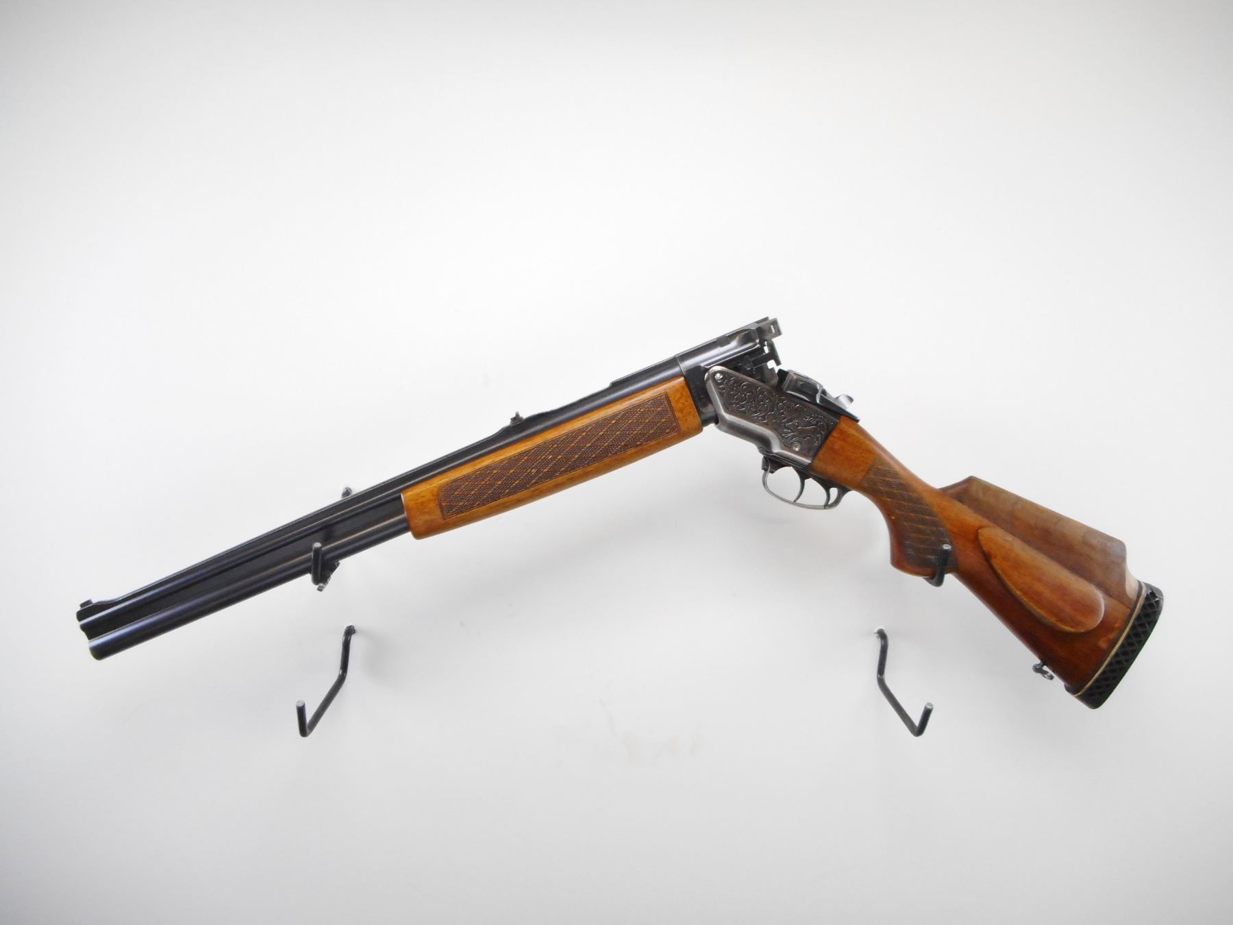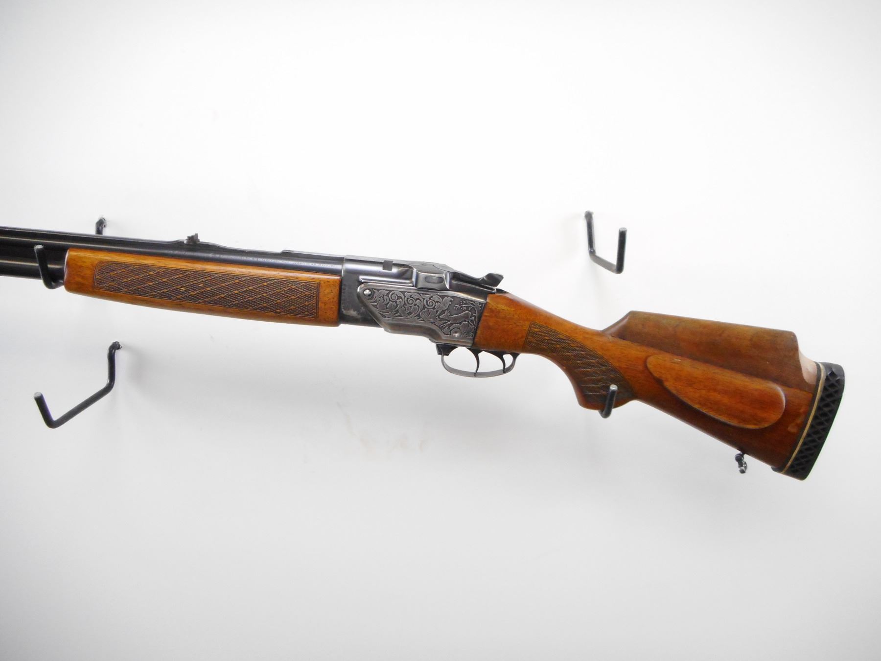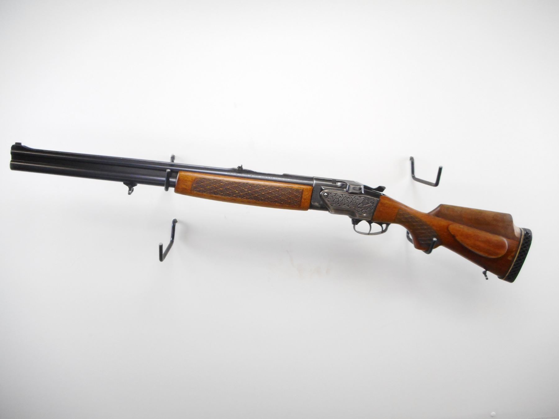 BRNO , MODEL: ZH305 , CALIBER: 12 GA 2 3/4"/22 SAV HP , FULL CHOKE. BORES ARE VERY GOOD. BLADE FRONT SIGHT. U NOTCH REAR SIGHT. RIB MODIFIED BEHIND SIGHT. INTEGRAL FACTORY SCOPE MOUNT. BLUED FINISH ON METAL PARTS. ENGRAVED GAM SCENE ON RECEIVER. DOUBLE TRIGGERS. TWO PIECE WOOD STOCKS. SLING SWIVELS CHECKERED FOREARM AND PISTOL GRIPS . CHEEK REST. ADD ON RAISED CONE. BLACK VENTED RUBBER RECOIL PAD. BLUEING SHOWS HANDLING MARKS AND WEAR. STOCK SHOWS HANDLING MARKS AND WEAR. , ACTION: HINGED COMBINATION , BARREL LENGTH: 23 1/2" , SERIAL # 319819 , CONDITION: 6/10 , CLASS: CANADIAN NON RESTRICTED CLASS