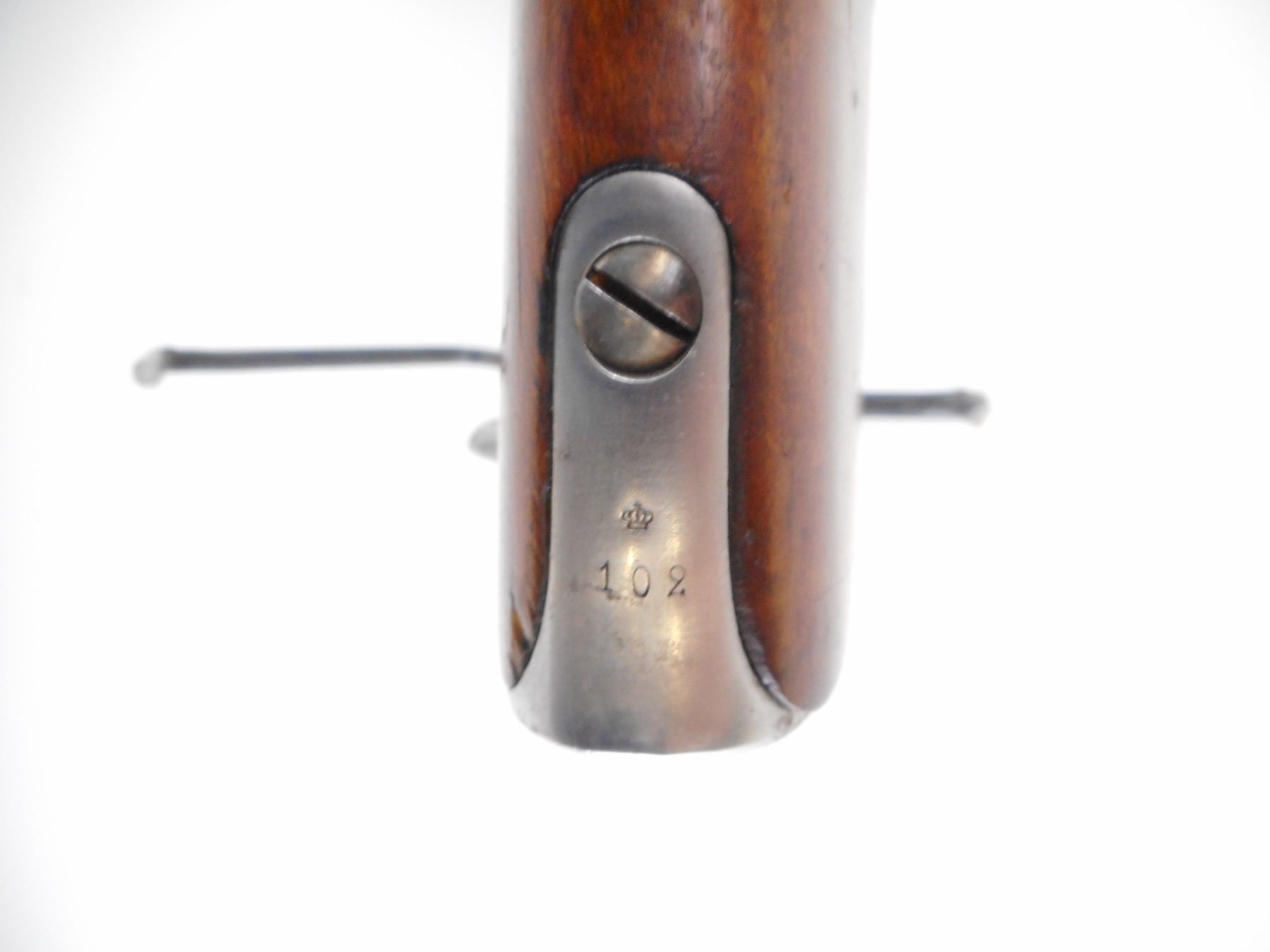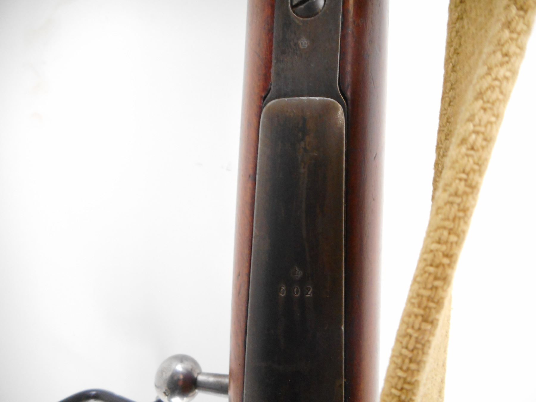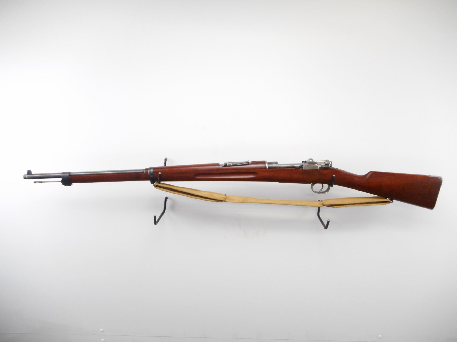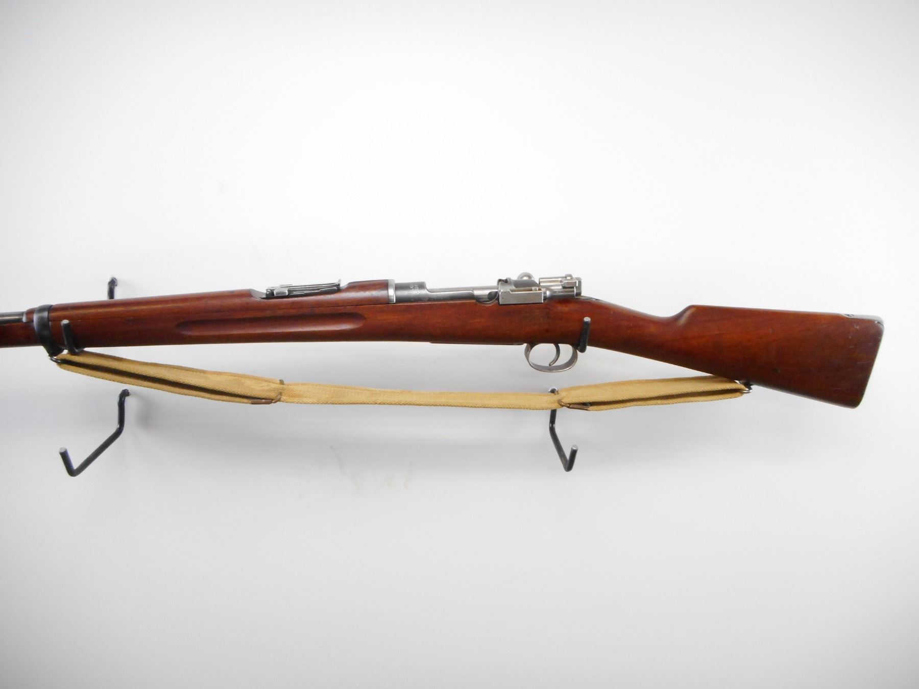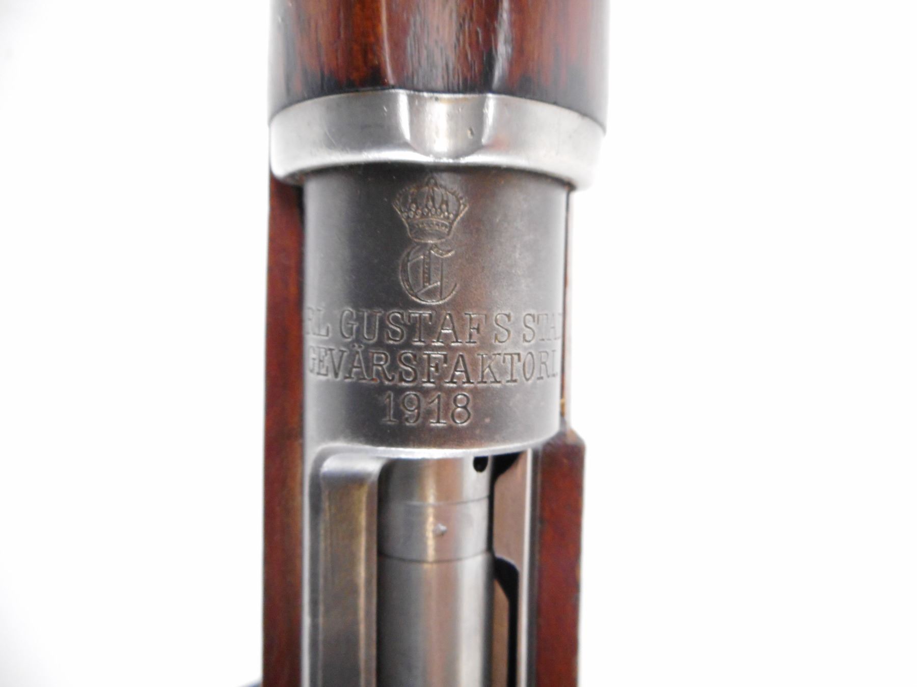 SWEDISH MAUSER , MODEL: 1896 , CALIBER: 6.5 X 55 , BORE IS GOOD, LIGHT PITTING. SERIAL NUMBERS MISMATCHED. MFG'D BY CARL GUSTOFF 1918. BLADE FRONT SIGHT. ADJUSTABLE U NOTCH REAR SIGHT. STRAIGHT BOLT HANDLE. TWO PIECE FULL MILITARY STOCK. SMOOTH STEEL BUTT PLATE. SLING SWIVEL. LEE ENFIELD CANVAS SLING. CLEANING ROD. METAL FINISH WORN, SILVER/GREY. STOCK SHOWS NUMEROUS HANDLING MARKS AND DINGS. , ACTION: BOLT ACTION RIFLE , BARREL LENGTH: 29" , SERIAL # 454602 , CONDITION: 6/10 , CLASS: CANADIAN NON RESTRICTED CLASS