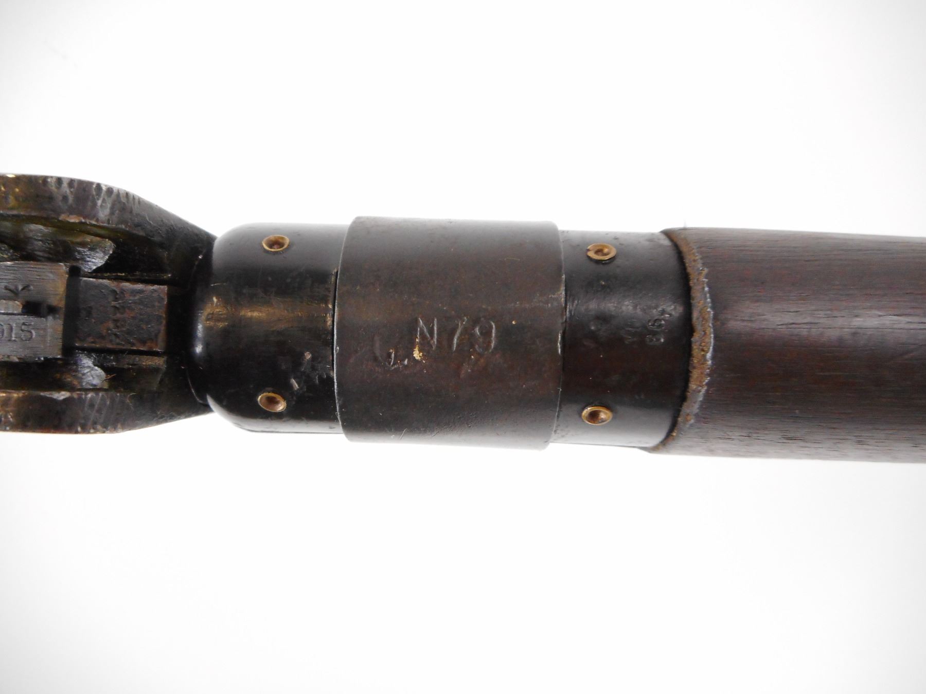 LEE ENFIELD , MODEL: NO 4 MK1 , CALIBER: 303 BR , BORE IS GOOD, WORN . MFG'D BY BRITISH 1943. BLADE FRONT SIGHT WITH EARS. L FLIP REAR PEEP SIGHT. FOUR PIECE FULL MILITARY STOCKS. BRASS BUTT PLATE. SLING SWIVELS.. METAL SHOWS SOME WEAR AND HANDLING MARKS. STOCK SHOWS SOME DING AND HANDLING MARKS. , ACTION: BOLT ACTION RIFLE , BARREL LENGTH: 25 1/4" , SERIAL # AR6304 , CONDITION: 7/10 , CLASS: CANADIAN NON RESTRICTED CLASS