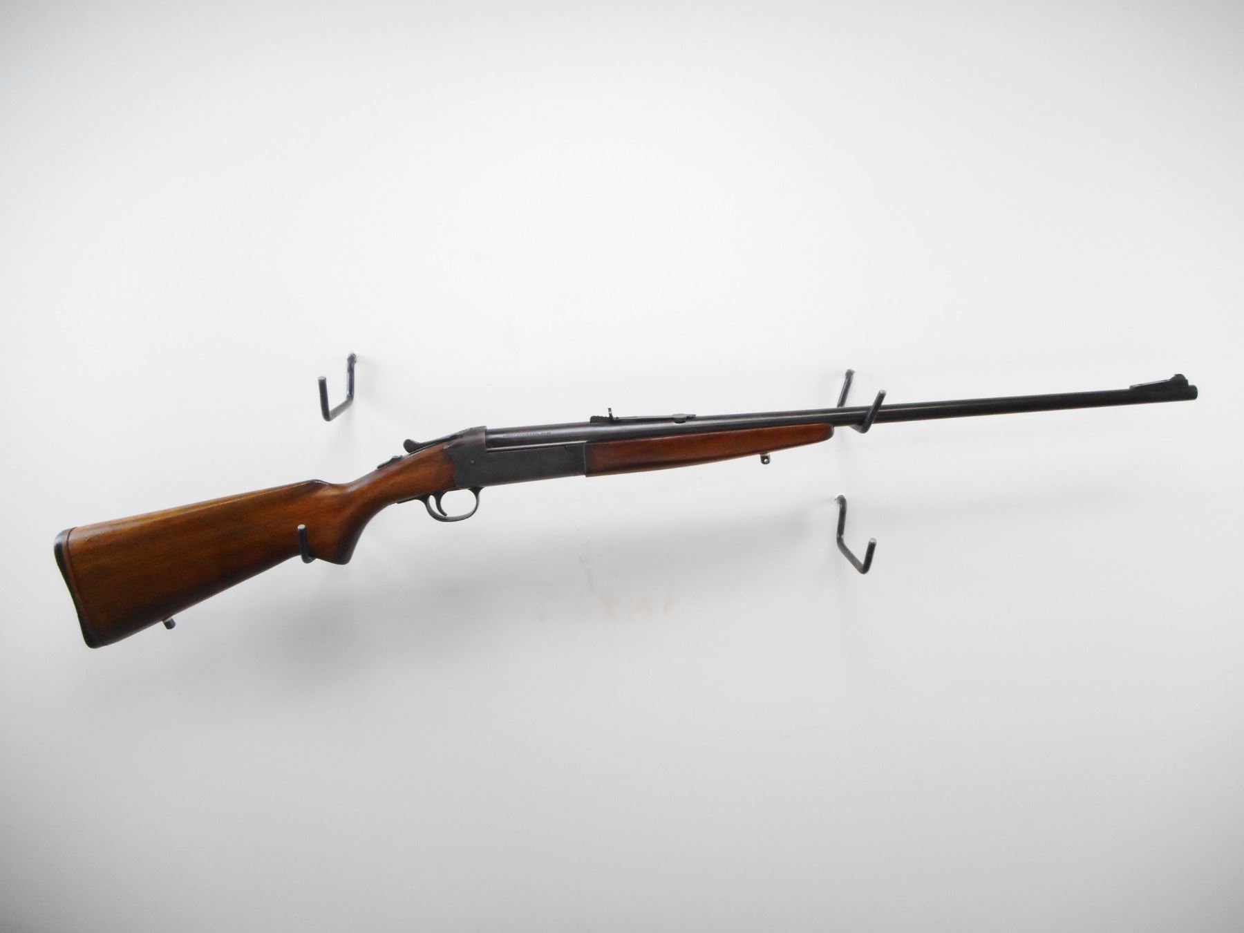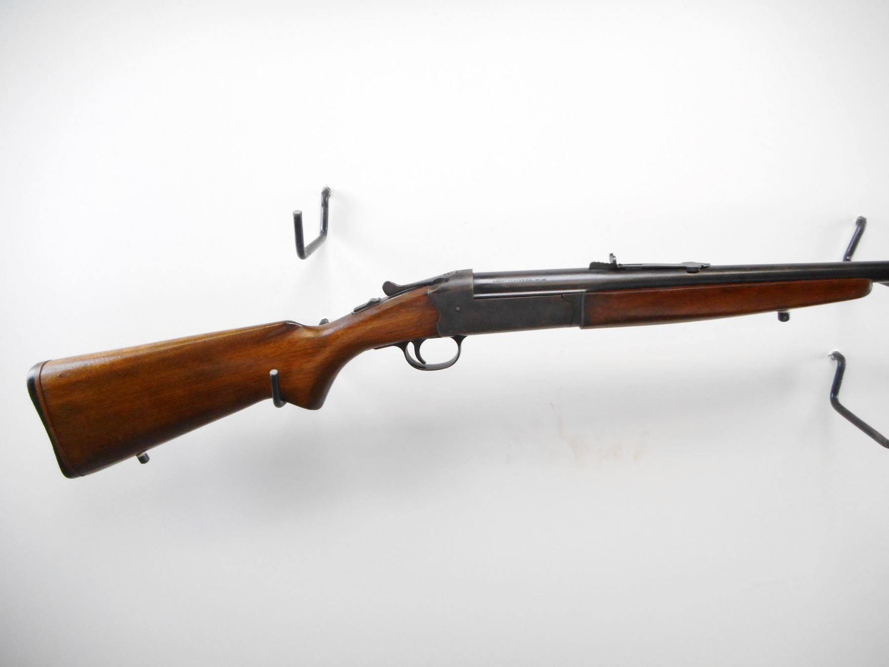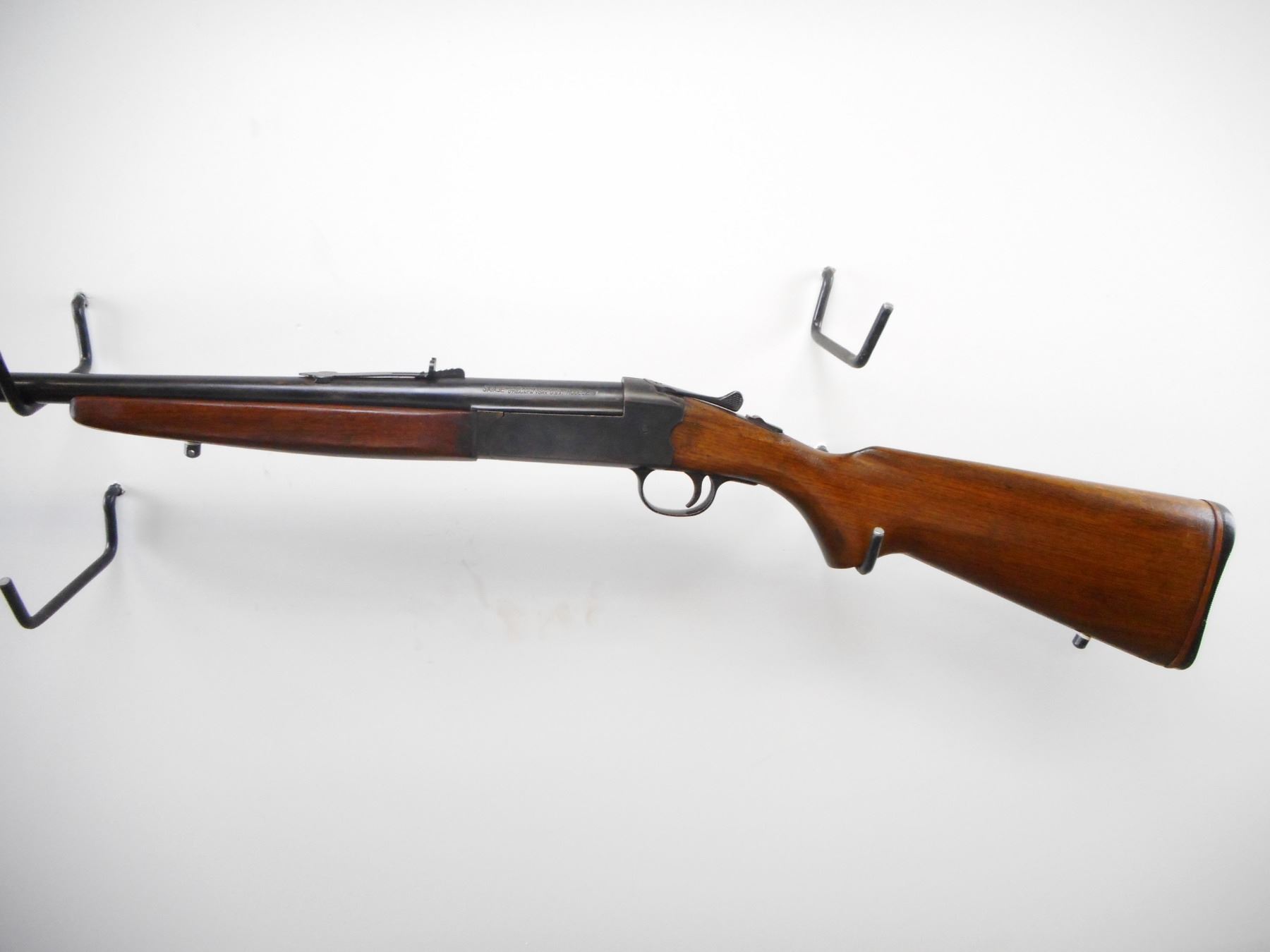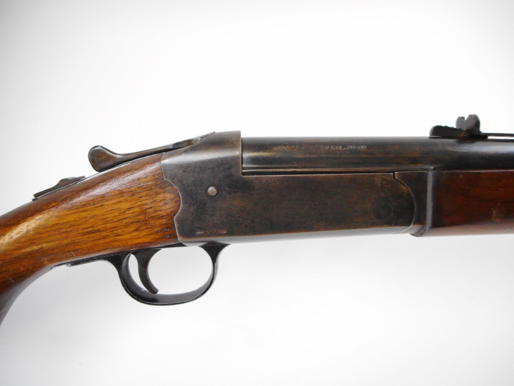 SAVAGE , MODEL: 219 , CALIBER: 30-30 WIN , BORE IS GOOD, LIGHT PITTING. BLADE FRONT SIGHT WITH RAMP. ADJUSTABLE U NOTCH REAR SIGHT. BLUED FINISH ON METAL PARTS. TANG SAFETY. TWO PIECE SMOOTH WOOD STOCKS. PISTOL GRIP. SMOOTH BLACK POLYMER BUTT PLATE. STOCK CRACKED AND REPAIRED BEHIND RECEIVER. SWIVEL STUDS. METAL SHOWS HANDLING MARKS AND WEAR. STOCKS SHOWS HANDLING MARKS AND WEAR. , ACTION: HINGE SINGLE SHOT , BARREL LENGTH: 26" , SERIAL # N/A , CONDITION: 6/10 , CLASS: CANADIAN NON RESTRICTED CLASS