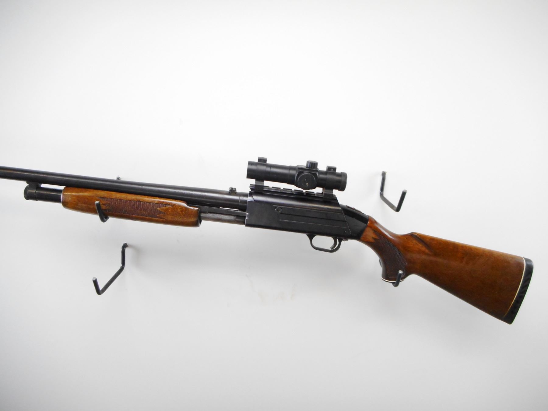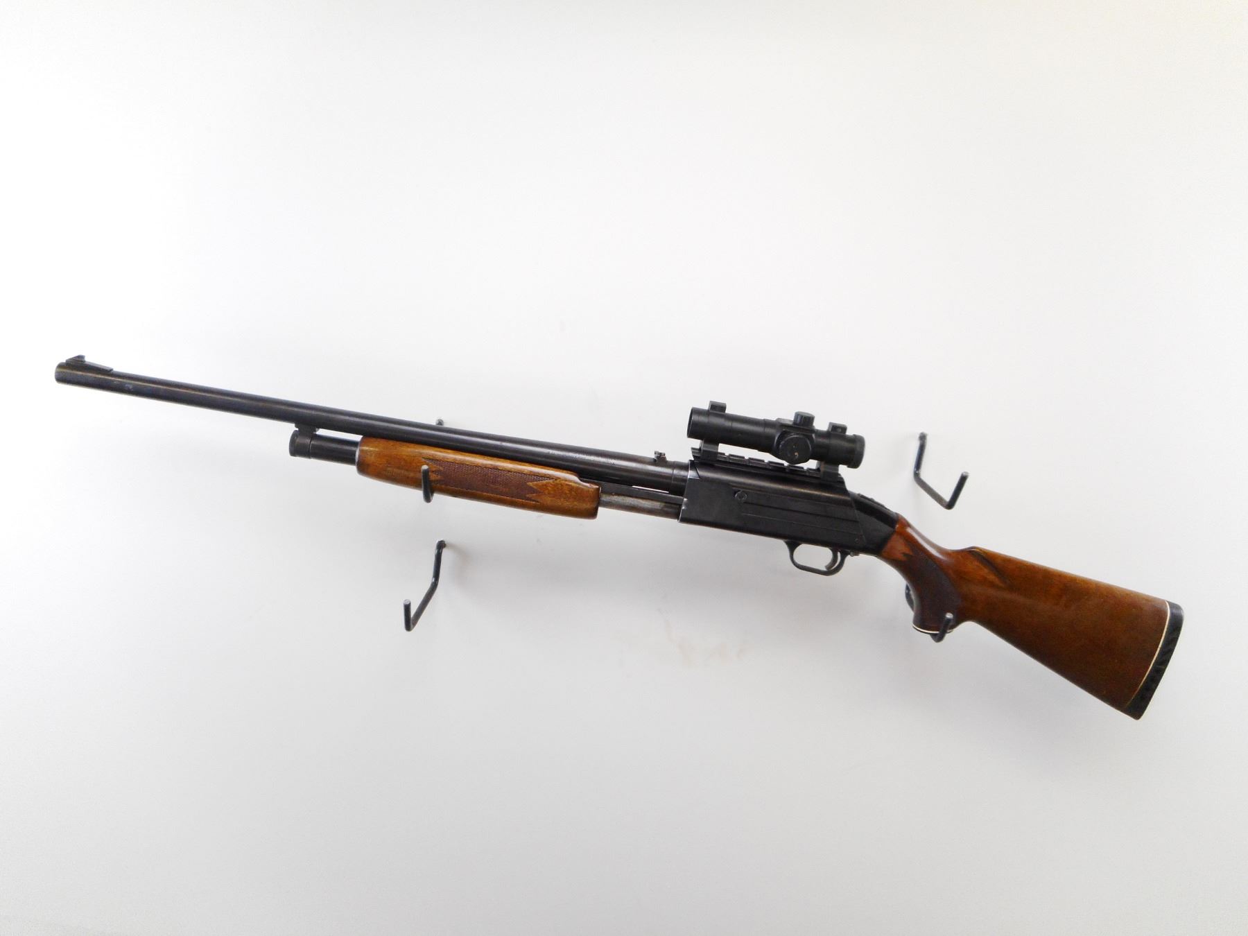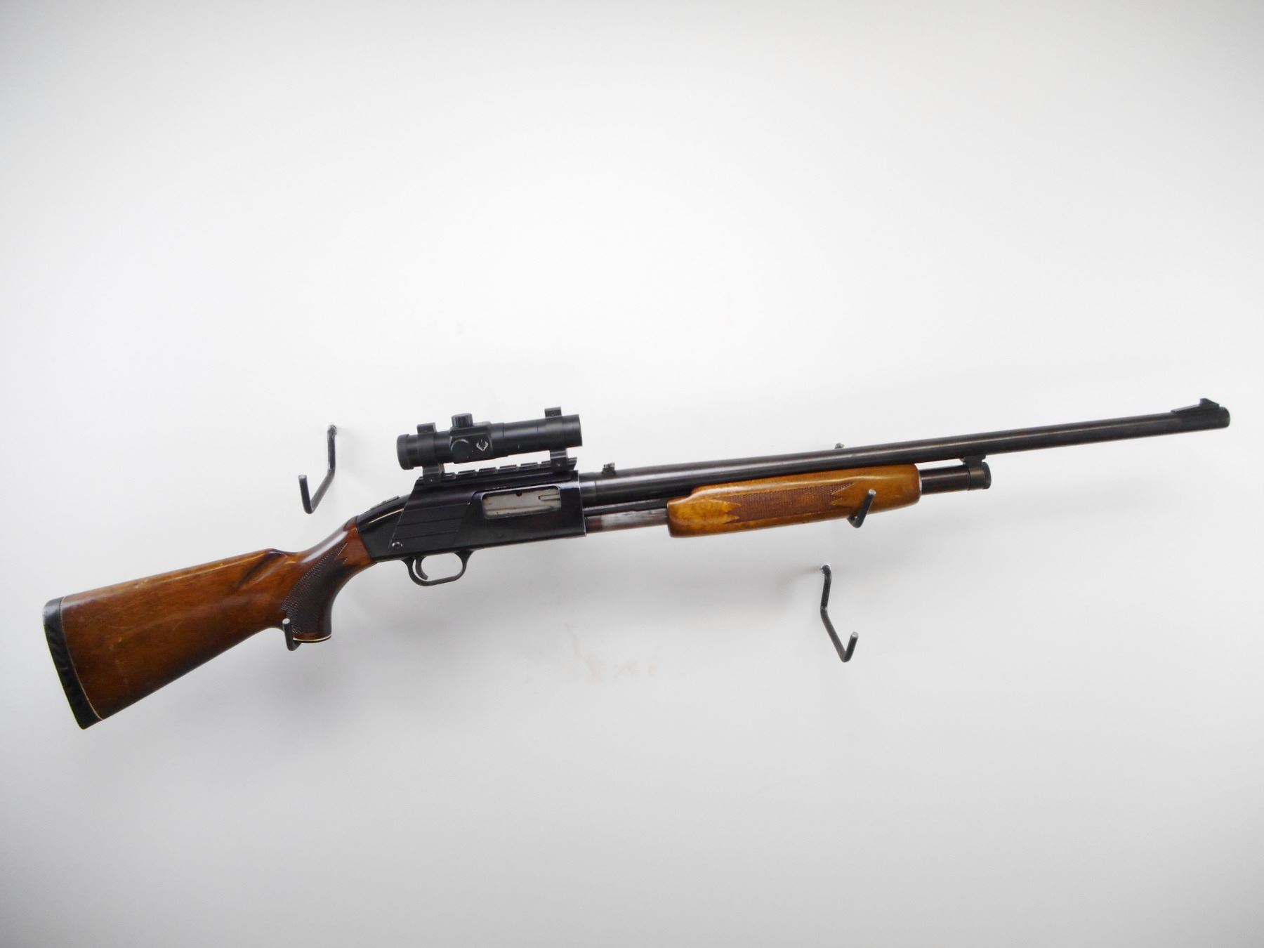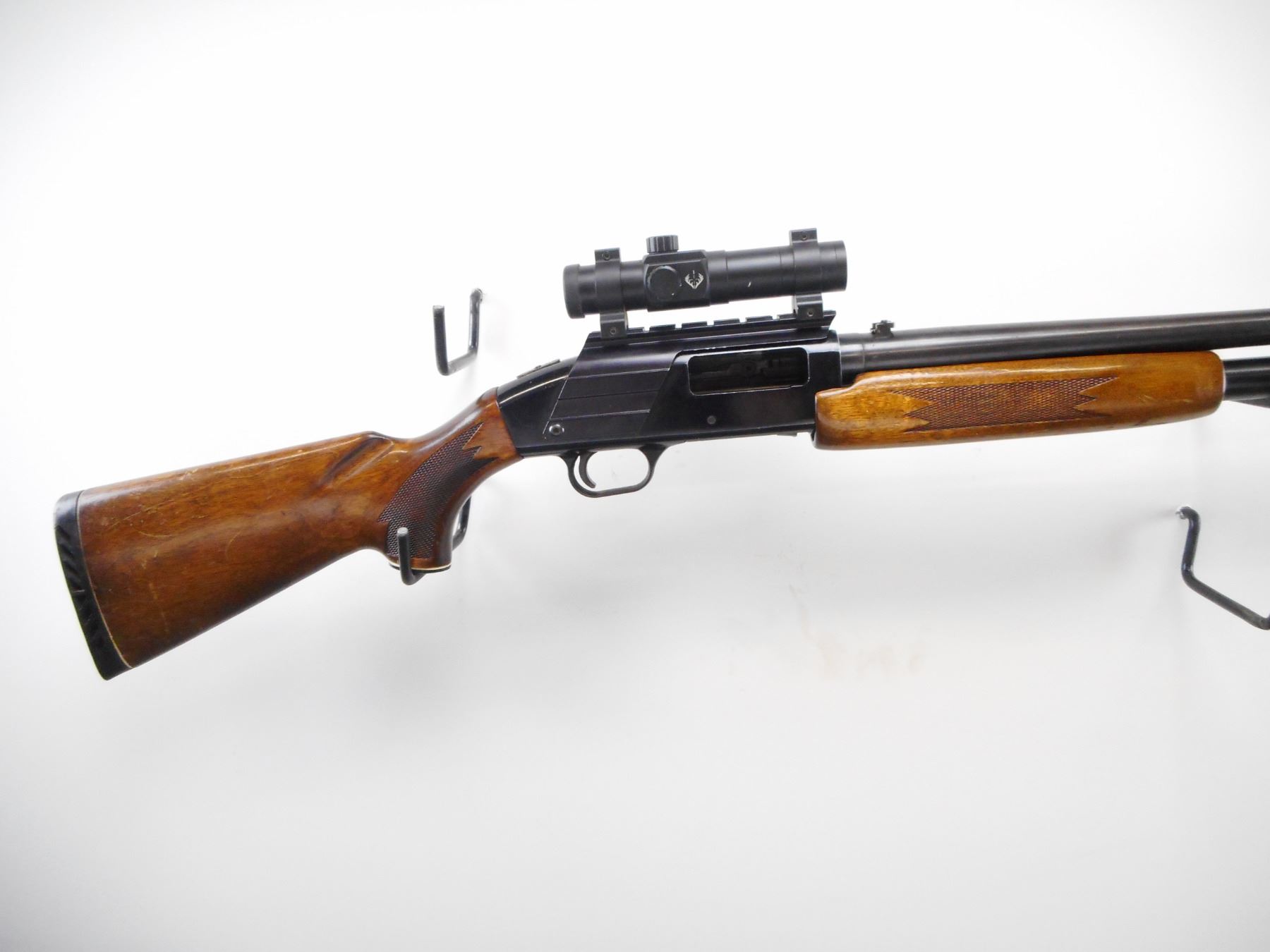 MOSSBERG , MODEL: 500 , CALIBER: 12 GA X 3" , BORE IS VERY GOOD. BLADE FRONT SIGHT WITH RAMP. FOLDING U NOTCH ADJUSTABLE REAR SIGHT. SMOOTH BORE SLUG BARREL. BUSHNELL TROPHY RED DOT ON A B-SQUARE SADDLE MOUNT. TWO PIECE WOOD STOCKS. CHECKERED FOREARM AND PISTOL GRIP. BLACK VENTED RUBBER RECOIL PAD. GRIP CAP. METAL FINISH SHOWS WEAR AND HANDLING MARKS. STOCK SHOWS DINGS WEAR AND HANDLING MARKS. , ACTION: PUMP ACTION SHOTGUN , BARREL LENGTH: 24" , SERIAL # 5651 , CONDITION: 7/10 , CLASS: CANADIAN NON RESTRICTED CLASS