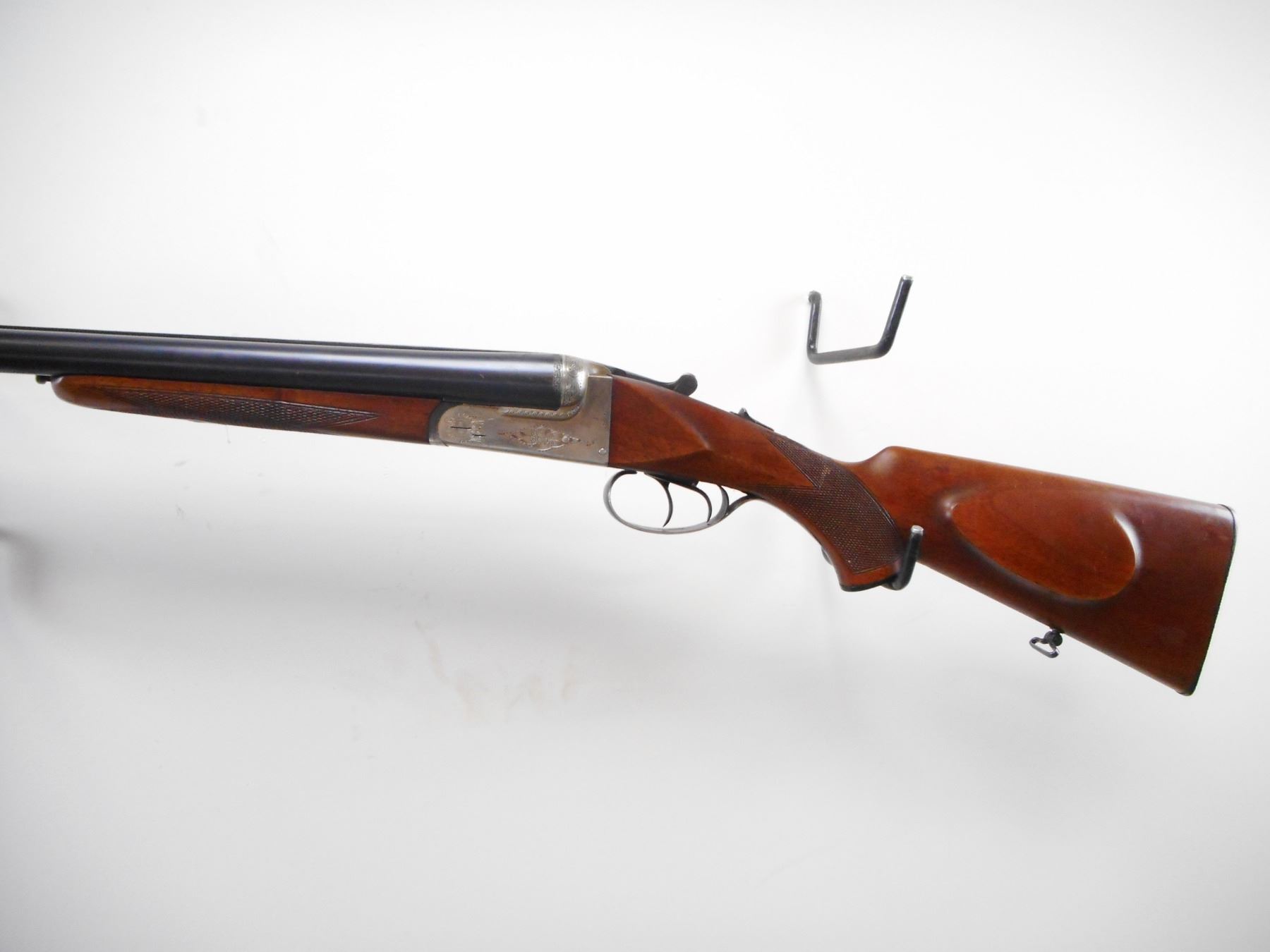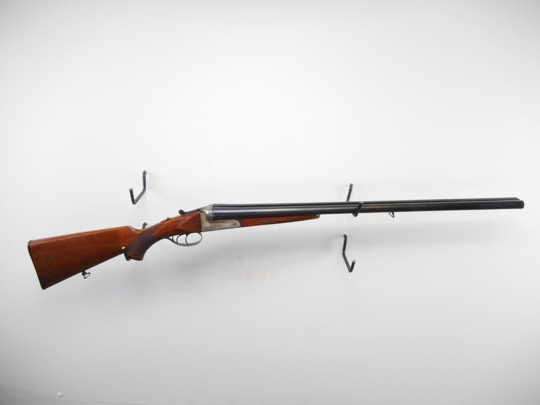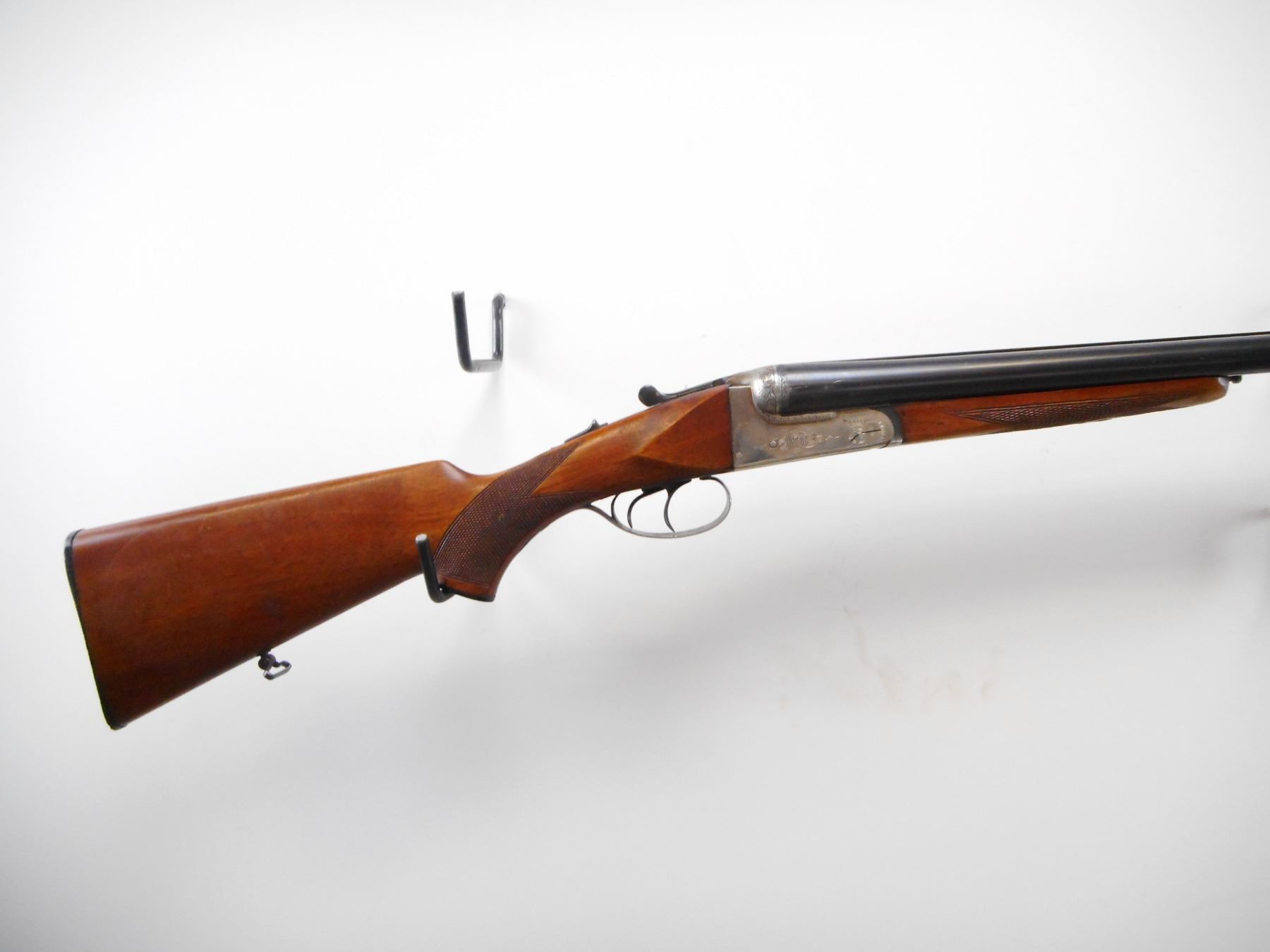 LAURONA , MODEL: SXS , CALIBER: 12 GA XZ 2 3/4" , I/M AND FULL CHOKE. BORE IS VERY GOOD AND VERY GOOD. BRASS BEAD . TEXTURED RAISED RIB BETWEEN BLUE BARRELS. SILVER RECEIVER WITH ENGRAVING. EXTRACTOR. AUTOMATIC SAFETY. DOUBLE TRIGGERS. RIGHT BARREL DOES NOT FIRE. TWO PIECE WOOD STOCKS. CHECKERED FOREARM AND PISTOL GRIP. CHEEK REST. GROOVED BLACK POLYMER BUTT PLATE. GRIP CAP. SLING SWIVELS. METAL SHOWS HANDLING MARKS AND SCRATCHES. STOCK SHOWS DINGS AND SCRATCHES , ACTION: HINGED SXS SHOTGUN , BARREL LENGTH: 27 1/2" , SERIAL # 44743 , CONDITION: 6/10 , CLASS: CANADIAN NON RESTRICTED CLASS