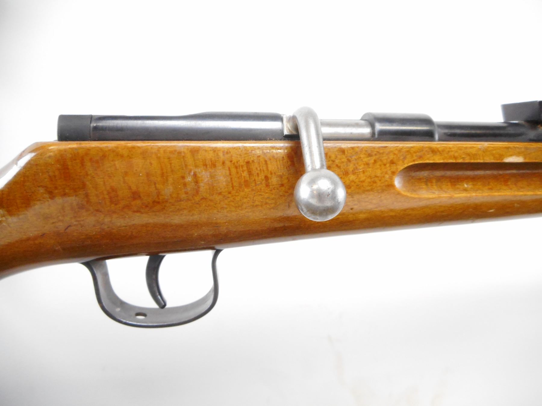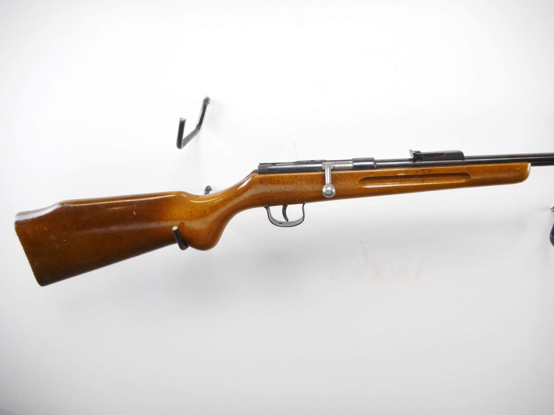 VOERE , MODEL: , CALIBER: 9MM FLOBERT , BORE IS VERY GOOD. MISSING FRONT SIGHT. ADJUSTABLE U NOTCH REAR SIGHT. SMOOTH ONE PIECE WOOD STOCK. GROOVED FOREND. GROOVED BUTT. METAL SHOWS SOME WEAR AND HANDLING MARKS. STOCK SHOWS SMALL DINGS AND HANDLING MARKS. , ACTION: BOLT ACTION SHOTGUN , BARREL LENGTH: 21 1/4" , SERIAL # 361953 , CONDITION: 6/10 , CLASS: CANADIAN NON RESTRICTED CLASS