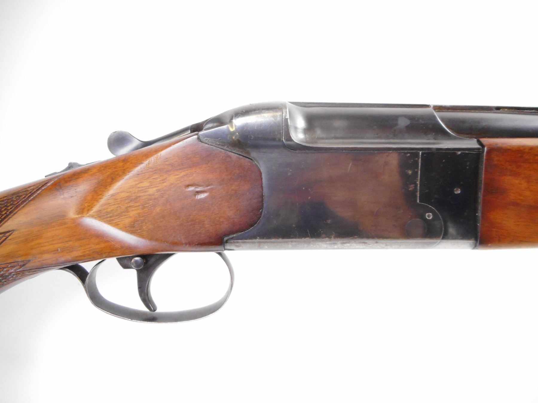 FEG , MODEL: 1000E , CALIBER: 12 GA X 3" , FULL AND FULL CHOKE. BORE IS GOOD AND GOOD. BRASS FRONT AND MID RIB BEAD. VENT RIB WITH DENTS. BLUED FINISH ON METAL PARTS. EJECTORS. AUTOMATIC SAFETY. SINGLE SELECTIVE TRIGGER. TWO PIECE WOOD STOCKS. CHECKERED FOREARM AND PISTOL GRIPS. CHEEK REST. GROOVED BLACK POLYMER BUTT PLATE. GRIP CAP. SWIVEL HELD ON WITH WIRE. BLUEING SHOWS NUMEROUS HANDLING MARKS AND WEAR. STOCK SHOWS NUMEROUS HANDLING MARKS AND WEAR. , ACTION: HINGE OVER UNDER SHOTGUN , BARREL LENGTH: 28" , SERIAL # B6131 , CONDITION: 6 1/2/10 , CLASS: CANADIAN NON RESTRICTED CLASS