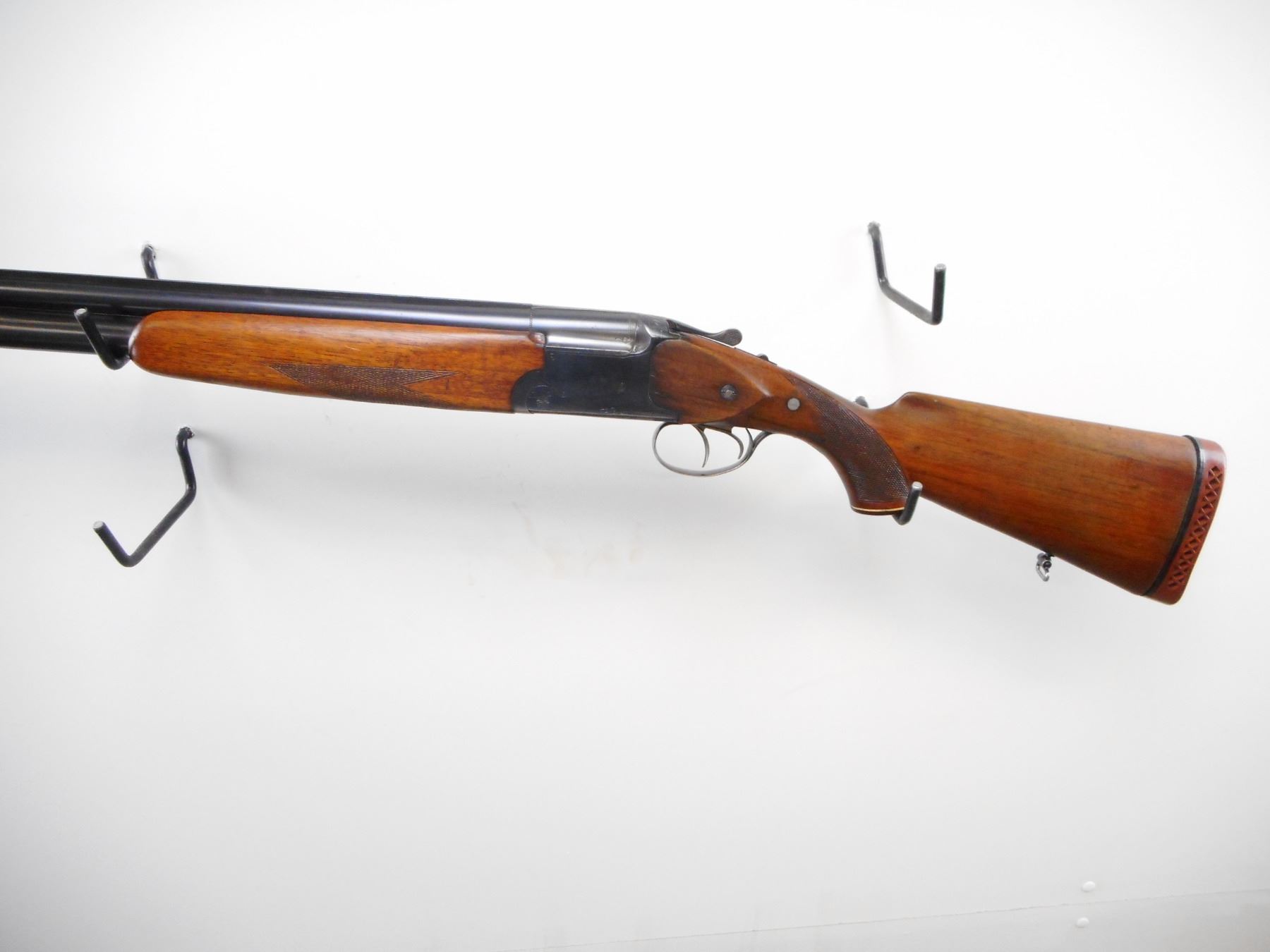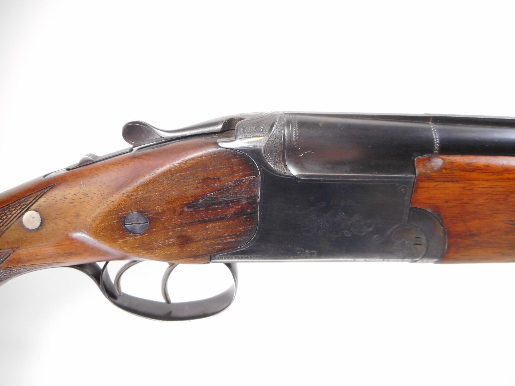 USSR , MODEL: NK12 , CALIBER: 12 GA X 2 3/4" , FULL AND FULL CHOKE. BORE IS EXCELLENT AND EXCELLENT. BRASS BEAD. SOLID RIB. BLUED FINISH ON METAL PARTS. EXTRACTOR. MANUAL SAFETY. DOUBLE TRIGGERS. TWO PIECE WOOD STOCKS. CHECKERED FOREARM AND PISTOL GRIPS. RED VENTED RUBBER RECOIL PAD. BROWN GRIP CAP. SLING SWIVELS. BLUEING SHOWS HANDLING MARKS AND WEAR. STOCK BROKEN AND WRIST AND REPAIRED. SHOWS HANDLING MARKS AND WEAR. , ACTION: HINGE OVER AND UNDER SHOTGUN , BARREL LENGTH: 28 1/2" , SERIAL # A1710 , CONDITION: 6 1/2/10 , CLASS: CANADIAN NON RESTRICTED CLASS