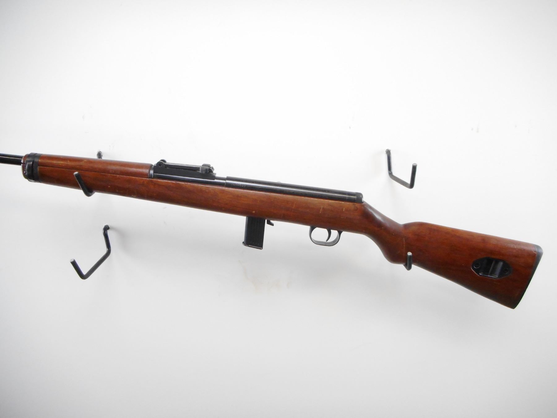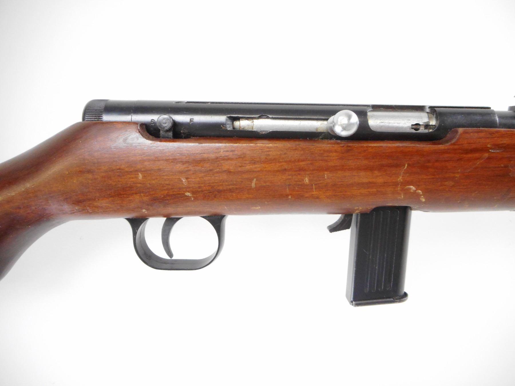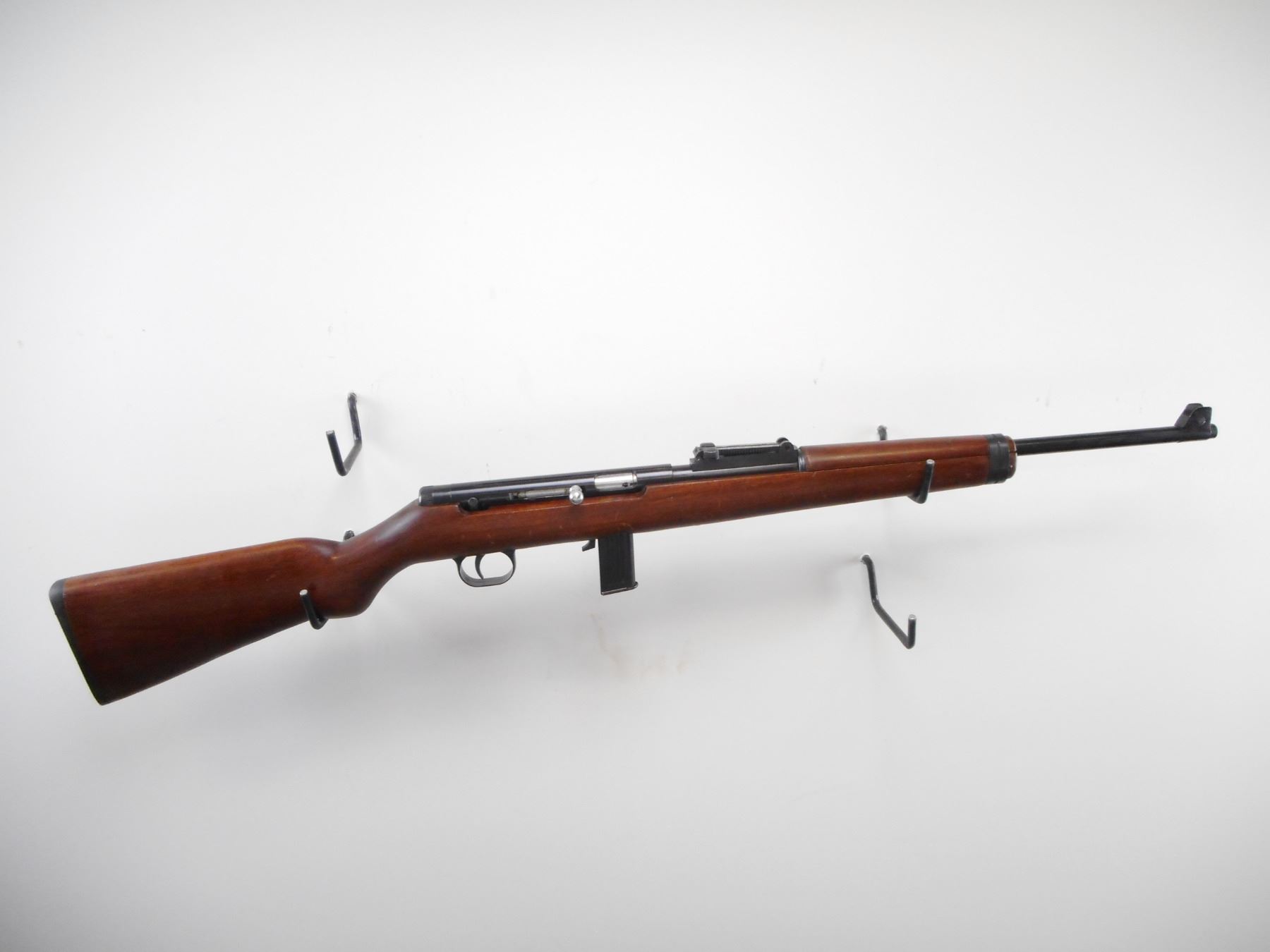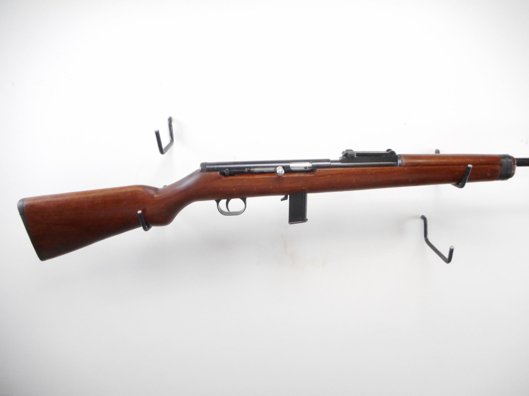 NORINCO , MODEL: JW14 , CALIBER: 22 LR , COME WITH MAGAZINE. BORE IS VERY GOOD. POST FRONT SIGHT WITH EARS. AJUSTABLE U NOTCH REAR SIGHT. RECEIVER GROOVED FOR SCOPE MOUNT. TWO PIECE WOOD STOCK. GROOVED BLACK POLYMER BUTT PLATE. SLING SWIVELS. BLUED FINISH SHOWS SLIGHT HANDLING MARKS. STOCK SHOWS DINGS, AND HANDLING MARKS. , ACTION: SEMI AUTO RIFLE , BARREL LENGTH: 20 1/2" , SERIAL # 9400560 , CONDITION: 7/10 , CLASS: CANADIAN NON RESTRICTED CLASS