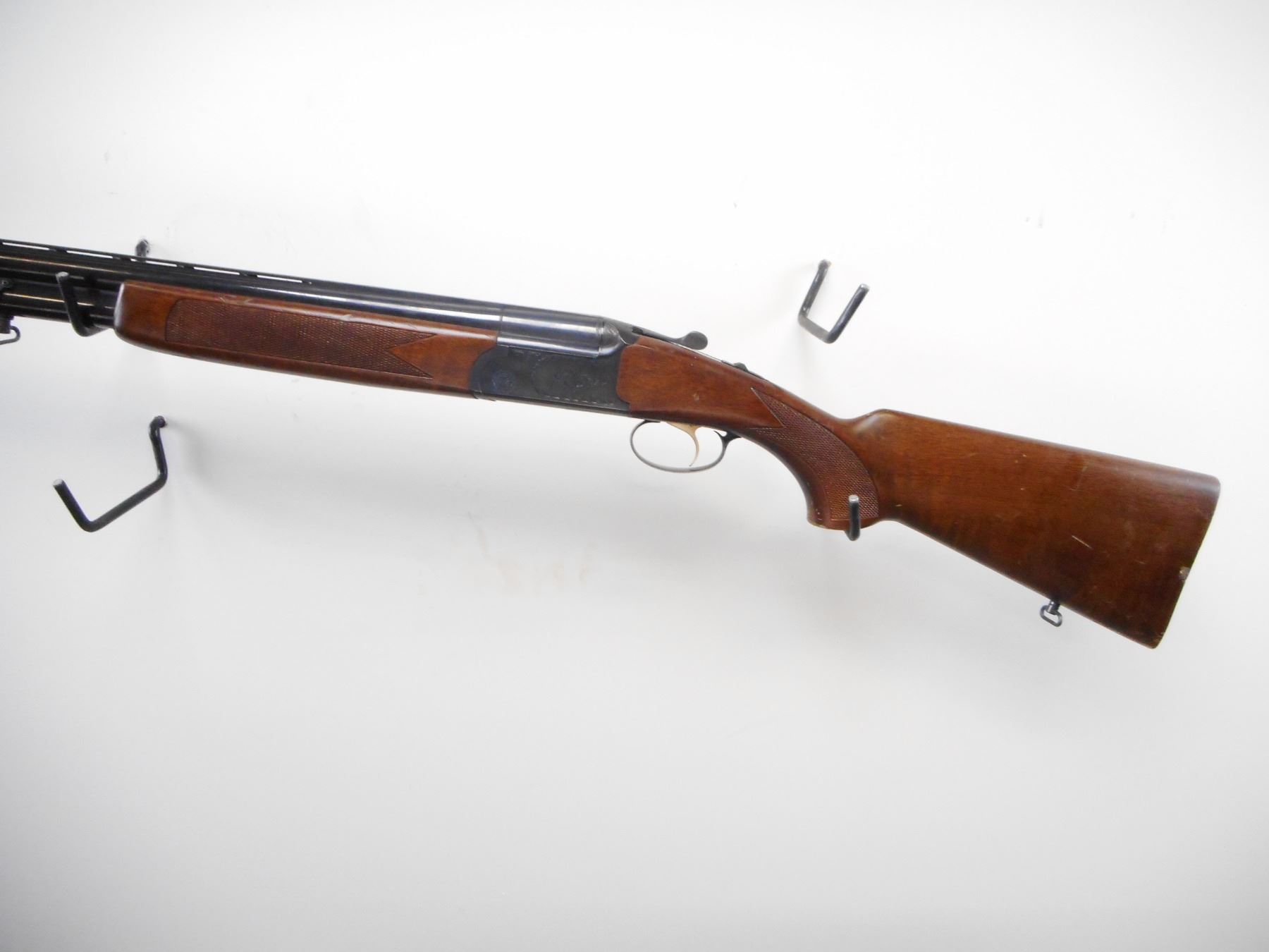 SABATTI , MODEL: CLASSIC OVER AND UNDER , CALIBER: 12 GA X 3" , FULL AND MOD CHOKES. BORES ARE EXCELLENT. BRASS BEAD. VENT RIB. BLUED BARRELS AND ENGRAVED RECEIVER. EXTRACTOR. AUTOMATIC SELECTIVE SAFETY. SINGEL TRIGGER. TWO PIECE WOOD STOCKS, CHECKERED FOREARM AND PISTOL GRIP. MISSING BUTT PLATE. SLING SWIVELS. BLUEING SHOWS HANDLING MARKS AND WEAR. STOCK SHOWS SMALL DINGS HANDLING MARKS AND WEAR , ACTION: HINGE OVER UNDER , BARREL LENGTH: 27 3/4" , SERIAL # 28177 , CONDITION: 6 1/2/10 , CLASS: CANADIAN NON RESTRICTED CLASS