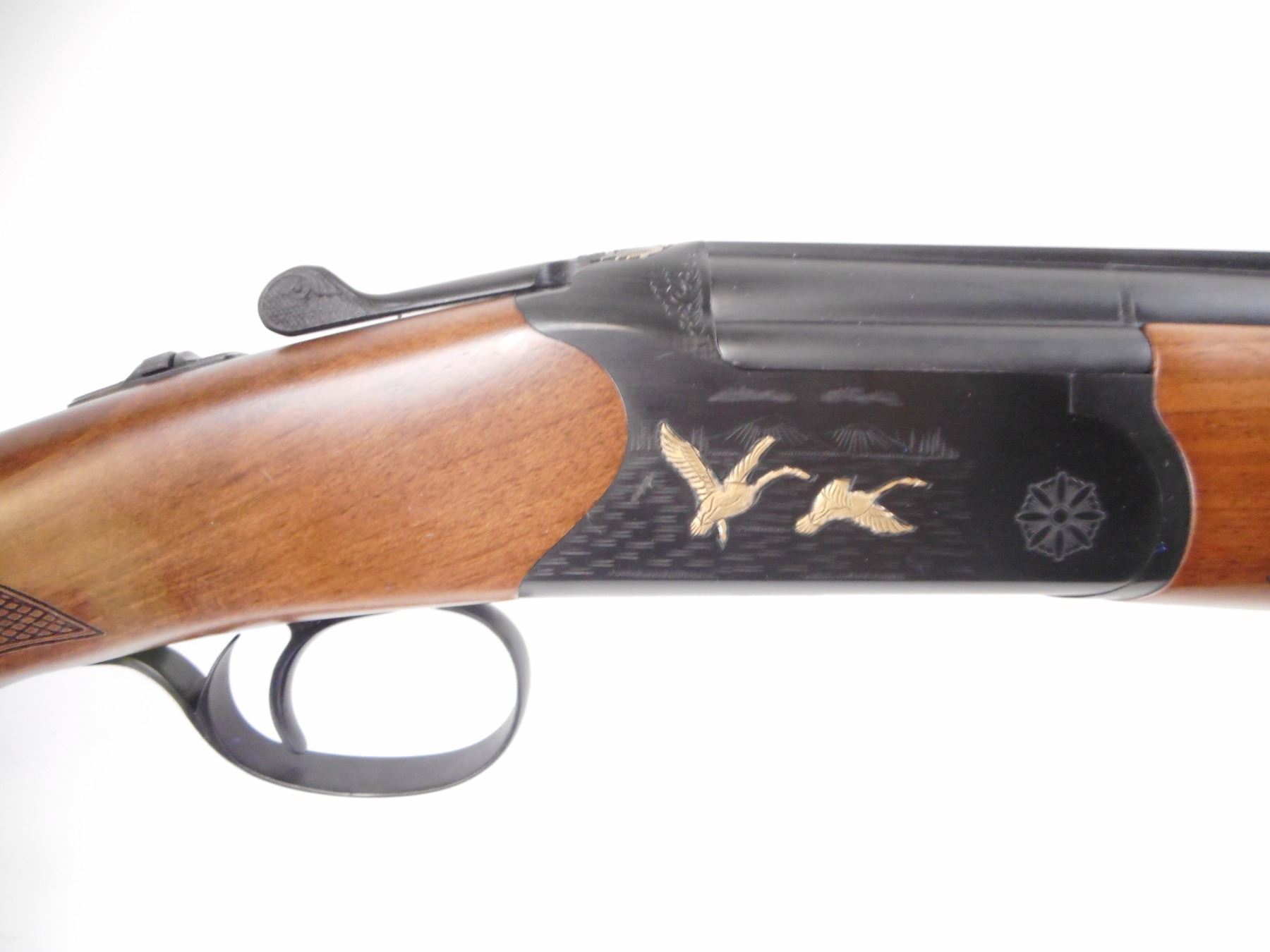 HUGLU , MODEL: 103C , CALIBER: 20 GA X 3" , COMES WITH HARD CASE, MANUAL. REMOVEABLE CHOKES, COMES WITH 5 CHOKES AND WRENCH. BORES ARE EXCELLENT. WHITE BEAD. VENT RIB ON BLUED BARRELS. BLUED BARREL, AND ENGRAVED RECEIVER WITH GOLD WATER FOWL. EXTRACTOR. MANUAL SELECTIVE SAFETY. SINGLE MECHANICAL TRIGGER. TWO PIECE WOOD STOCKS. CHECKERED FOREARM AND PISTOL GRIPS. BLACK RUBBER RECOIL PAD. GRAIN SHOWS SOME FIGUREING. SLIGHT HANDLING MARKS , ACTION: HINGE OVER AND UNDER SHOTGUN , BARREL LENGTH: 28" , SERIAL # CA180140 , CONDITION: AS NEW , CLASS: CANADIAN NON RESTRICTED CLASS