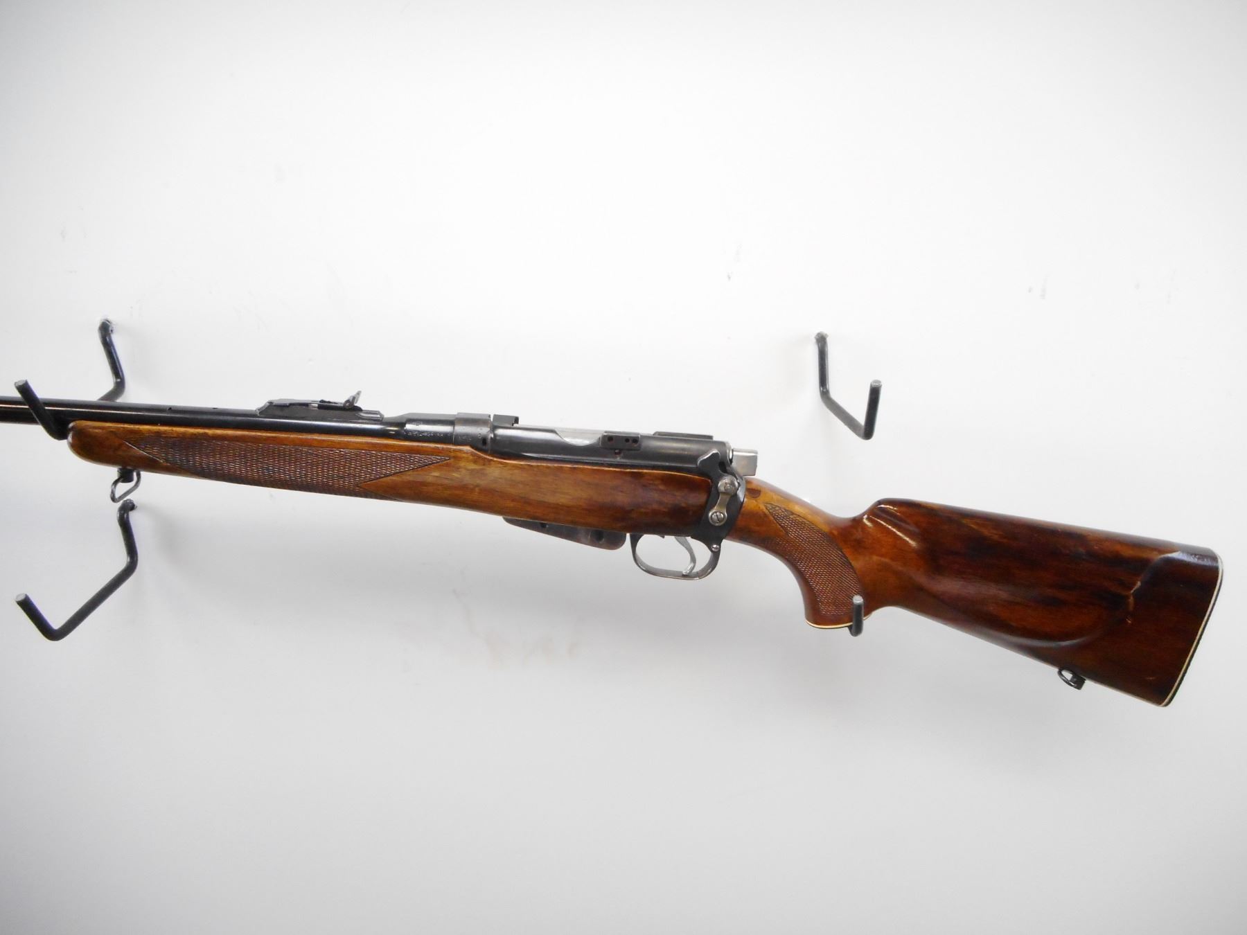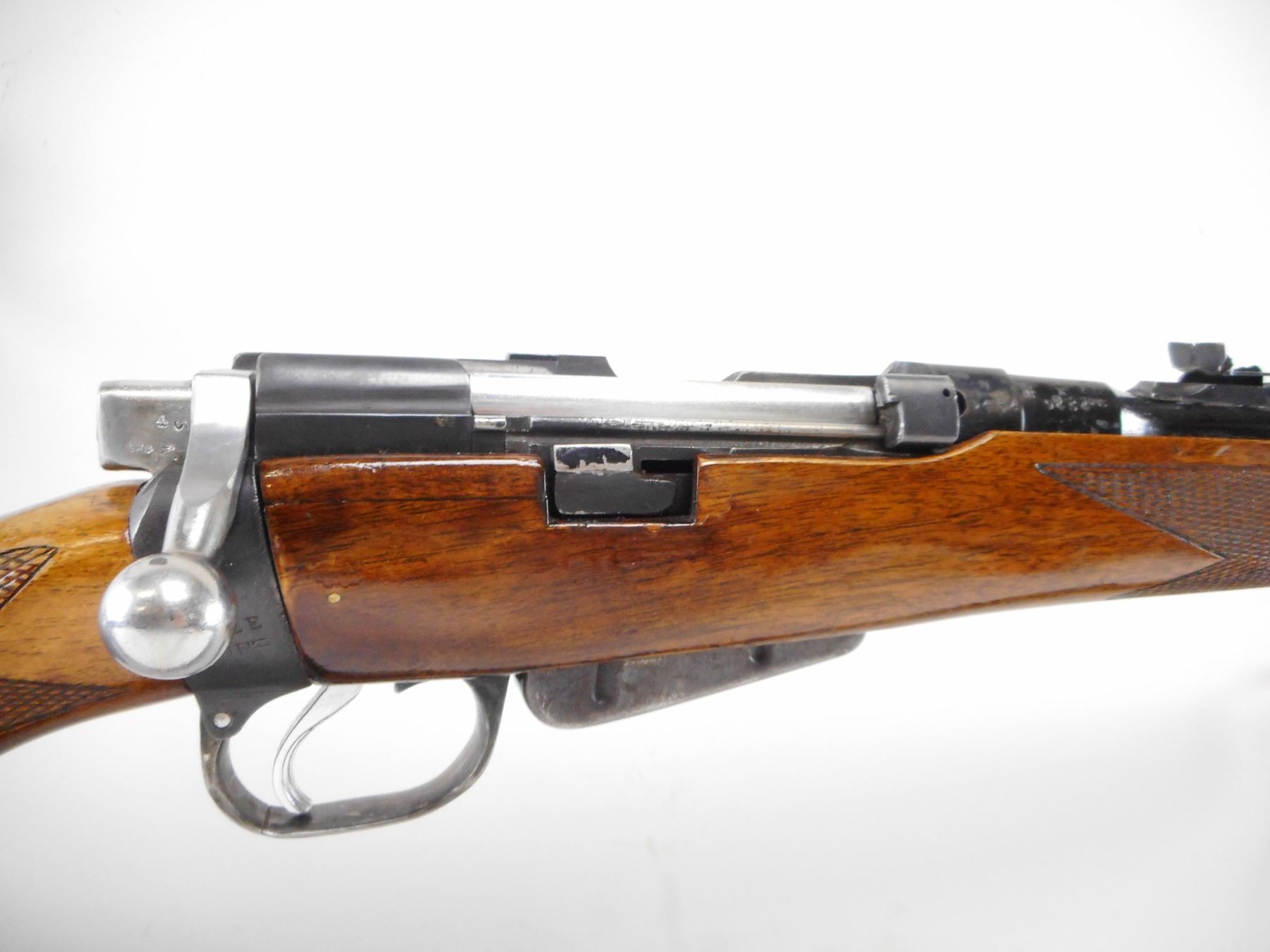 LEE ENFIELD , MODEL: NO1 MK3 SPORTER , CALIBER: 303 BR , COMES WITH MAGAZINE. BORE IS FAIR. BLADE FRONT SIGHT WITH RAMP. ADJUSTABLE U NOTCH REAR SIGHT. MISSING EJECTOR SCREW. BRIDGE REMOVED. TWO PIECE WOOD STOCKS. CHECKERED FOREARM AND PISTOL GRIPS. CHEEK REST. CHECKERED BLACK POLYMER BUTT PLATE. GRIP CAP. METAL SHOWS NUMEROUS HANDLING MARK AND WEAR. STOCK SHOWS NUMEROUS HANDLING MARKS AND WEAR. , ACTION: BOLT ACTION RIFLE , BARREL LENGTH: 18" , SERIAL # N9454 , CONDITION: 6/10 , CLASS: CANADIAN NON RESTRICTED CLASS