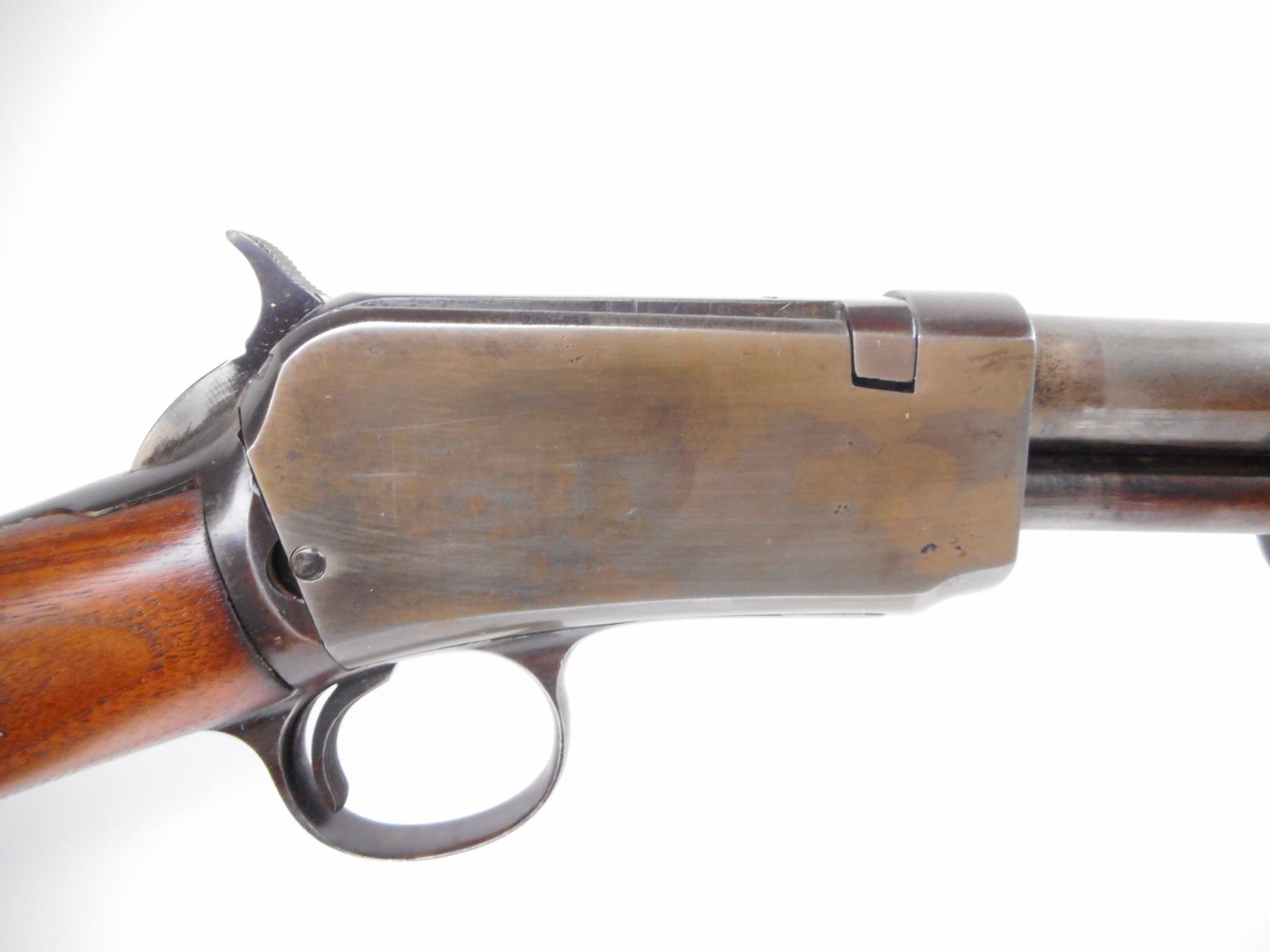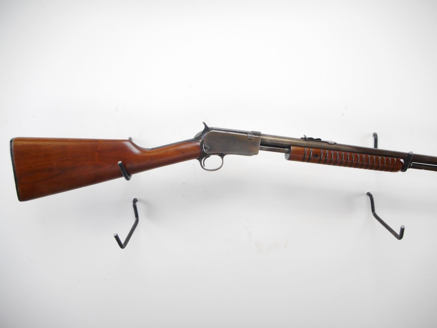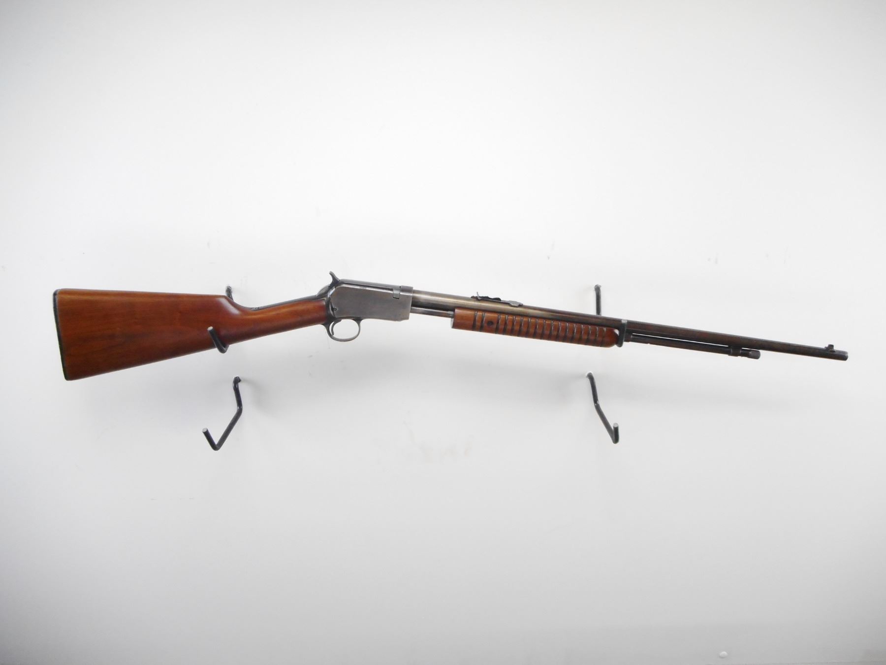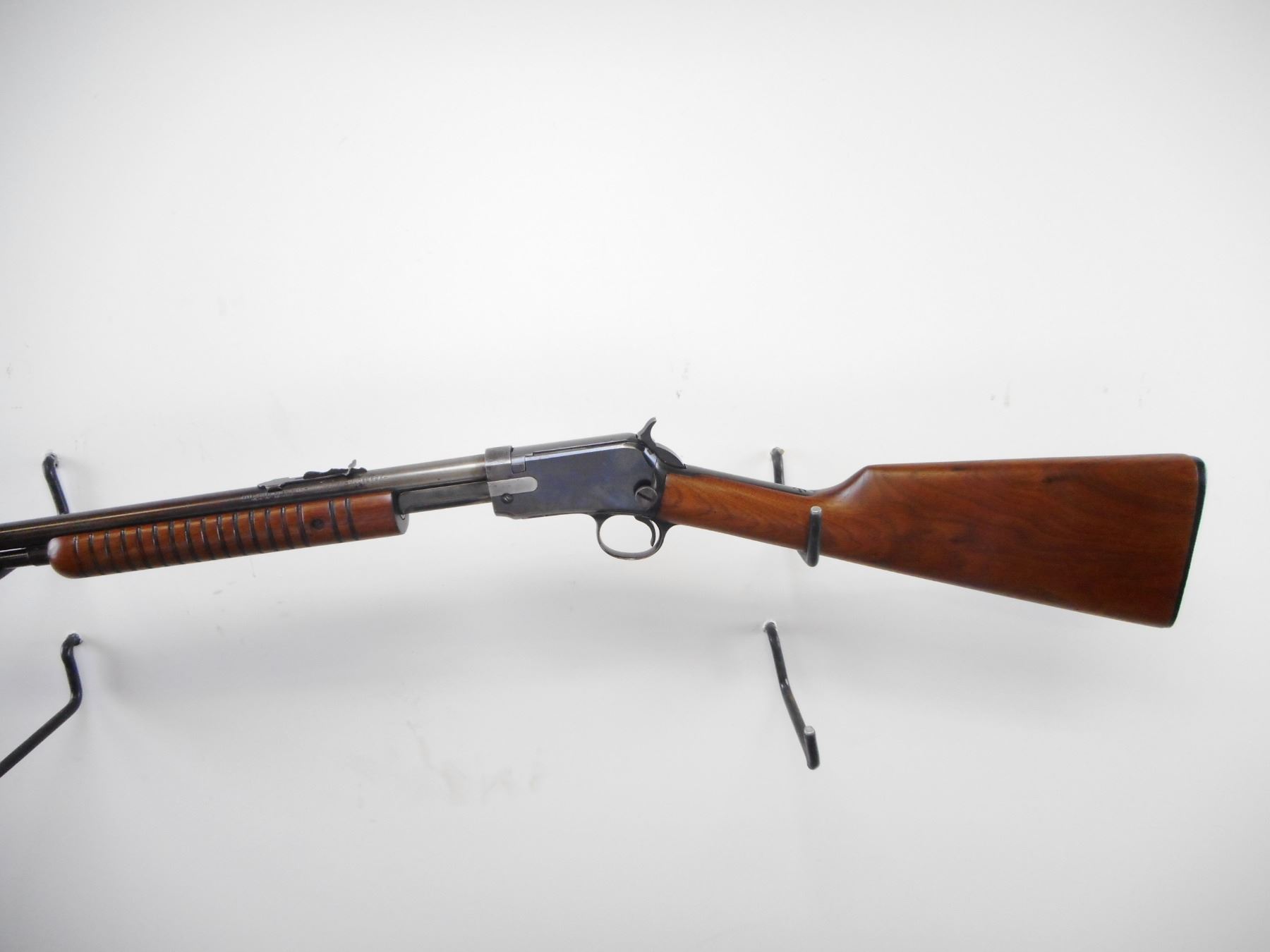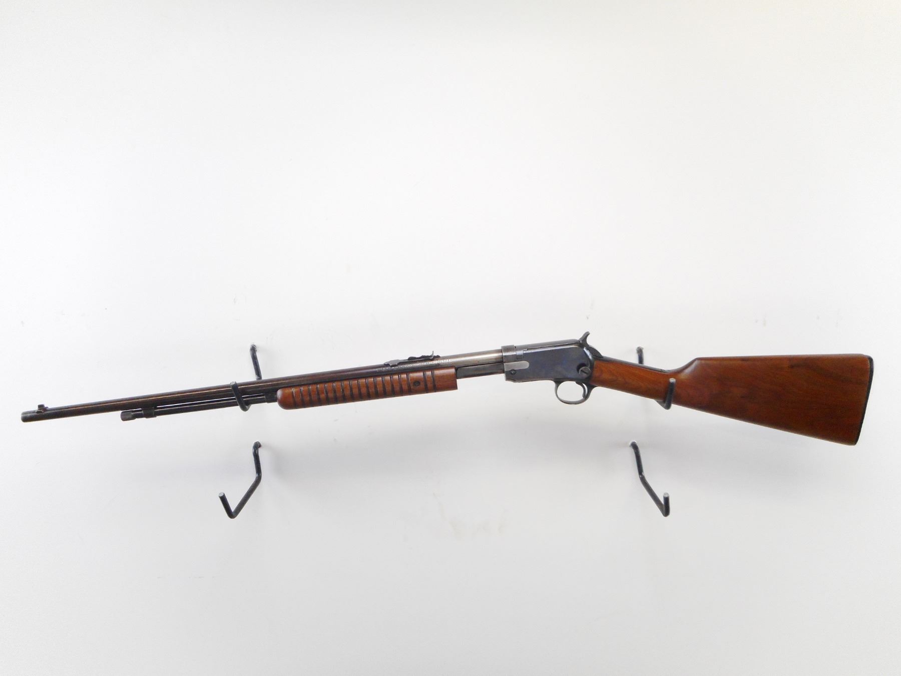 WINCHESTER , MODEL: 62A , CALIBER: 22 LR , BORE IS VERY GOOD. MFG'D 1954. BLADE FRONT SIGHT. ADJUSTABLE U NOTCH REAR SIGHT. GROOVED WOOD FOREND. SMOOTH STRAIGHT GRIP BUTT STOCK. CHECKERED BLACK POLYMER BUTT PLATE. BLUEING SHOWS FADING, TURNING BROWN. HANDLING MARKS. STOCK SHOWS HANDLING MARKS AND WEAR. , ACTION: PUMP ACTION RILFE , BARREL LENGTH: 23" , SERIAL # 311621 , CONDITION: 6/10 , CLASS: CANADIAN NON RESTRICTED CLASS