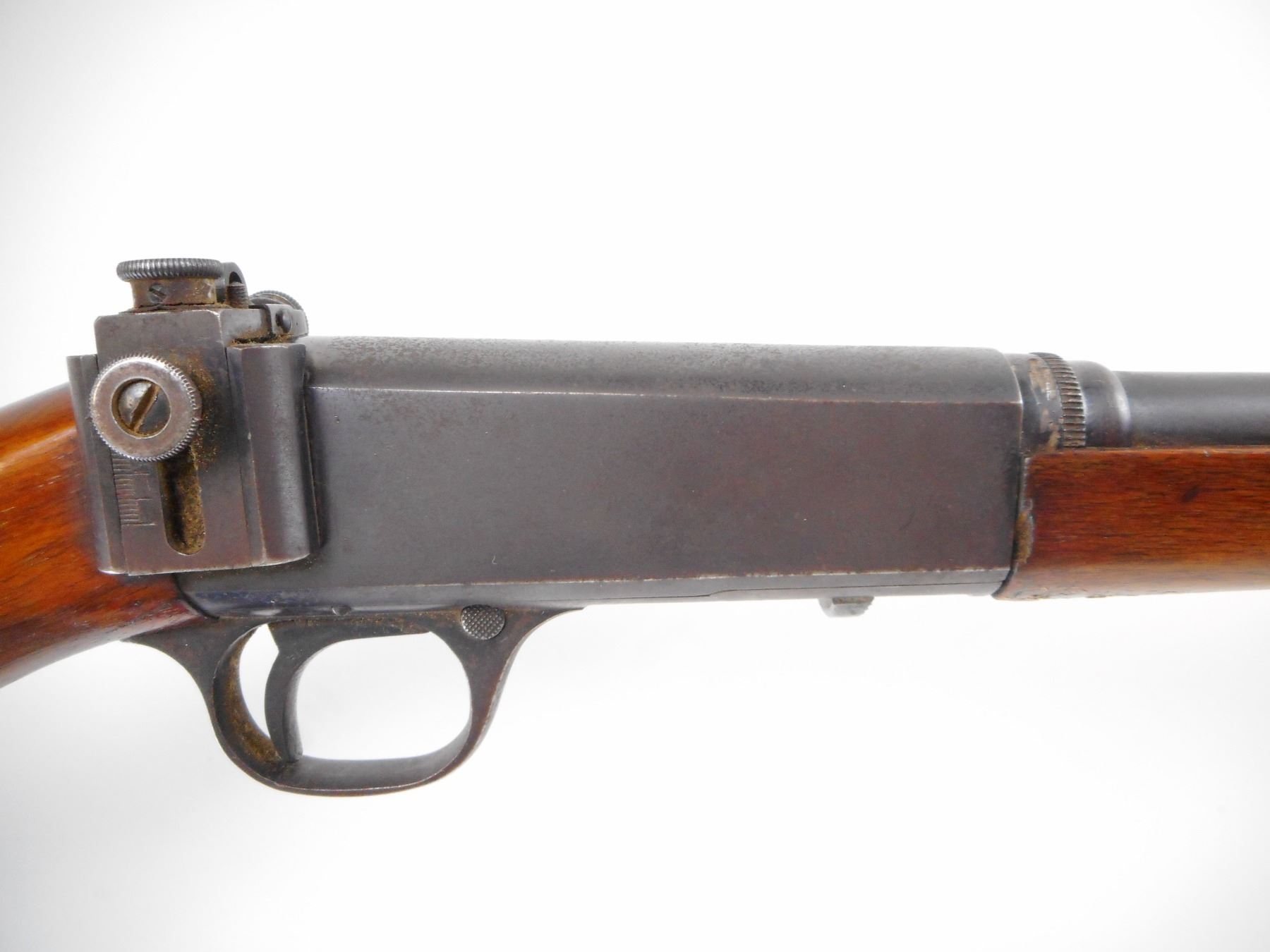 FN BROWNING , MODEL: SA22 , CALIBER: 22 LR , BORE IS VERY GOOD. BLADE FRONT SIGHT. REAR SIGHT REMOVED, PEEP ON RIGHT SIDE OF RECEIVER, LEFT SIDE HAS TWO HOLES, DRILLED AND TAPPED. TWO PIECE SMOOTH WOOD STOCKS. SMOOTH STEEL BUTT PLATE. METAL FINISH TURNED BROWN, LIGHT RUST SPECKLES. STOCK SHOWS NUMEROUS HANDLING MARKS AND WEAR. , ACTION: SEMI AUTO RIFLE , BARREL LENGTH: 19" , SERIAL # 142584 , CONDITION: 6/10 , CLASS: CANADIAN NON RESTRICTED CLASS