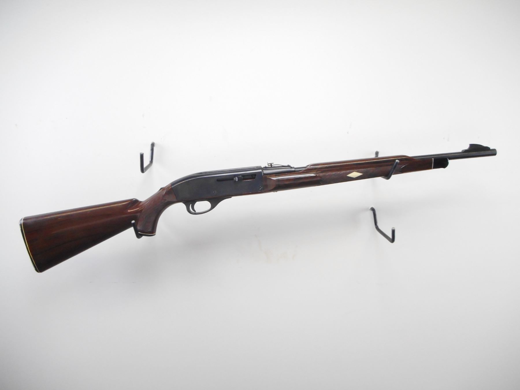 REMINGTON , MODEL: NYLON 66 MOHAWK BROWN , CALIBER: 22 LR , BORE IS VERY GOOD. BLADE FRONT SIGHT. U NOTCH ADJUSTABLE REAR SIGHT. RECEIVER GROOVED FOR SCOPE MOUNT. BROWN SYNTHETIC STOCK. WHITE DIAMOND INLAYS IN FOREND. GROOVED BLACK SYNTHETIC BUTT PLATE. GRIP CAP. FOREND CAP. METAL SHOWS SOME HANDLING MARKS AND WEAR. STOCKS SHOWS SMALL SCUFF MARKS, SCRATCHS. , ACTION: SEMI AUTO RIFLE. , BARREL LENGTH: 19 1/2" , SERIAL # A2241156 , CONDITION: 7/10 , CLASS: CANADIAN NON RESTRICTED CLASS