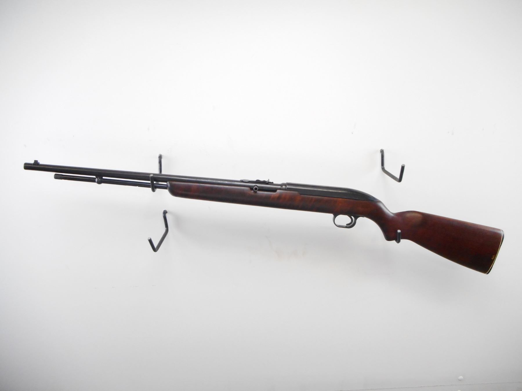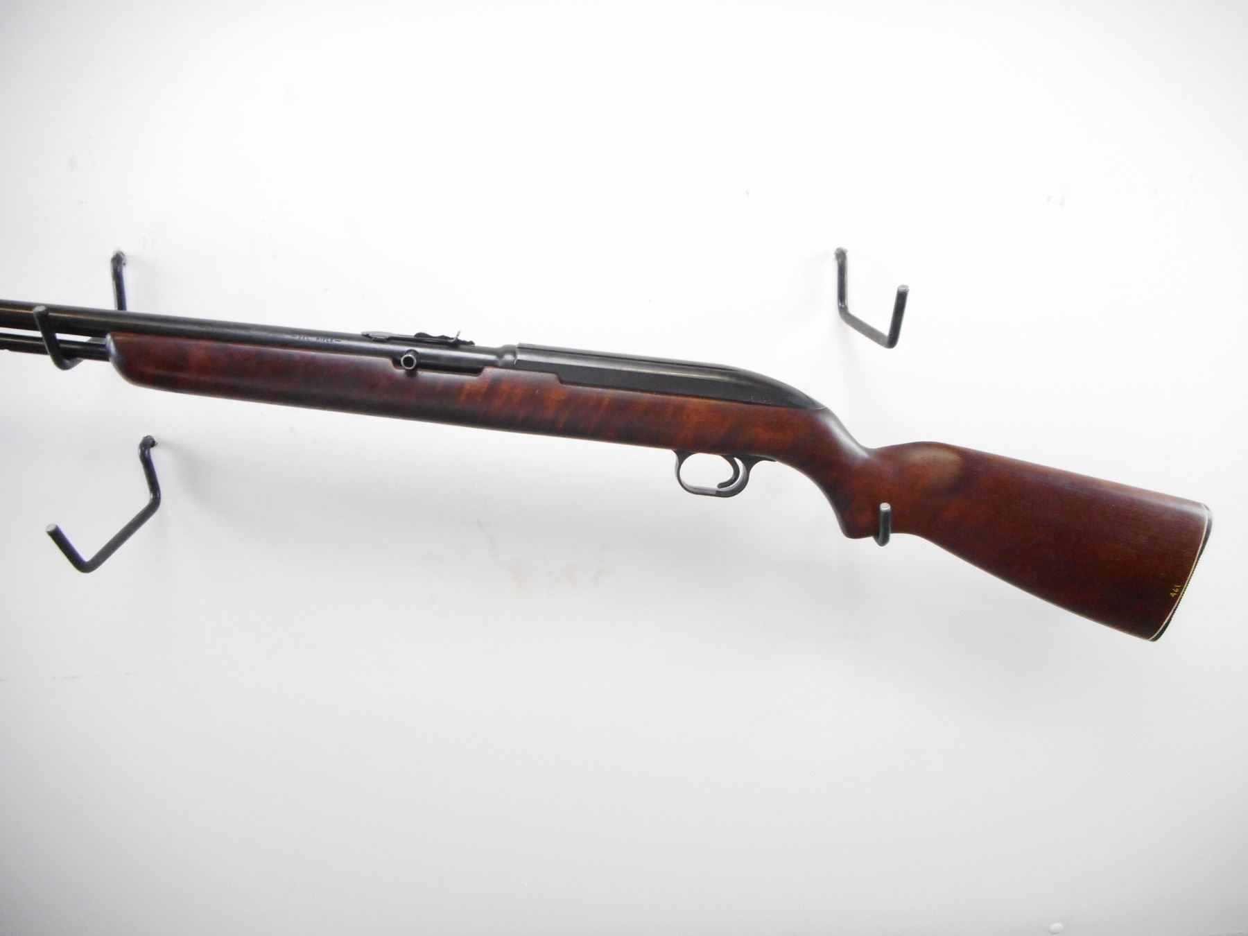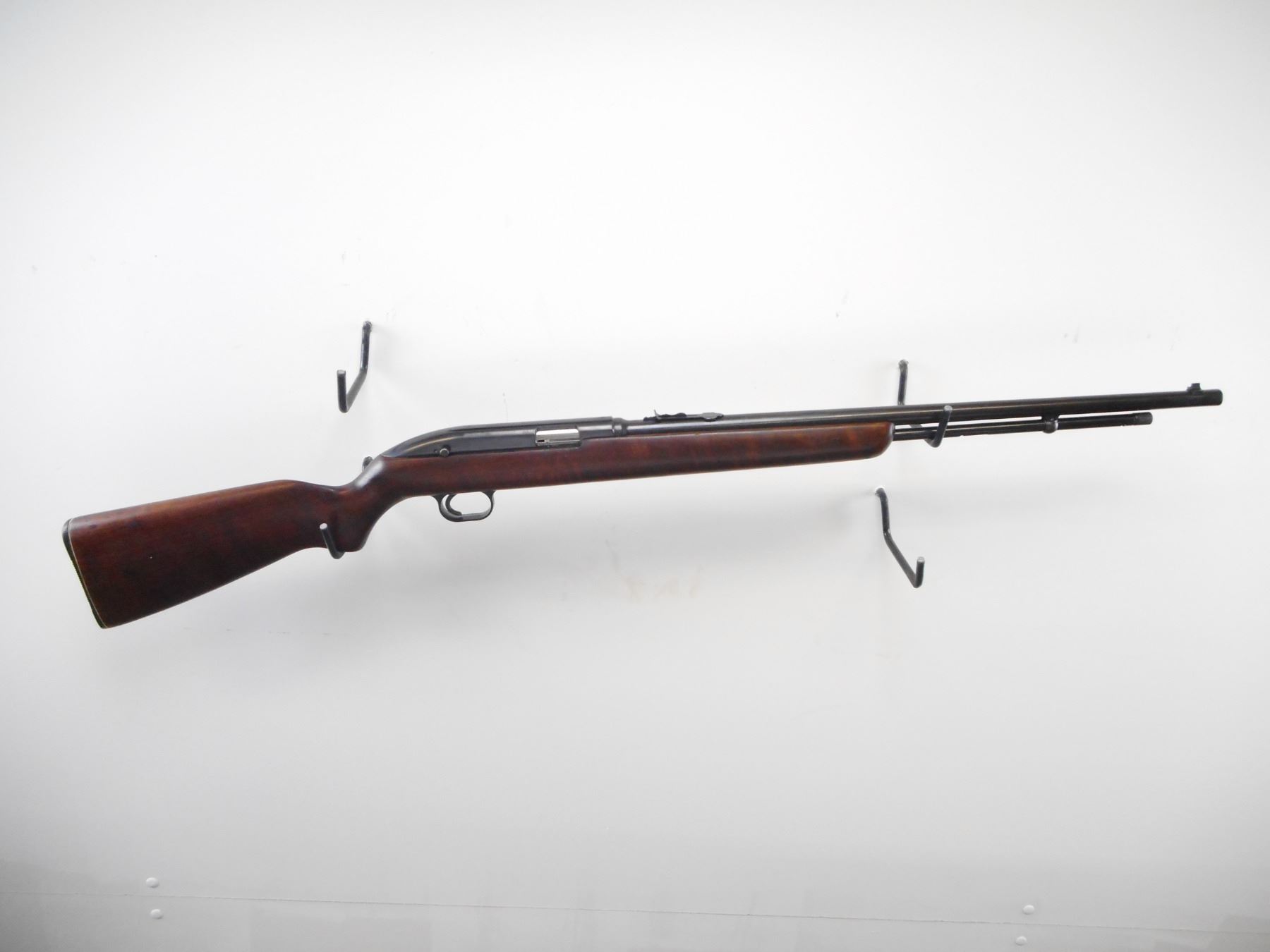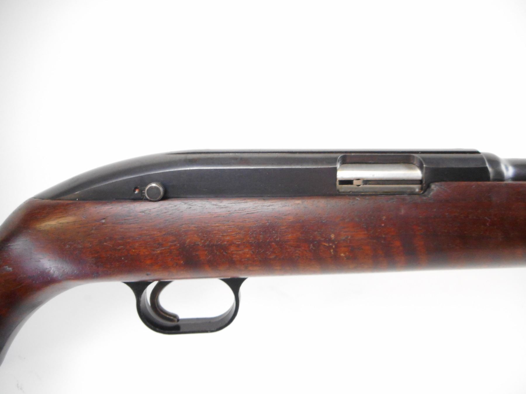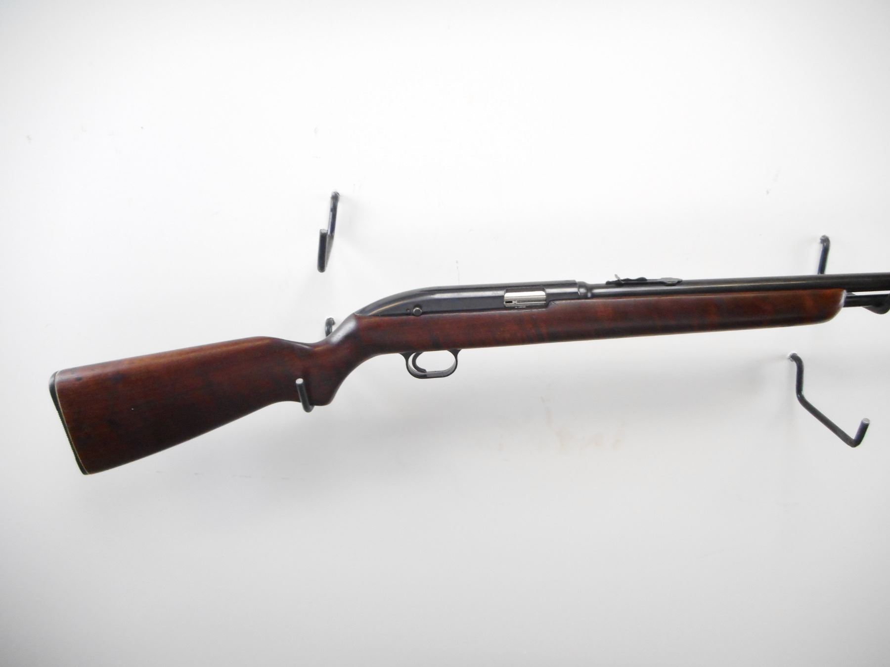 WINCHESTER , MODEL: 77 , CALIBER: 22 LR , BORE IS VERY GOOD. BLADE FRONT SIGHT. U NOTCH ADJUSTABLE REAR SIGHT. RECEIVER GROOVED FOR SCOPE MOUNT. SMOOTH ONE PIECE WOOD STOCK. GROOVED BLACK REMINGTON POLYMER BUTT PLATE. SLING SWIVELS REMOVED, HOLES PRESENT. POLYMER TRIGGER GUARD. BLUEING SHOWS WEAR AND HANDLING MARKS. STOCKS SHOWS WEAR AND HANDLING MARKS. , ACTION: SEMI AUTO RIFLE , BARREL LENGTH: 22" , SERIAL # 136195 , CONDITION: 7/10 , CLASS: CANADIAN NON RESTRICTED CLASS
