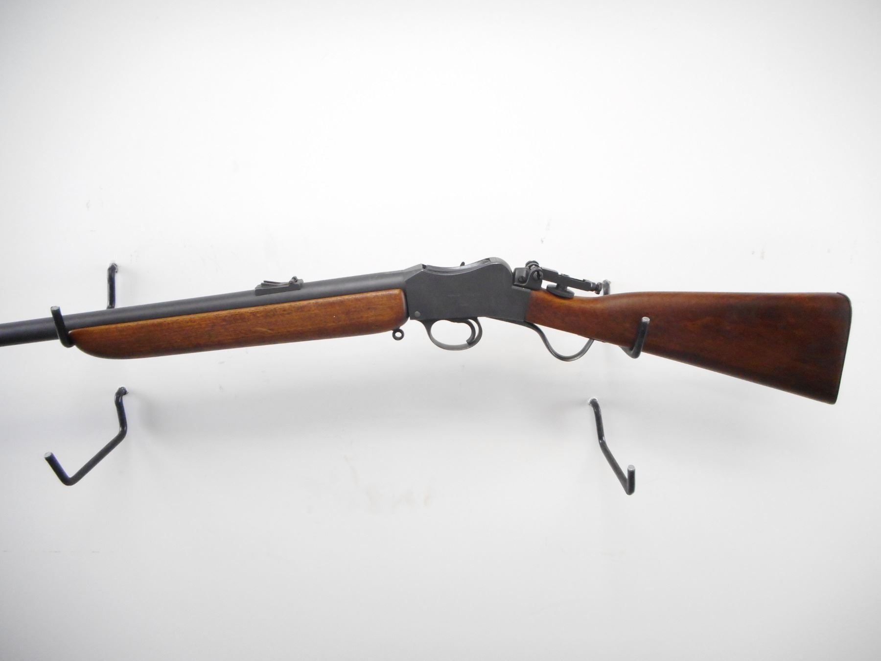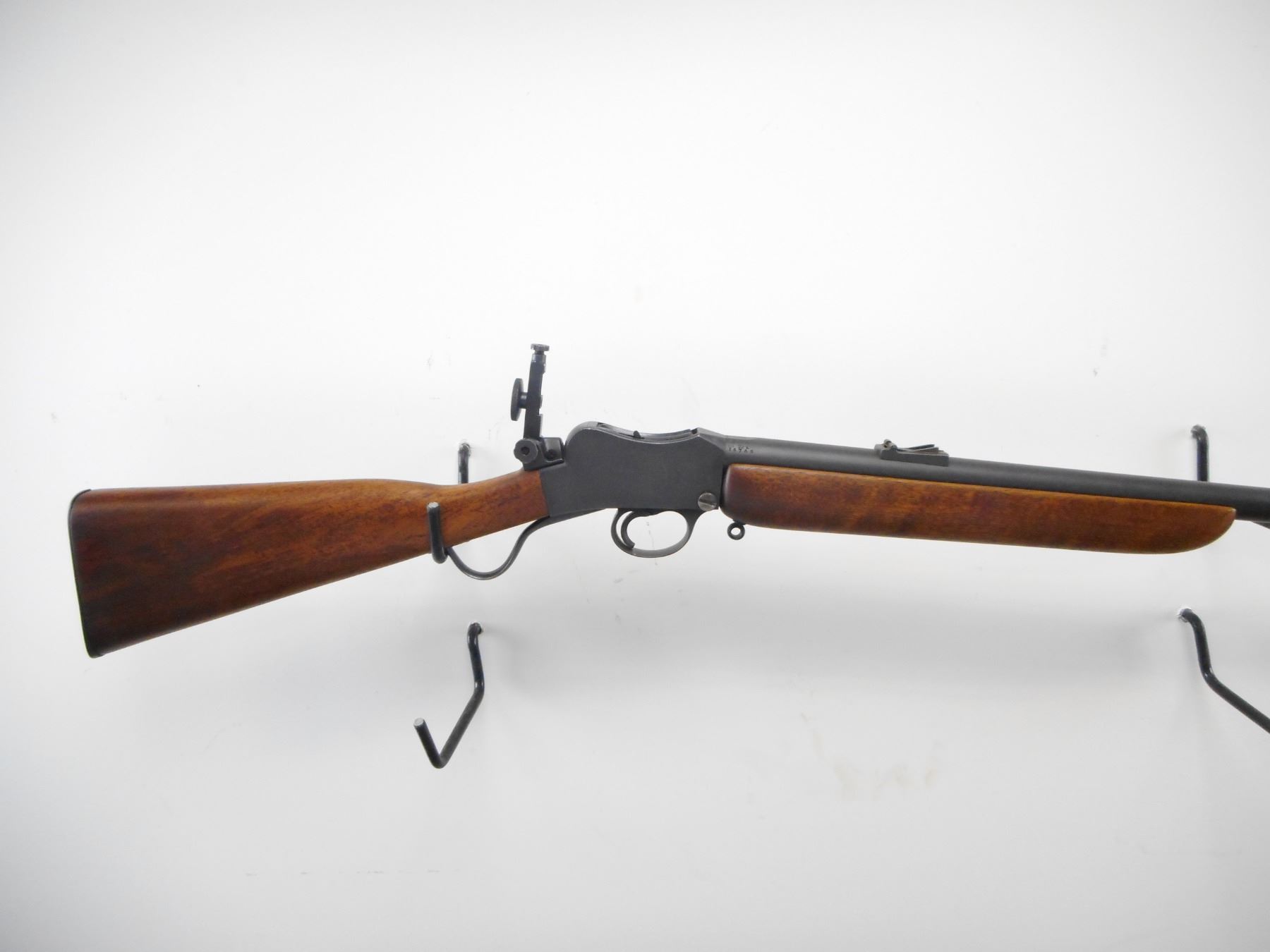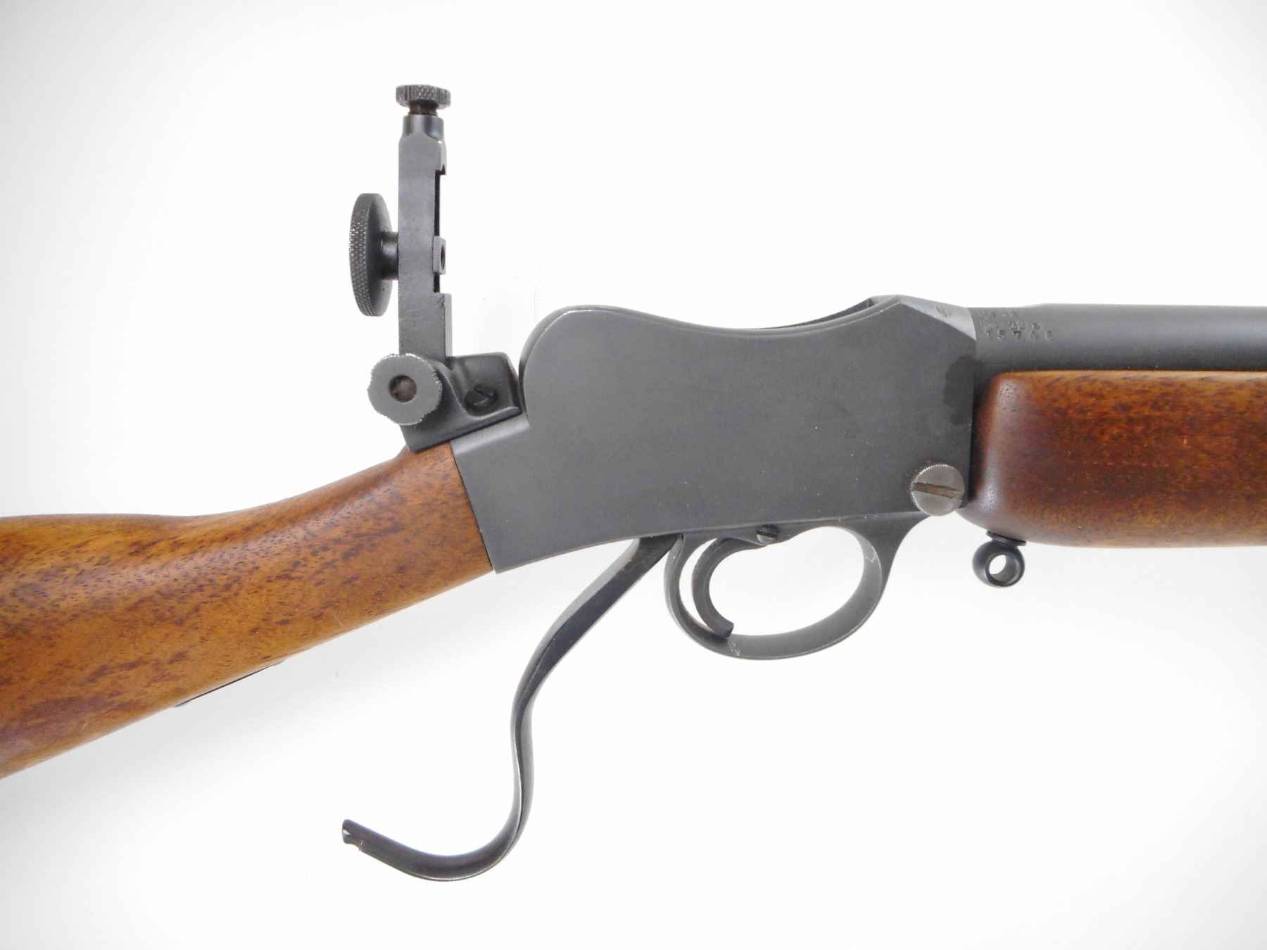 BSA , MODEL: MARTINI CADET , CALIBER: 22 LR , BORE IS GOOD, WORN. BLADE FRONT SIGHT. REAR SIGHT LEAF REMOVED. BASE PRESENT. BSA PEEP SIGHT ON REAR OF RECEIVER. BLACK MATTE FINISH ON METAL PARTS. SMOOTH TWO PIECE WOOD STOCKS. SMOOTH STEEL BUTT PLATE. SLING STUDS. METAL SHOWS HANDLING MARK AND WEAR. STOCK SHOWS HANDLING MARKS , ACTION: HINGE DROP BLOCK , BARREL LENGTH: 25" , SERIAL # 15746 , CONDITION: 7/10 , CLASS: CANADIAN NON RESTRICTED CLASS