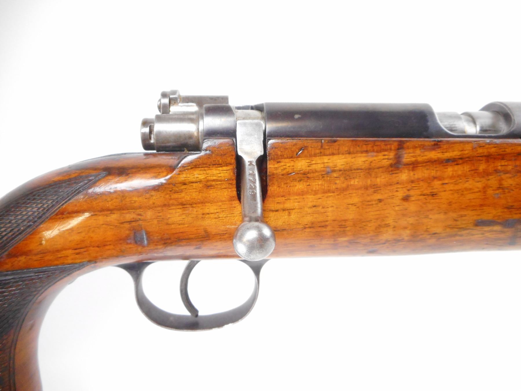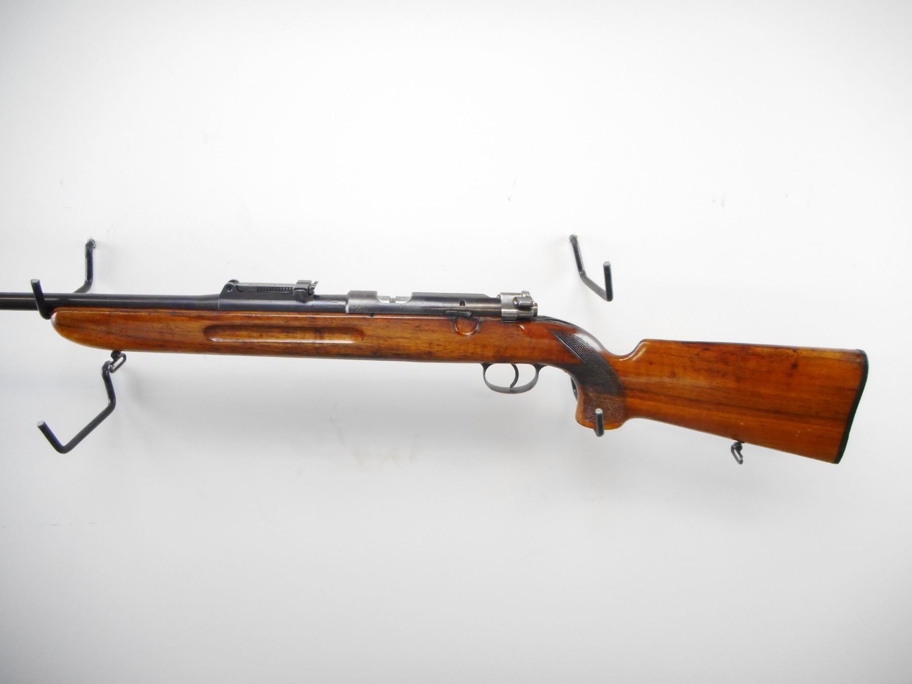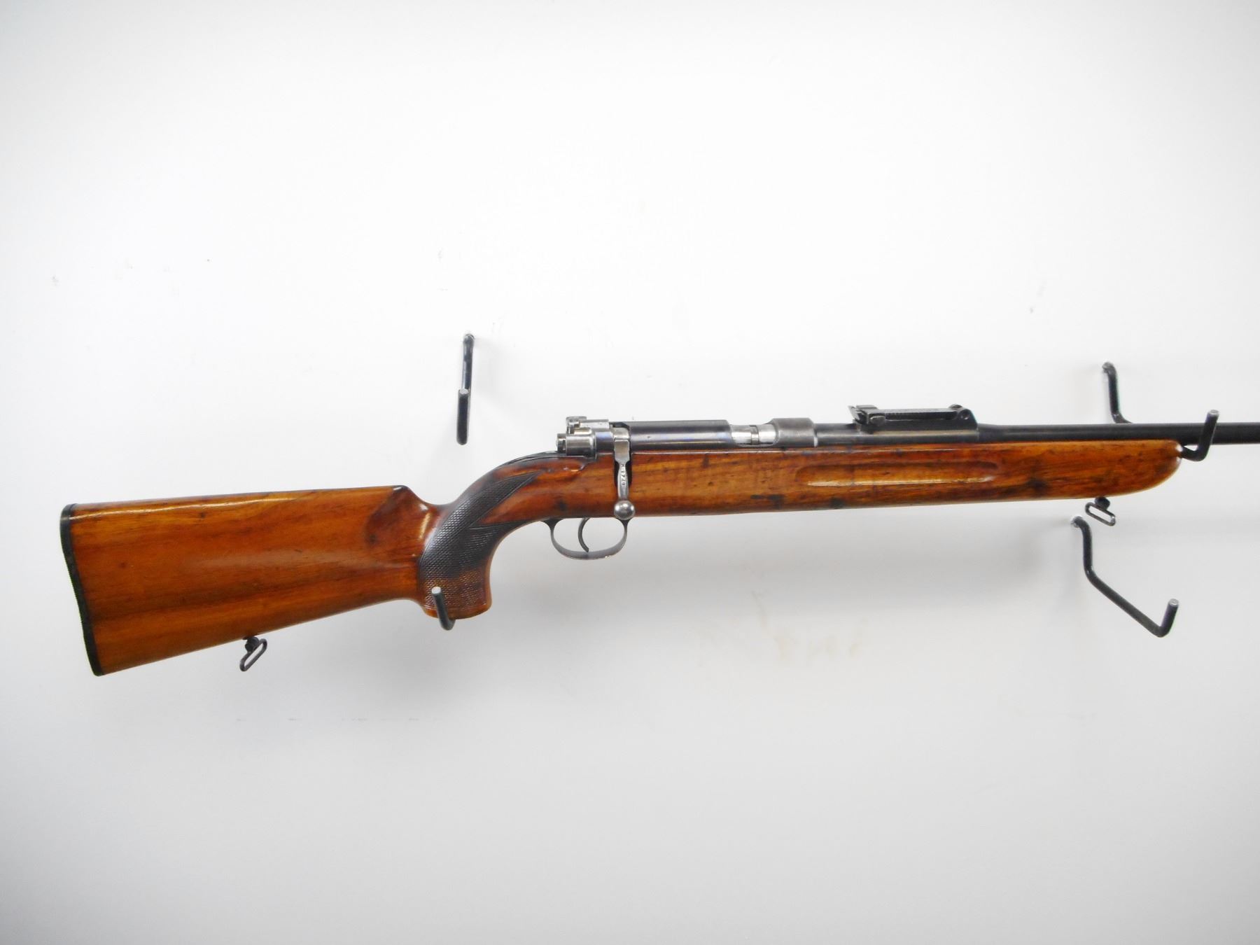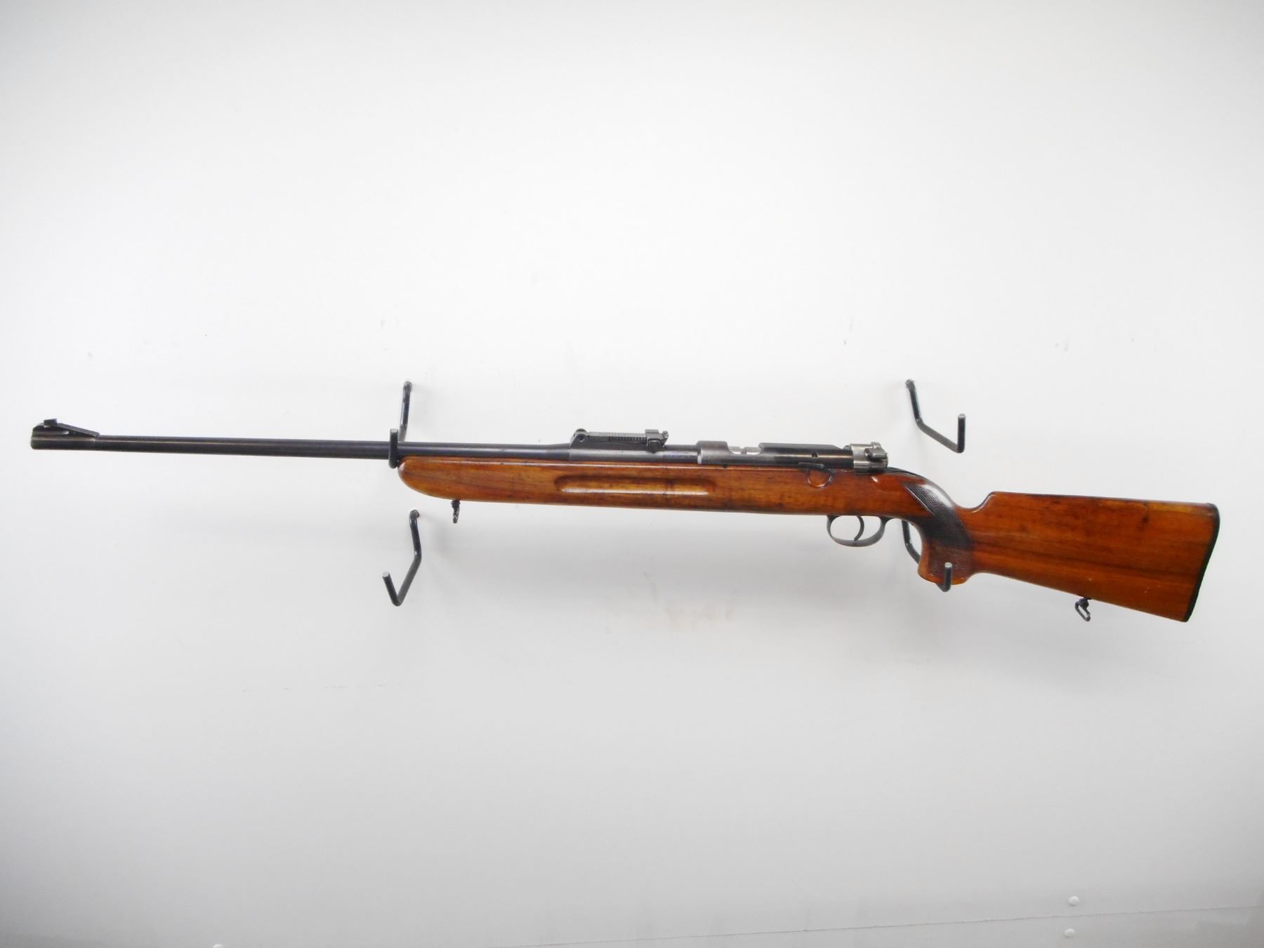 YUGOSLAVAIN , MODEL: M-56 , CALIBER: 22 LR , BORE IS VERY GOOD. BLADE FRONT SIGHT WITH RAMP. U NOTCH ADJUSTABLE REAR SIGHT. BLUED FINISH ON METAL PARTS. ONE PIECE WOOD STOCK. GROOVED FOREND. CHECKERED PISTOL GRIP. GROOVED BLACK POLYMER BUTT PLATE. SLING SWIVELS. BLUEING SHOWS HANDLING MARKS AND WEAR. STOCK SHOWS NUMEROUS HANDLING MARKS, DING AND WEAR. , ACTION: BOLT ACTION RIFLE , BARREL LENGTH: 24" , SERIAL # K1729 , CONDITION: 7/10 , CLASS: CANADIAN NON RESTRICTED CLASS